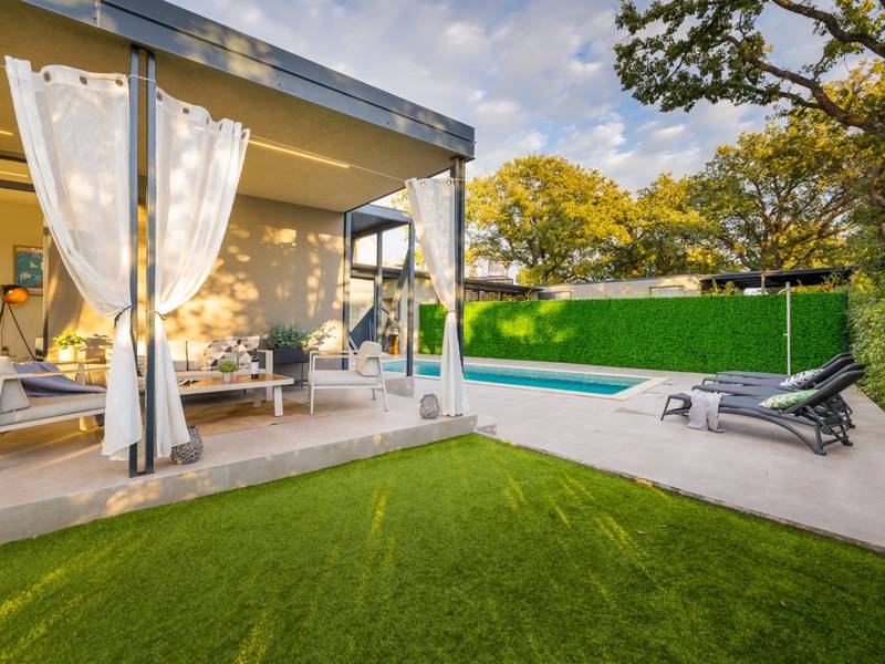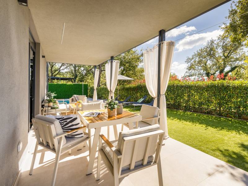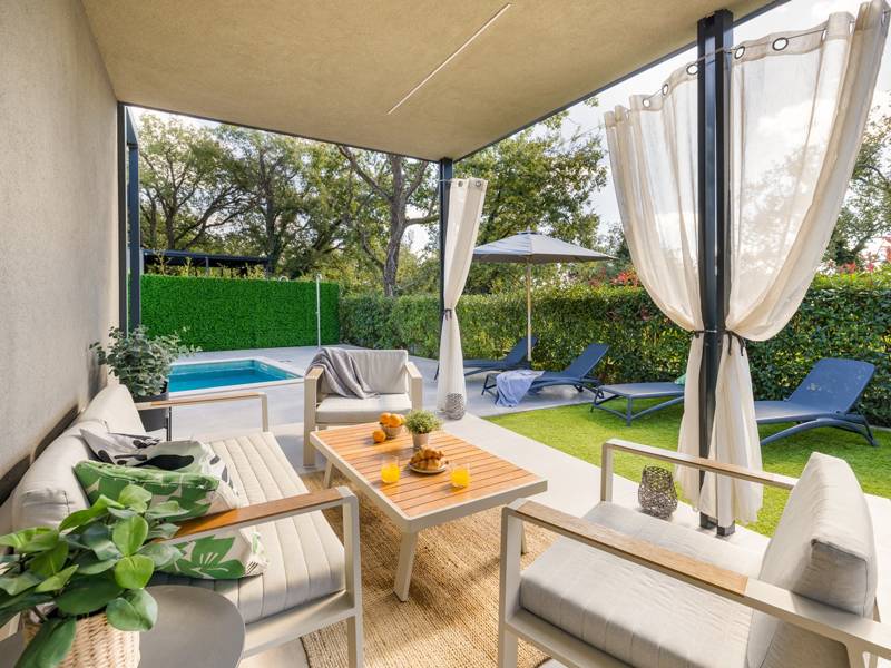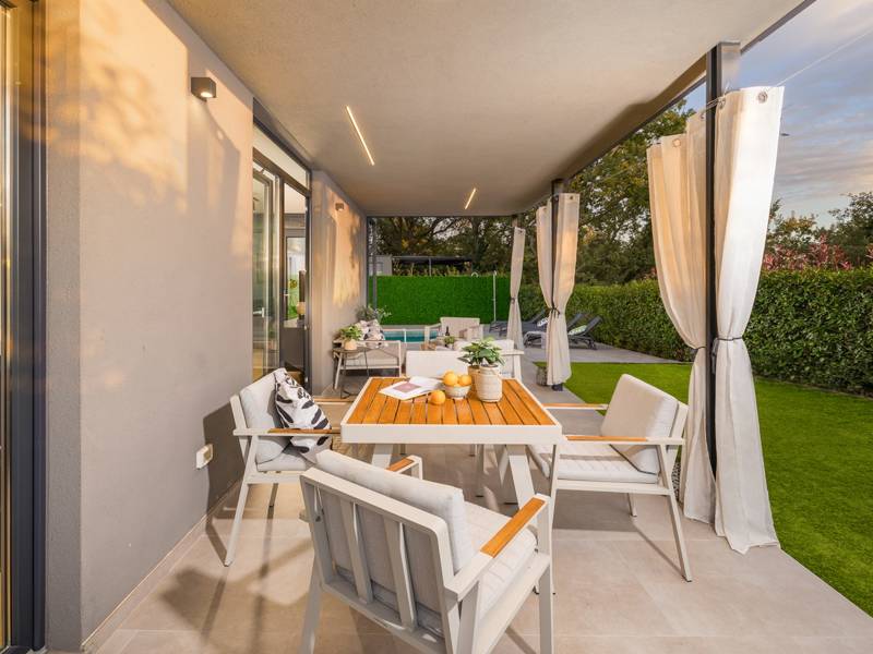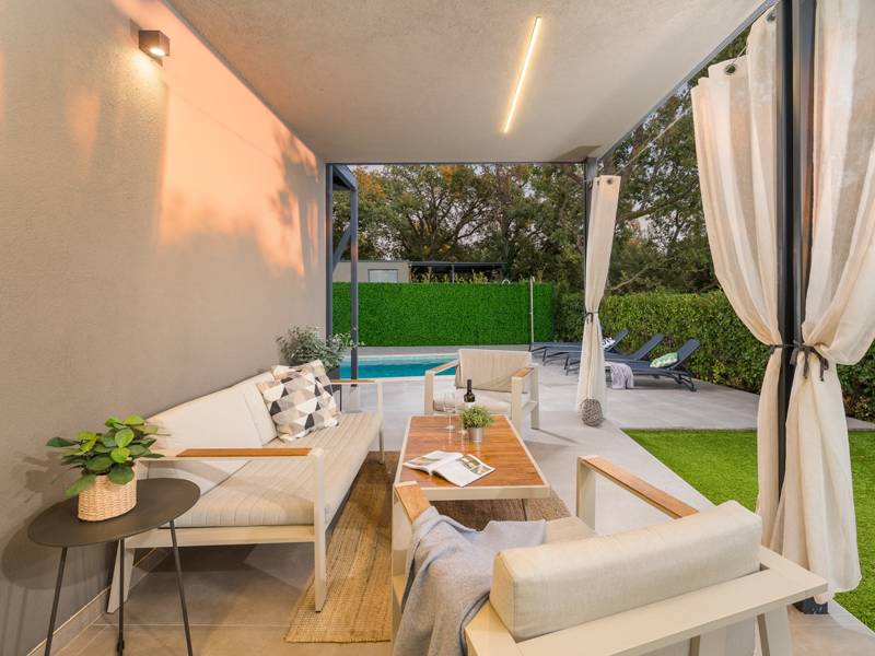 Willkommen in der Villa Barcolana, einem charmanten Rückzugsort für bis zu 5 Personen, der sich im ruhigen Dorf Baderna befindet - nur 20 Autominuten von der lebhaften Küstenstadt Poreč entfernt. Diese gemütliche, einstöckige Villa bietet alles, was Sie für einen erholsamen und komfortablen Urlaub in Istrien brauchen: ein einladendes Wohnzimmer mit einem Schlafsofa für eine Person, eine voll ausgestattete Küche, zwei komfortable Schlafzimmer mit Doppelbetten und ein gemeinsames Badezimmer. Die Inneneinrichtung ist so konzipiert, dass ein warmer und funktionaler Raum für Familien oder kleine Gruppen entsteht. Wenn Sie nach draußen treten, entdecken Sie Ihre private Oase: einen wunderschön gepflegten Garten mit einem Swimmingpool, Sonnenliegen zum Sonnenbaden und eine überdachte Terrasse mit einem Esstisch und bequemen Sitzgelegenheiten - perfekt, um Mahlzeiten im Freien zu genießen, den Morgenkaffee zu trinken oder sich im Schatten zu entspannen. Die Lage der Villa verbindet Ruhe und Komfort. Ein Lebensmittelgeschäft und ein lokales Restaurant sind nur einen kurzen Spaziergang entfernt, während die lebhafte Stadt Poreč alles bietet, von atemberaubenden Stränden und historischen Stätten bis hin zu Geschäften, Märkten, Bars und Unterhaltung für alle Altersgruppen. Als haustierfreundliches Anwesen ist ein gut erzogenes Haustier kostenlos willkommen, was dies zu einer idealen Wahl für diejenigen macht, die mit pelzigen Begleitern reisen. Ob Sie sich am Pool entspannen oder ein Abendessen im Freien unter den Sternen genießen, die Villa Barcolana bietet den perfekten Rahmen für einen unvergesslichen Istrien-Urlaub. Buchen Sie noch heute Ihren Aufenthalt und beginnen Sie Ihren Urlaub mit Leichtigkeit. Bitte beachten Sie, dass dieses Haus keine Junggesellenabschiede akzeptiert. Jugendgruppen werden nur nach vorheriger Absprache akzeptiert. Eine Jugendgruppe ist eine Gruppe, die aus Einzelpersonen im Alter von 26 Jahren oder jünger besteht. Wenn Sie eine Jugendgruppe sind, setzen Sie sich bitte mit uns in Verbindung, bevor Sie Ihre Reservierung vornehmen, da die Reservierung nach der Buchung, d.h. bei der Ankunft im Haus oder während des Aufenthalts, abgelehnt werden kann und Sie möglicherweise keine Rückerstattung erhalten.
