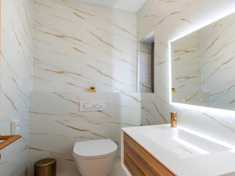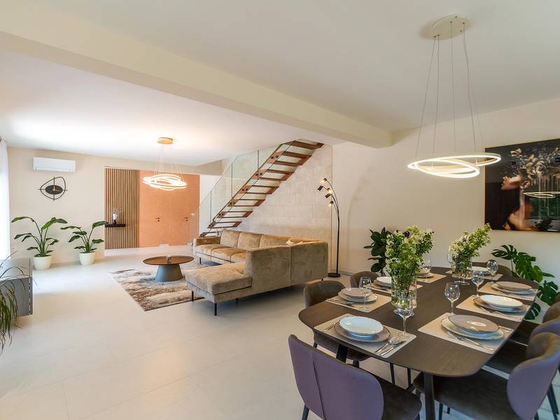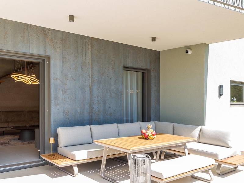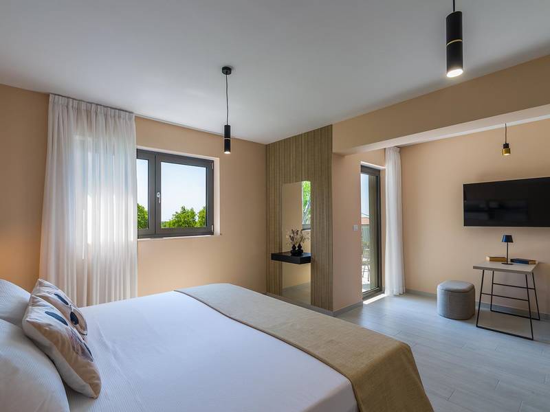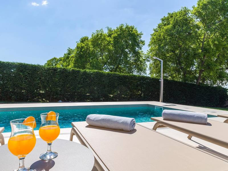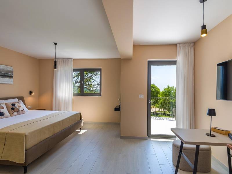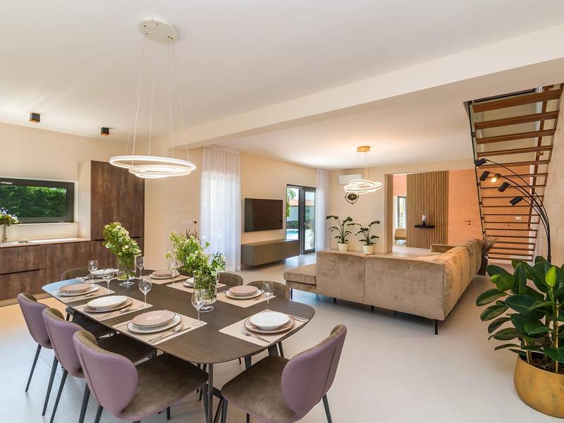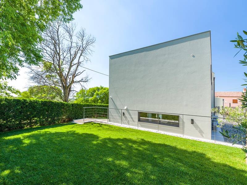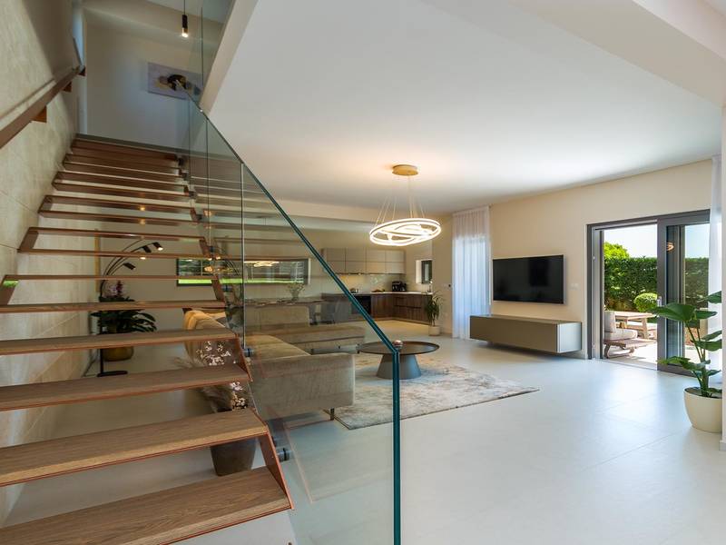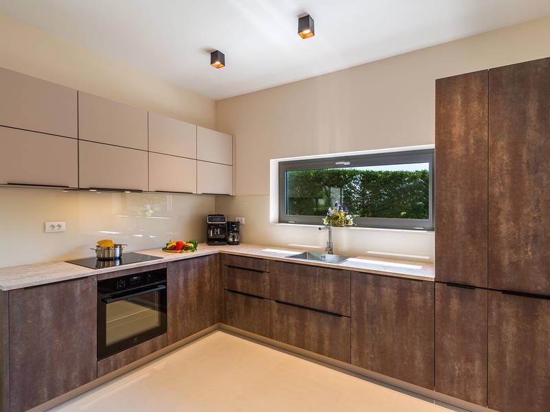 Die Villa Golden Hill ist eine exklusive 5-Sterne-Villa in dem ruhigen istrischen Dorf Golaš, in der Nähe von Bale. Umgeben von Natur und Grün, bietet diese moderne Villa ein hohes Maß an Privatsphäre und diskreten Luxus, ideal für einen erholsamen Aufenthalt in Istrien. Die Villa erstreckt sich über 225 m2 und wurde sorgfältig entworfen, um Funktionalität und Ästhetik zu kombinieren. Im Erdgeschoss befindet sich ein geräumiger, lichtdurchfluteter Wohnbereich, der mit einer modernen, voll ausgestatteten Küche und einem Essbereich verbunden ist. Die offene Raumaufteilung schafft eine einladende Atmosphäre, während der direkte Zugang zur überdachten Terrasse für einen nahtlosen Übergang zwischen Innen- und Außenbereich sorgt. Ein Schlafzimmer befindet sich im Erdgeschoss mit direktem Zugang zum Pool, während sich die beiden anderen elegant gestalteten Schlafzimmer im Obergeschoss befinden. Alle Schlafzimmer sind mit eigenem Bad, Klimaanlage und TV ausgestattet. Große Betten (200x210 cm) sorgen für außergewöhnlichen Komfort, während Zusatzbetten eine flexible Unterbringung für Familien ermöglichen. Der Außenbereich bietet ein komplettes Wohnerlebnis unter freiem Himmel. Der private Swimmingpool (24 m2) ist von Sonnenliegen und einem angelegten Garten umgeben, während die überdachte Terrasse mit Essbereich im Freien zu entspannten Mahlzeiten einlädt. Ein Gasgrill unterstreicht den mediterranen Lebensstil. Das Grundstück ist vollständig eingezäunt und als Grünfläche angelegt, was Privatsphäre und Ruhe garantiert. Die Villa Golden Hill ist mit einer Fußbodenheizung und einer Klimaanlage ausgestattet, die das ganze Jahr über für Komfort sorgen. WiFi, ein Safe, eine Waschmaschine, ein Trockner und alle wichtigen Haushaltsgegenstände stehen für einen sorgenfreien Aufenthalt zur Verfügung. Die Villa befindet sich in einer ruhigen Umgebung und ist dennoch gut angebunden - ein Restaurant ist nur 200 Meter entfernt, während die Geschäfte in Bale nur eine kurze Autofahrt entfernt sind. Das Meer und die Strände sind ca. 12 km entfernt, und der Flughafen Pula ist 25 km entfernt. Die Villa Golden Hill bietet ein perfektes Gleichgewicht zwischen modernem Komfort, Privatsphäre und natürlicher Umgebung - ein idealer Ort für einen wirklich erholsamen Aufenthalt in Istrien. Das Haus ist nicht für Jugendgruppen geeignet. Haustiere sind nicht erlaubt. Rauchen ist im Haus nicht gestattet.
