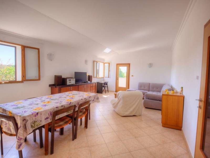 Die Wohnung für 4 Personen im Dorf Barat ist eine komfortable und moderne Unterkunft im ersten Stock eines Familienhauses. Diese geräumige Wohnung bietet alles, was Sie für einen angenehmen und erholsamen Aufenthalt benötigen. Wenn Sie die Wohnung betreten, werden Sie sofort zwei geräumige und elegant eingerichtete Schlafzimmer bemerken. Jedes Schlafzimmer verfügt über ein eigenes Bad, das allen Gästen Privatsphäre und Komfort bietet. Die Küche ist voll ausgestattet und ideal für die Zubereitung köstlicher Mahlzeiten. Das Esszimmer befindet sich im selben Raum und schafft ein angenehmes und geselliges Umfeld für gemeinsame Mahlzeiten. Das große klimatisierte Wohnzimmer bietet einen komfortablen und modern eingerichteten Raum zum Entspannen. Es ist mit einem Sofa, einem Fernseher und anderen Annehmlichkeiten ausgestattet, die dazu beitragen, dass Sie sich wie zu Hause fühlen. Vom Wohnzimmer aus gelangen Sie auf den Balkon, von dem aus Sie einen herrlichen Blick auf die umliegenden Olivenhaine haben. Es ist der perfekte Ort, um einen Morgenkaffee oder einen abendlichen Drink bei Sonnenuntergang zu genießen. Ein zusätzlicher Luxus, den diese Wohnung bietet, ist ein privater Pool im Hof. Die Gäste können ein erfrischendes Bad nehmen oder sich auf den Liegestühlen am Pool entspannen. In dieser Oase der Ruhe und Entspannung können Sie sich abkühlen und entspannen, nachdem Sie die Umgebung erkundet haben. Die Wohnung im Dorf Barat bei Kanfanar bietet alles, was Sie für einen unvergesslichen Urlaub in Istrien brauchen. Hier finden Sie Komfort und wunderschöne Natur, die Sie umgibt. Genießen Sie alle Annehmlichkeiten und entspannen Sie sich in dieser wunderbaren Unterkunft, die alle Ihre Erwartungen erfüllen wird.