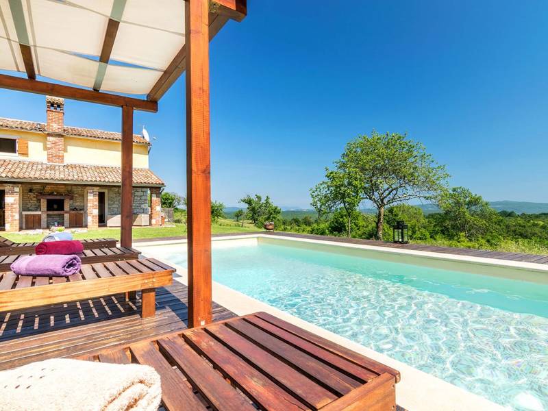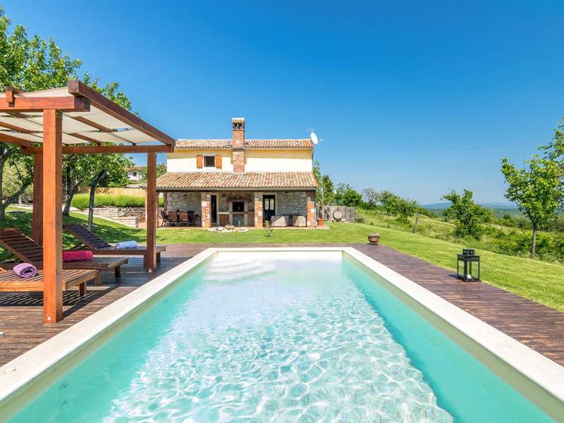 Die Villa Mala Kopa bietet ein romantisches Refugium in der Einsamkeit eines großen Privatgrundstücks in Zentralistrien. Es befindet sich in einem kleinen Dorf und ist nur von Natur umgeben, so dass Sie hierher kommen werden, um Ihre Sinne zu beruhigen und Ihren inneren Frieden wiederherzustellen. Die Villa liegt auf einer Anhöhe, so haben wir einen tollen Blick auch aus dem Schwimmbad. Die Kapazität der Villa ist für vier Personen, genug für eine Familie mit Kindern oder zwei Paare, um die idyllische Atmosphäre zu genießen. Bei der Renovierung wurden die rustikalen Elemente beibehalten und mit den notwendigen modernen Accessoires ergänzt. Obwohl sich das Haus im Inneren der Halbinsel Istrien befindet, ist es nicht weit von allen Zielen entfernt, die Sie wahrscheinlich gerne erkunden möchten: Rabac mit dem nächstgelegenen Strand, das nahe gelegene Barban, Labin und Pazin, oder vielleicht eine der Städte an der westlichen Küste Istriens mit interessanten Überresten aus der Antike, wie Pula, Rovinj oder Poreč. Probieren Sie die einfache, aber köstliche istrische Küche und kombinieren Sie sie mit istrischen Qualitätsweinen und Olivenöl, das seit der Antike geschätzt wird.