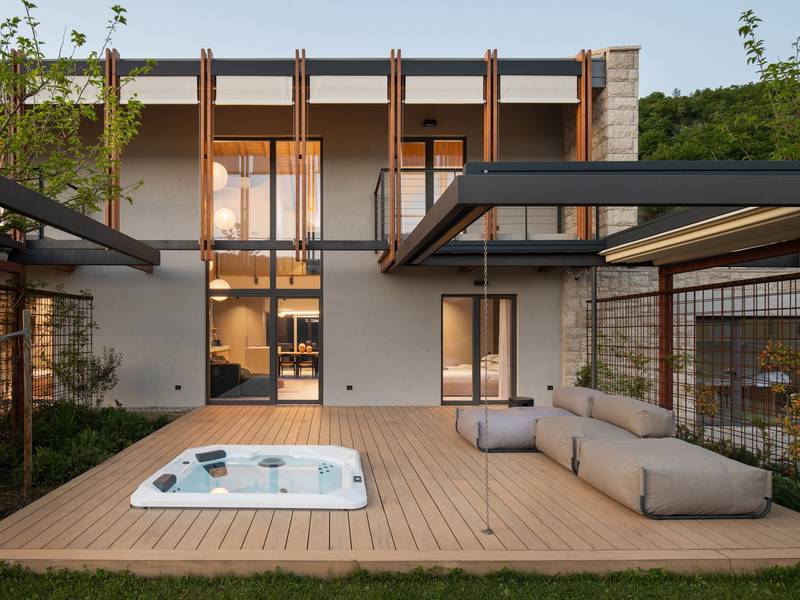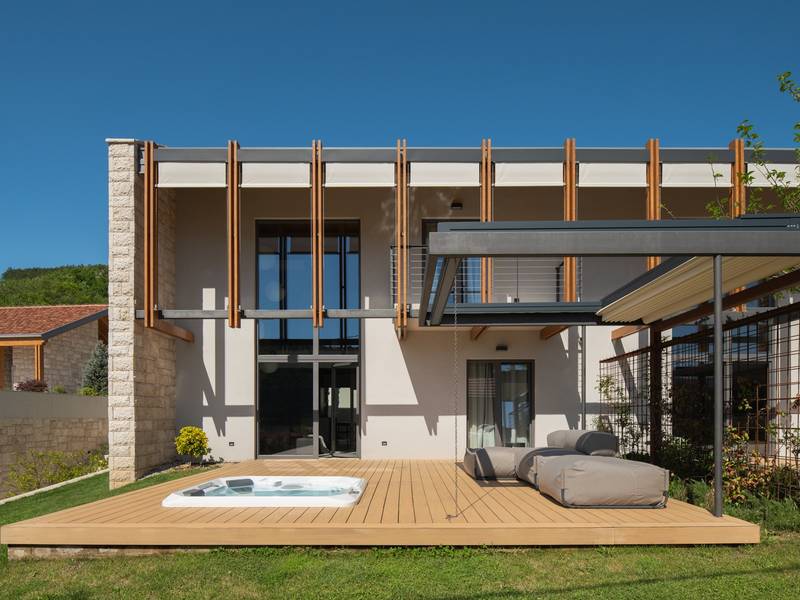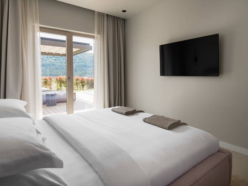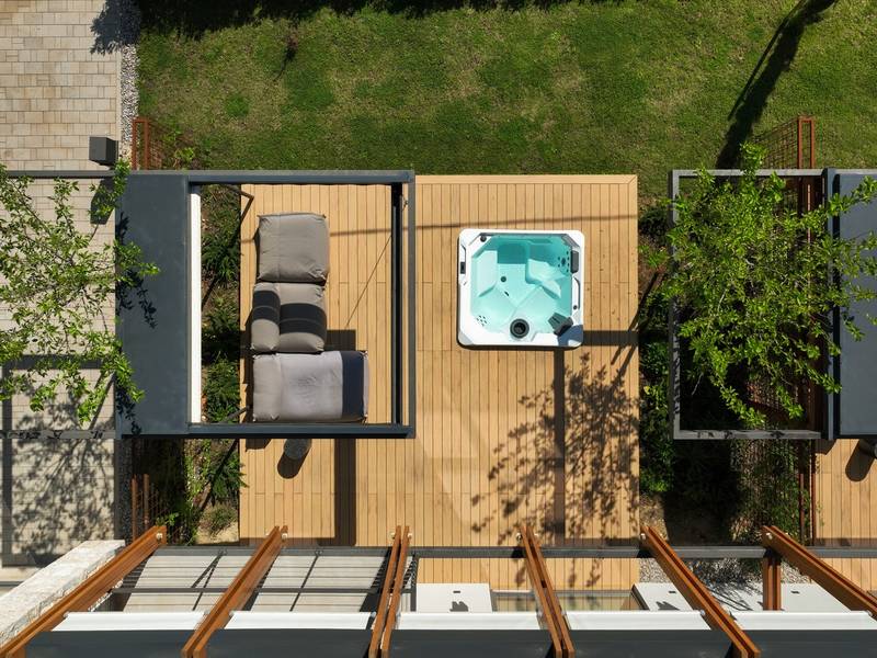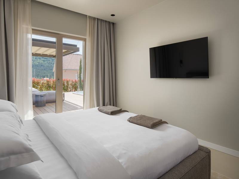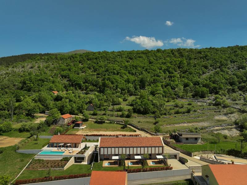 Verwöhnen Sie sich mit 9 stilvollen Schlafzimmern, einem 70 m² großen beheizten Pool, einem Paddelplatz, 3 entspannenden Whirlpools und einem Wellnessbereich mit finnischer Sauna - perfekt für Familientreffen oder Gruppenausflüge! Willkommen in der Villa Terra Moro, einem exquisiten und luxuriösen Rückzugsort, der moderne Eleganz mit traditionellem dalmatinischem Charme verbindet. Diese sorgfältig organisierte, fast 500 m2 große Villa ist die perfekte Unterkunft für größere Familien oder Gruppen von Freunden und bietet Platz für bis zu 18 Gäste in 9 wunderschön eingerichteten Schlafzimmern und 10 modernen Badezimmern. In der ruhigen Umgebung von Crivac, im Herzen des dalmatinischen Hinterlandes gelegen, ist die Villa Terra Moro mehr als nur ein Ort zum Wohnen; sie ist eine Oase der Entspannung und des Genusses. Die nahtlose Verschmelzung von modernem Design und traditionellen Elementen schafft eine warme, einladende Atmosphäre, die ein unvergessliches Urlaubserlebnis verspricht. Die Villa verfügt über 3 verschiedene, aber miteinander verbundene Wohneinheiten, die allen Gästen Privatsphäre und Platz bieten. Jede Einheit verfügt über ein eigenes geräumiges Wohnzimmer, eine gut ausgestattete Küche und eine Toilette, die für Bequemlichkeit und Komfort sorgen. Im Erdgeschoss befindet sich ein Schlafzimmer mit eigenem Bad, während sich im Obergeschoss zwei weitere Schlafzimmer mit Bad befinden, ideal für Familien oder Gruppen, die gemeinsam reisen. Außerdem verfügt jede Einheit über eine überdachte Terrasse mit einer Sommerküche, die sich perfekt für Mahlzeiten im Freien und für Gäste eignet. Auf der Südseite jeder Einheit befindet sich eine private Terrasse mit einem beruhigenden Whirlpool und einer Sitzecke (kann überdacht werden). Dies ist der perfekte Ort, um an warmen dalmatinischen Abenden unter dem Sternenhimmel zu entspannen. Insgesamt verfügt die Villa Terra Moro über 9 Schlafzimmer, 10 Badezimmer, 3 einladende Wohnzimmer, 4 voll ausgestattete Küchen und eine Reihe von offenen und überdachten Terrassen, die zum Entspannen und Genießen einladen. Das Innere der Villa strahlt Raffinesse aus, mit modernen Designelementen und hochwertigen Möbeln, die ein luxuriöses Ambiente schaffen. Alle Schlafzimmer sind für Ihren Komfort klimatisiert und verfügen über Flachbildfernseher, eigene Badezimmer und private Balkone, die einen herrlichen Blick auf die umliegende Landschaft bieten. Die Küchen sind komplett mit hochwertigen Geräten ausgestattet, darunter Geschirrspüler, Kapselkaffeemaschinen und Weinkühler, um allen kulinarischen Ansprüchen gerecht zu werden. Die großzügigen Wohnzimmer bieten den perfekten Raum für geselliges Beisammensein, während die Terrassen und Lounge-Bereiche im Freien, komplett mit versenkbaren Markisen, zum Entspannen einladen und einen atemberaubenden Blick auf den Sonnenuntergang bieten. Vor der Villa befindet sich ein großzügiger, 70 m2 großer, beheizter Privatpool mit einem elektrolytischen System, das für seine Hautfreundlichkeit bekannt ist und zu einem gemütlichen Bad einlädt. Um den Pool herum befindet sich eine mit bequemen Liegen ausgestattete Liegewiese, ein idealer Ort, um die dalmatinische Sonne zu genießen. Außerdem gibt es eine voll ausgestattete Sommerküche, einen überdachten Essbereich für 18 Personen, einen Fernseher, eine separate Toilette und eine Außendusche. Nur ein paar Schritte unterhalb der Sonnenterrasse befindet sich der Wellnessbereich mit einer hochmodernen finnischen Sauna und einem Fitnessbereich für alle, die auch im Urlaub ihren aktiven Lebensstil beibehalten möchten. Weitere Freizeitmöglichkeiten wie ein traditioneller mediterraner Boccia-Platz und ein begehrter Padel-Platz befinden sich direkt gegenüber der Villa. Die jüngeren Gäste werden sich über den Kinderspielplatz mit Rutsche und Schaukel freuen, auf dem sie Spaß haben und bleibende Erinnerungen schaffen können. In der Zwischenzeit können Erwachsene ein Glas Wein aus der Region genießen, während sie den Blick über die unberührte Schönheit der Natur schweifen lassen, die das Anwesen umgibt und eine friedliche und idyllische Umgebung schafft. Erleben Sie den Inbegriff eines dalmatinischen Urlaubs in der Villa Terra Moro, einem Ort, an dem Luxus auf Natur trifft und wertvolle Erinnerungen geschaffen werden.