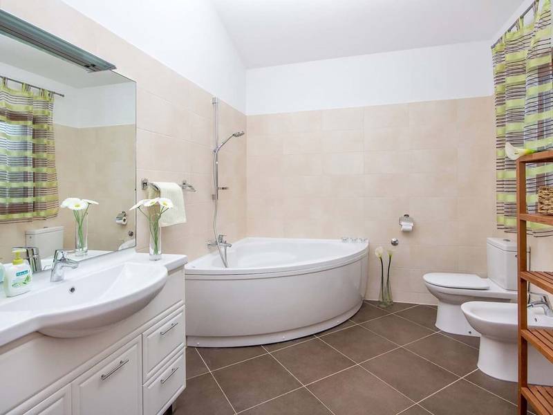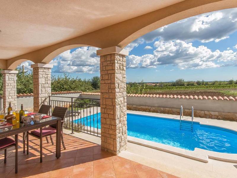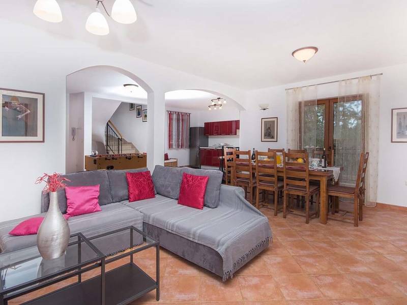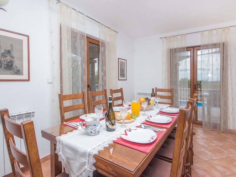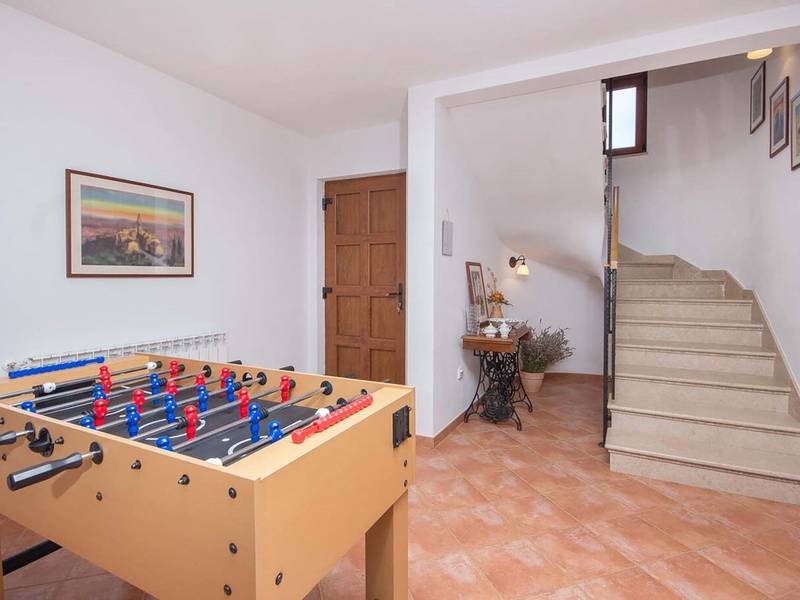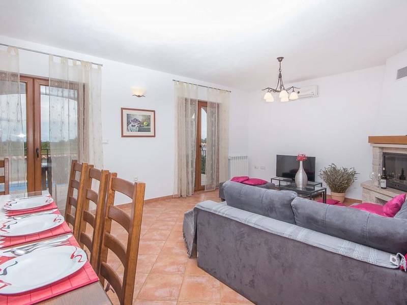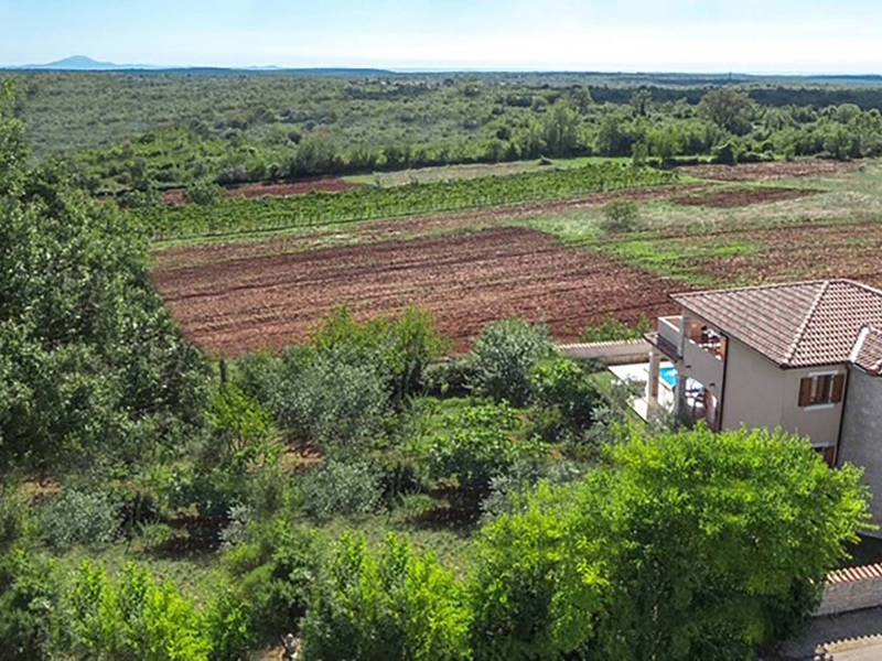 Die Villa Antonela befindet sich in einer ruhigen, grünen Gegend Istriens, umgeben von Weinbergen und Natur, und ist somit die ideale Wahl für Gäste, die Entspannung, Privatsphäre und eine friedliche Urlaubsatmosphäre suchen. Im Erdgeschoss der Villa befindet sich ein geräumiger Wohnbereich mit einer voll ausgestatteten Küche und einem Essbereich, der als gemütlicher Raum für gemeinsame Unternehmungen konzipiert ist. Auf dieser Ebene befinden sich auch ein Badezimmer und eine Eingangshalle, während eine Innentreppe in die obere Etage führt. Vom Wohnzimmer aus hat man direkten Zugang zu einer überdachten Terrasse, die an warmen Tagen zum Verweilen im Freien einlädt. Im ersten Stock befinden sich drei komfortable Schlafzimmer, ein Badezimmer, eine Waschküche und eine Terrasse mit Blick auf die umliegende Natur und die Weinberge. Der Außenbereich verfügt über einen privaten Swimmingpool vor der Terrasse und einen Grillplatz, der sich ideal für die Zubereitung von Mahlzeiten und entspannte Abende im Freien eignet. Die Villa Antonela ist mit einer Gaszentralheizung mit Heizkörpern, einem Kamin und einer Klimaanlage im Wohnzimmer ausgestattet, die das ganze Jahr über für Komfort sorgen. Den Gästen stehen eine Garage für ein Auto und ein zusätzlicher Parkplatz zur Verfügung. Das Meer ist ca. 9 km entfernt, und in der Nähe befinden sich mehrere Restaurants, die lokale istrische Spezialitäten und Weine anbieten. Die ruhige Lage und die komfortablen Wohnräume machen die Villa Antonela zu einer ausgezeichneten Wahl für einen erholsamen Urlaub in Istrien.