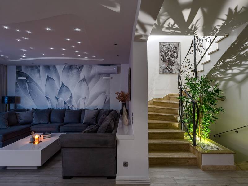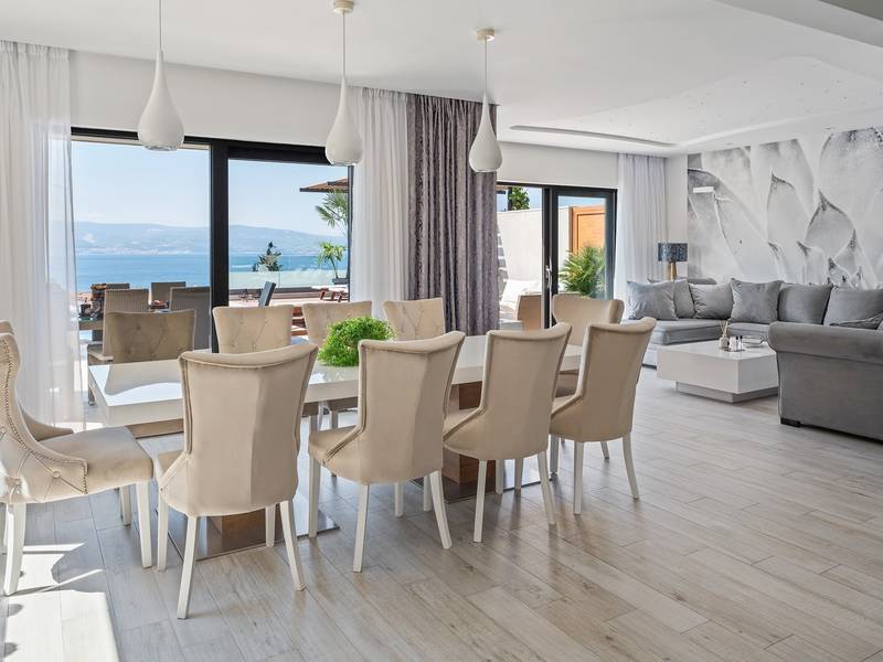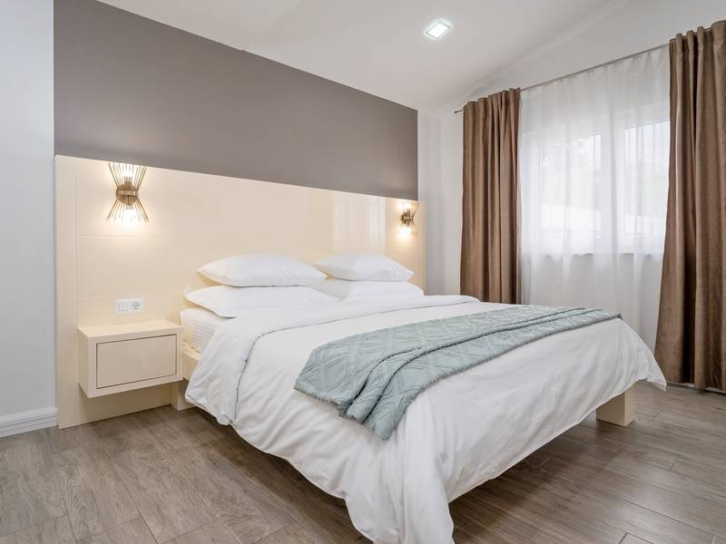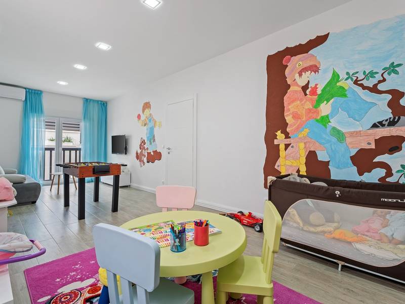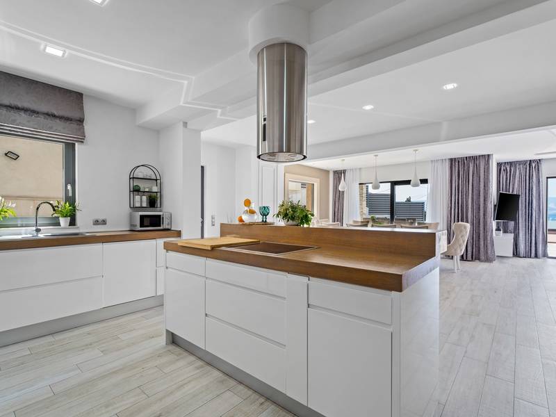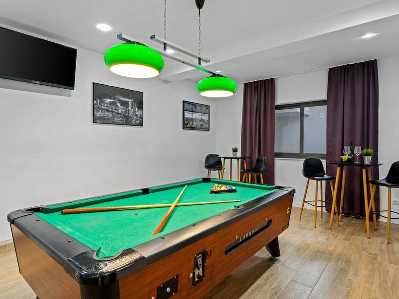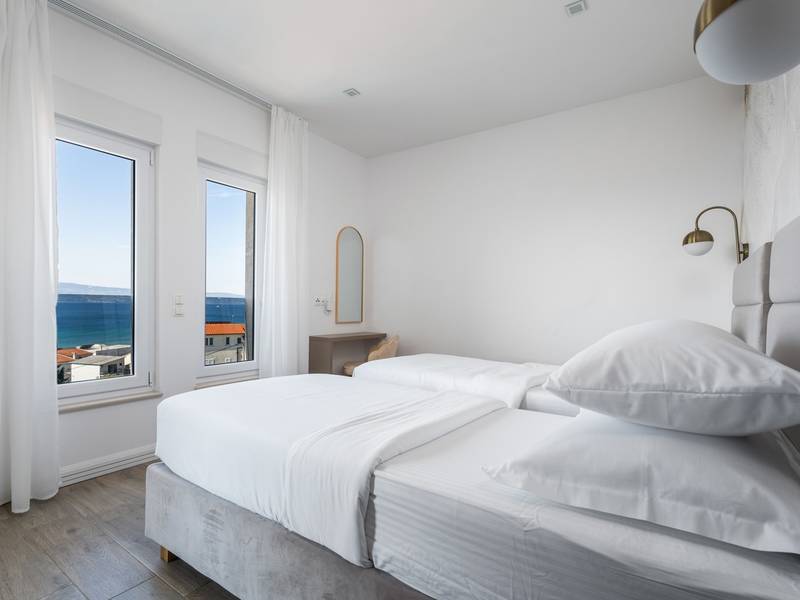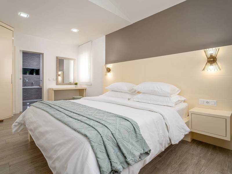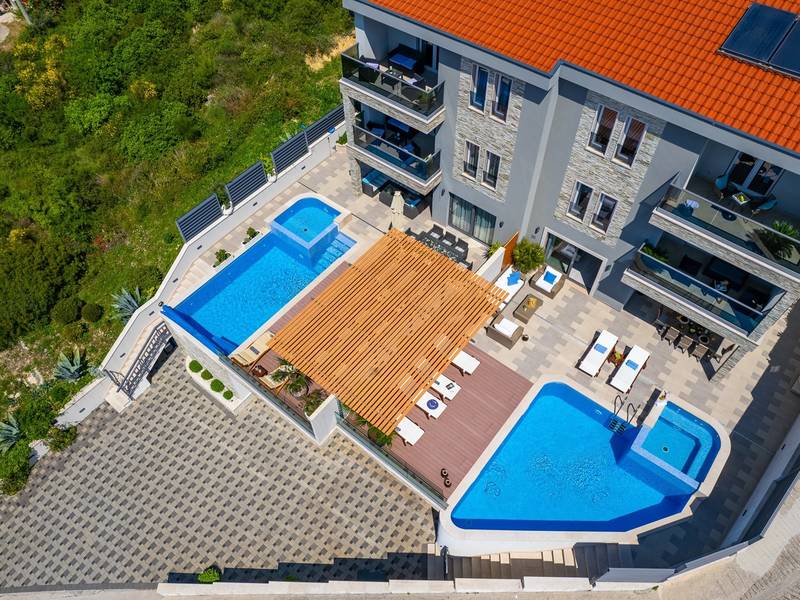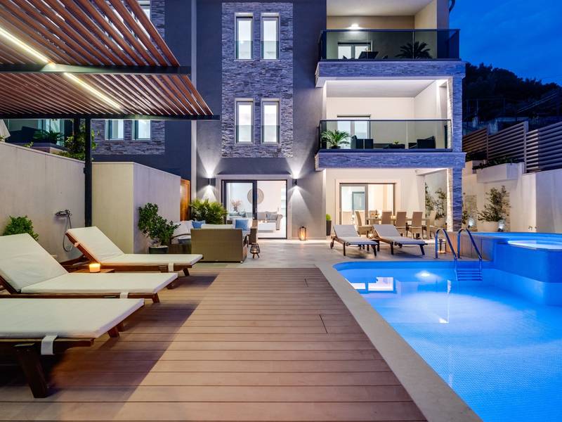 Villa Bane ist eine Doppelhaushälfte; beide Häuser gehören zwei Brüdern, die Einheimische sind. Jede Villa bietet Platz für 10+2 Gäste. Sie brauchen sich keine Sorgen zu machen, Privatsphäre ist gegeben, wie viele unserer Gäste in der Vergangenheit kommentiert. Die Villa verfügt über einen 32m2 großen beheizten trapezförmigen Pool mit einem angeschlossenen Whirlpool mit Hydromassage und einer Sitzbank für 4 Erwachsene, beide mit synchronisierter Wassertemperatur für ultimative Entspannung. Im Außenbereich gibt es einen schönen überdachten Essbereich, eine schön möblierte Sonnenterrasse und einen weichen Sitzbereich, alle mit Blick auf das Meer. Außerdem gibt es einen eingebauten Grill um die Ecke, der die Idee des Lebens im Freien unterstützen könnte. Villa Bane hat zwei Etagen mit fünf Schlafzimmern, einem Spielzimmer und insgesamt 6 Badezimmern + 1 Toilette. Sie verfügt über mehrere Balkone und Terrassen und einen Fitnessraum im Untergeschoss. Die Villa Bane ist komplett eingezäunt und verfügt über 3-4 geschlossene Garagenplätze, und der Poolbereich ist diskret eingezäunt, so dass Sie Ihre Privatsphäre haben. Die Villa Bane ist komplett ausgestattet mit 9 Klimaanlagen und Heizung im gesamten Haus und in allen 5 Schlafzimmern, einem Swimmingpool, einer voll ausgestatteten Küche, einem Außengrill neben dem Eingang, einem Fernseher, kostenlosem schnellem Wi-Fi und allen Annehmlichkeiten, die Sie brauchen, um dies zu Ihrem Zuhause zu machen. -Erdgeschoss: Der Haupteingang führt Sie in den geräumigen Wohn- und Essbereich mit Ausgang zum Poolbereich und Blick auf das Meer. Im Wohnzimmer finden Sie 2 Klimaanlagen, einen Fernseher und einen Ausgang zur Terrasse. Sie und Ihre Lieben können es sich auf den bequemen Sofas gemütlich machen. Der Wohnbereich ist mit der Küche und dem Essbereich verbunden, und alle sind sehr geräumig. Neben der Küche gibt es eine Speisekammer und eine Toilette im Erdgeschoss. Die große und schöne Küche ist komplett ausgestattet mit einem Kühlschrank mit Gefrierfach, einem Elektroherd mit vier Kochfeldern, einer Spülmaschine, Töpfen und Pfannen, Tellern und Besteck, einer Kaffeemaschine, einem Toaster, einem Wasserkocher und einer Mikrowelle. Erster Stock: Schlafzimmer Nr. 1 mit einem Doppelbett 180*200, einem kompletten Badezimmer mit Dusche (en-suite). Schlafzimmer Nr. 2 hat zwei Einzelbetten 90*200, die zu einem Doppelbett verbunden werden können, und ein komplettes Badezimmer mit Dusche (en-suite). Es hat eine Tür, um auf die Außenterrasse mit Meerblick zu gelangen (zusammen mit Schlafzimmer Nr. 1). Geräumiges Spielzimmer mit Fernseher, Spielkonsole und Spielzeug, ein toller Ort für Kinder jeden Alters. Zweiter Stock: Schlafzimmer Nr. 3 mit einem Doppelbett 180*200, es hat ein komplettes Badezimmer mit Dusche (en-suite). Es hat eine Tür, um die Außenterrasse mit Meerblick zu erreichen (zusammen mit Schlafzimmer Nr. 4). Schlafzimmer Nr. 4 hat ein Doppelbett 180*200, es hat ein komplettes Badezimmer mit Dusche (en-suite). Es hat eine Tür, um auf die Außenterrasse mit Meerblick zu gelangen (zusammen mit Schlafzimmer Nr. 3). Schlafzimmer Nr. 5 mit einem Doppelbett 180*200, es hat ein komplettes Badezimmer mit einer Badewanne (en-suite). Im Untergeschoss befindet sich ein Spielzimmer mit einem Billardtisch und einigen Fitnessgeräten sowie ein Badezimmer mit einer Dusche. In der Garage befindet sich ein Tennistisch. - Es besteht auch die Möglichkeit, traditionelle dalmatinische Gerichte für Sie zubereiten zu lassen. Zusätzliche Dienstleistungen (nicht inbegriffen), die von unserer Agentur Feriehome empfohlen werden: - Sie können bequem von Ihrem Sofa aus eine Lebensmittellieferung bestellen, die zum vereinbarten Zeitpunkt in Ihre Villa geliefert wird; - Genießen Sie ein kulinarisches Erlebnis mit einem Privatkoch in der Villa, der alles zubereiten kann, von einem romantischen Abendessen bis hin zu einem familienfreundlichen Dinner.- Sie können eine In-Villa-Massage mit unserer professionellen Masseurin genießen, die ihre therapeutischen Fähigkeiten unter Beweis stellen kann; - ein Gefühl für die Adria und einige Segelerfahrungen mit einem Segelboot (+Skipper) bekommen; - eine Bootstour machen, um die mitteldalmatinische Küste und die Inseln zu erkunden...für weitere Informationen stehen wir Ihnen gerne zur Verfügung. Wir freuen uns auf Ihre Anfrage, Ihr Feriehome-Agenturteam :)