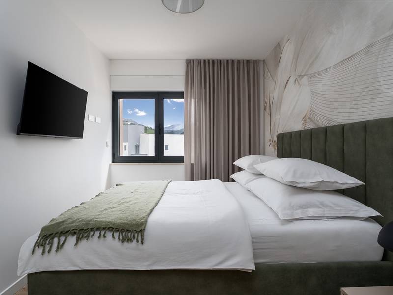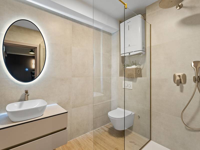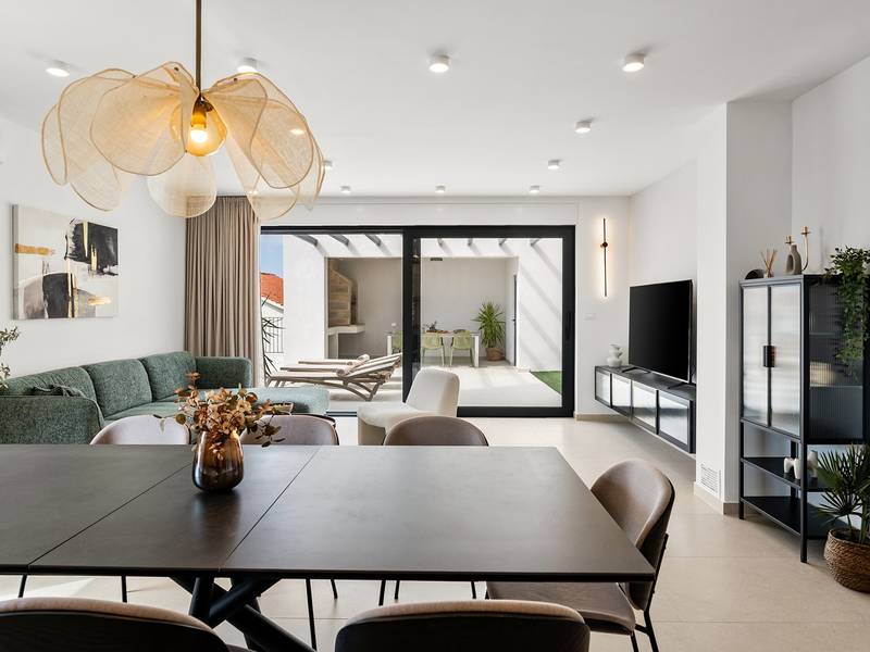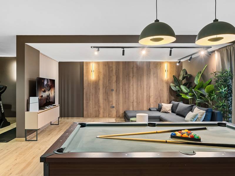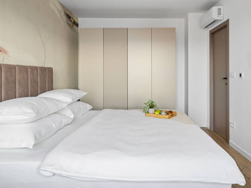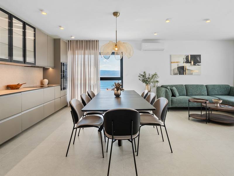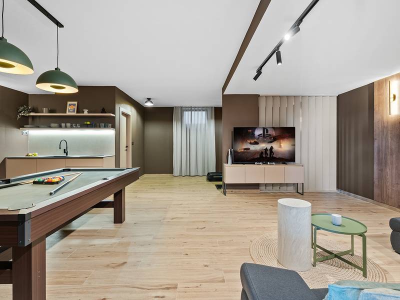 Eine stilvolle 3-Schlafzimmer-Villa mit Meerblick, beheiztem Pool, Medienraum und Fun-Zone, Billardtisch, Laufband, PS5, 2 Bäder, nur wenige Schritte von der Küste von Dugi Rat Willkommen in der Villa Logos, eine atemberaubende neu gebaute Villa mit Meerblick, nur 150 Meter von der kristallklaren Adria entfernt. Dieses außergewöhnliche Anwesen befindet sich auf einem 270 m² großen Privatgrundstück und bietet auf drei Ebenen eine großzügige Wohnfläche von 200 m², die Platz für 6 Personen bietet. Die Villa Logos ist so konzipiert, dass sie Ihrer Familie oder Ihren Freunden einen unvergesslichen Urlaub bietet und Ihnen Komfort und Luxus während Ihres gesamten Aufenthalts garantiert. Oase im Freien Der Außenbereich ist ein wahres Highlight der Villa Logos. Sie können einen privaten beheizten Pool von 7 mal 3 Metern genießen, der mit einem sanften Elektrolyse-Filtersystem ausgestattet ist, das Ihre Haut schont. Um den Pool herum befindet sich eine Sonnenterrasse mit fünf bequemen Liegestühlen, auf denen Sie die Sonne genießen können. Zur Villa gehört auch ein überdachter Essbereich im Freien mit einem Grill, der es Ihnen ermöglicht, köstliche Mahlzeiten im Freien einzunehmen. Zur Entspannung gibt es eine gemütliche Lounge-Ecke, in der Sie sich nach einem Tag voller Entdeckungen entspannen können, und eine Außendusche bietet zusätzlichen Komfort für Ihre Zeit am Pool. Der Außenbereich bietet einen direkten Zugang zur Küche und zum Wohnzimmer, so dass ein nahtloser Übergang zwischen Innen- und Außenbereich entsteht. Geräumiger Wohnbereich Der Wohnbereich im Erdgeschoss ist voll klimatisiert und hat eine beeindruckende Größe von 38 Quadratmetern. Dieser Raum ist mit kostenlosem WiFi ausgestattet und verfügt über eine voll ausgestattete Küche sowie einen Esstisch, an dem acht Personen bequem Platz finden. Sie können sich auf dem bequemen Sofa entspannen, während Sie Ihre Lieblingssendungen auf dem Flachbildschirm-Smart-TV genießen. Große Schiebetüren führen direkt zum Poolbereich, der einen einfachen Zugang und eine schöne Aussicht bietet. Außerdem gibt es auf dieser Ebene eine separate Toilette. Unterhaltungs- und Fitnessoptionen Im unteren Erdgeschoss (Parkebene) finden Sie einen 55 Quadratmeter großen Medienraum und eine Fun-Zone mit Billardtisch, die ebenfalls voll klimatisiert ist. Dieses Unterhaltungszentrum verfügt über ein Sofa, das in ein zusätzliches Bett umgewandelt werden kann, eine PlayStation 5 für Spielefans, ein Surround-Sound-System und einen Smart-TV mit Netflix für Ihr Fernsehvergnügen. Wenn Sie lieber aktiv bleiben möchten, finden Sie im Fitnessbereich ein Laufband, eine Yogamatte und Gewichte sowie einen Billardtisch für einen freundschaftlichen Wettkampf. Außerdem gibt es eine 16 Quadratmeter große Kinderecke mit Spielzeug, um Ihre jüngsten Familienmitglieder zu unterhalten. Ein Familienbad mit Dusche befindet sich ebenfalls auf dieser Ebene. Gut organisierte Schlafzimmer Im ersten Stock finden Sie drei schön eingerichtete Schlafzimmer und ein Familienbad mit Dusche. Das erste Schlafzimmer ist 15,6 Quadratmeter groß und verfügt über ein Kingsize-Bett (180 cm x 200 cm), einen herrlichen Meerblick, einen Fernseher und eine Klimaanlage. Das zweite Schlafzimmer mit 11 Quadratmetern bietet ein Queen-Size-Bett (160 cm x 200 cm), einen Fernseher und eine Klimaanlage für zusätzlichen Komfort. Das dritte Schlafzimmer ist 8,5 Quadratmeter groß und verfügt über ein Einzelbett (90 cm x 200 cm) sowie ein ausziehbares Einzelbett, ebenfalls mit Klimaanlage. Im Flur finden Sie einen gut organisierten Bereich mit Waschmaschine, Trockner und Bügelzubehör. Experience Villa Logos Der Gastgeber wird bei Ihrer Ankunft vor Ort sein und Ihnen gerne alle notwendigen Informationen und Empfehlungen für die Umgebung geben.Zusätzliche Dienstleistungen (nicht inbegriffen) werden von unserer Agentur Feriehome empfohlen, also fragen Sie ruhig nach: - Sie können bequem vom Sofa aus eine Lebensmittellieferung bestellen, die zum vereinbarten Zeitpunkt in die Villa geliefert wird; - Genießen Sie ein kulinarisches Erlebnis mit einem Privatkoch in der Villa, der alles zubereiten kann, von einem romantischen Abendessen bis zu einem familienfreundlichen Dinner.- Sie können eine Massage in der Villa mit unserer professionellen Masseurin genießen, die ihre therapeutischen Fähigkeiten unter Beweis stellen kann; - ein Gefühl für die Adria bekommen und ein wenig Segelerfahrung mit einem Segelboot (+Skipper) sammeln; - eine Bootstour machen, um die mitteldalmatinische Küste und die Inseln zu erkunden... für weitere Informationen stehen wir Ihnen gerne zur Verfügung. Kommen Sie und genießen Sie einen erholsamen und unvergesslichen Urlaub in der Villa Logos, wo Komfort auf Luxus in einer malerischen Umgebung trifft. Buchen Sie noch heute Ihren Aufenthalt und schaffen Sie bleibende Erinnerungen in diesem wunderschönen kroatischen Refugium!