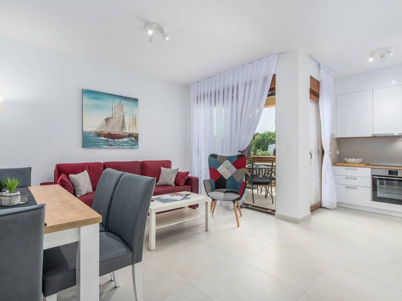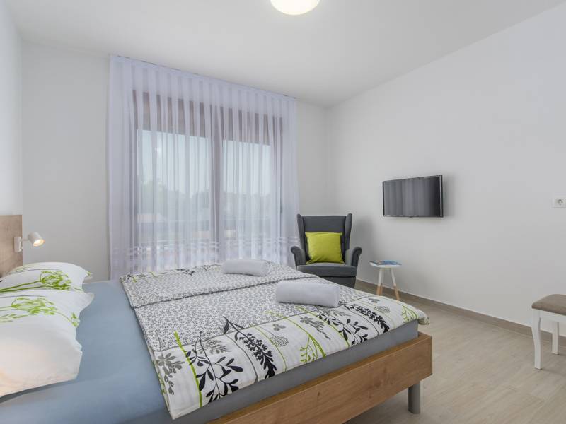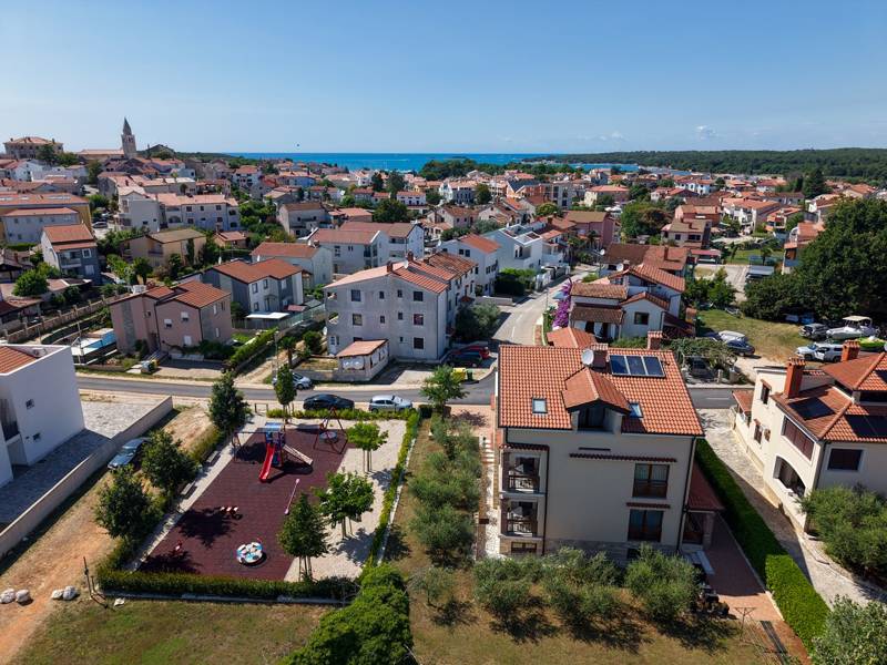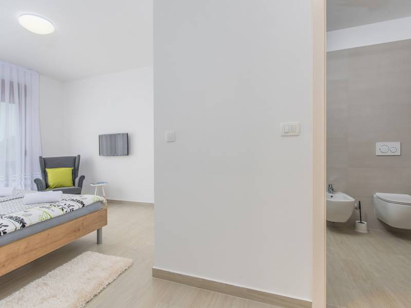 Die Appartementanlage Hana befindet sich im Dorf Funtana, das nur 700 m vom Meer und dem Strand entfernt ist. Der Appartementkomplex Hana besteht aus 5 modern eingerichteten Appartements für 2-4 Personen. Die Wohnungen Hana 1 und 2 befinden sich im ersten Stock, die Wohnungen Hana 2 und 4 im zweiten Stock und die Wohnung Hana 5 im Dachgeschoss. Den Gästen dieses schönen, neu gebauten Hauses stehen ein gemeinsamer Grill und ein schön angelegter Garten zur Verfügung. Alle Appartements sind mit allen notwendigen Annehmlichkeiten für einen komfortablen und schönen Familienurlaub oder einen Urlaub mit Freunden ausgestattet. Jedes der Appartements hat eine eigene Terrasse oder einen Balkon mit einer Sitzgarnitur und einem Autoabstellplatz. Alle Appartements sind zusätzlich mit Klimaanlage im Wohn- und Schlafbereich, Sat-TV, Wi-Fi, Geschirrspüler und Waschmaschine ausgestattet. Wir empfehlen dieses komfortable und moderne Ferienhaus in Funtana. In der Nähe gibt es viele Restaurants, Radwege, Promenaden, Supermarkt, Sehenswürdigkeiten, schöne Strände und andere Unterhaltungsmöglichkeiten.