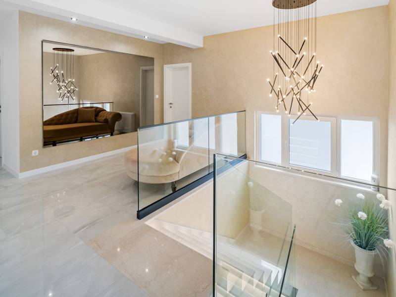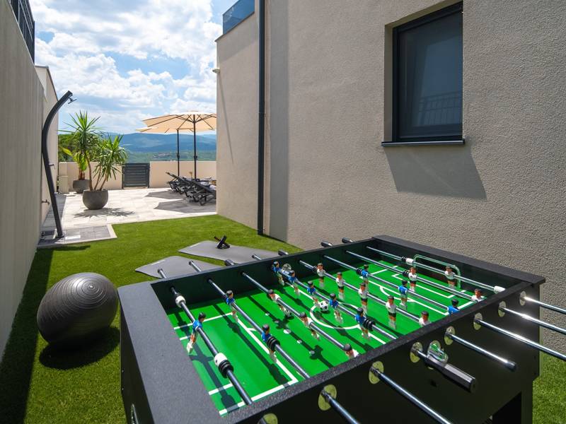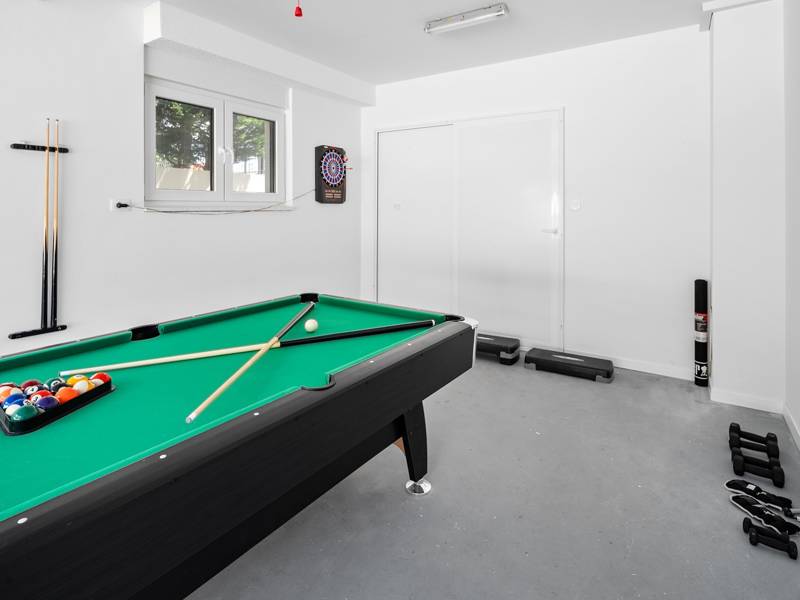 Willkommen in der Villa Bellezza, einer exquisiten Oase mit 5 Schlafzimmern in der malerischen Stadt Imotski, wo Luxus auf Komfort trifft. Eingebettet in ein privates 500 m² großes Grundstück, bietet diese atemberaubende Villa eine hochwertige Einrichtung und eine voll klimatisierte Innenausstattung auf 300 m², die die perfekte Mischung aus Eleganz und Entspannung bietet. Nur einen kurzen Spaziergang (500 m bis 1 km) von den örtlichen Geschäften, Bars und Restaurants sowie den atemberaubenden Blauen und Roten Seen (1 km) entfernt, ist die Villa Bellezza ideal gelegen, um sowohl Komfort als auch Freizeit zu genießen. - Oase im Freien Treten Sie hinaus in Ihr persönliches Paradies. Im Außenbereich befindet sich ein privater Pool von 10m x 4m, der zu einem erfrischenden Bad in der Sonne einlädt. Um den Pool herum befindet sich eine geräumige Sonnenterrasse mit 10 stilvollen Liegestühlen, auf denen Sie die Sonne genießen oder ein gutes Buch lesen können. Der überdachte Essbereich im Freien bietet Platz für bis zu 10 Personen und ist mit einem Fernseher und einem Holzkohlegrill ausgestattet - ein idealer Ort, um im Freien zu speisen und sich zu unterhalten. Für Familien mit Kindern bietet die Villa Bellezza eine wunderbare Spielecke mit Rutsche und Schaukel, so dass Ihre Kleinen in einer sicheren Umgebung viel Spaß haben. Eine Außendusche und eine separate Toilette machen das Leben im Freien noch angenehmer - im Innenbereich: Eine luxuriöse Flucht Beim Betreten der Villa eröffnet sich im Erdgeschoss ein 65 m² großer Wohn- und Essbereich, der zum Entspannen und geselligen Beisammensein einlädt. Die voll ausgestattete Küche verfügt über eine luxuriöse Kücheninsel, die die Zubereitung von Mahlzeiten zu einem angenehmen Erlebnis macht. Bequeme Sofas sind um einen Flachbildfernseher herum angeordnet, und große Glastüren führen direkt zum Poolbereich, so dass Innen- und Außenbereich nahtlos ineinander übergehen. Für Ihre Bequemlichkeit gibt es eine voll ausgestattete Waschküche mit Waschmaschine, Trockner und Bügelzubehör. Der Spaßbereich der Villa umfasst einen Billardtisch, Darts und ein multifunktionales Trainingsgerät sowie eine separate Toilette. Im Erdgeschoss befindet sich auch das Schlafzimmer Nr. 1 mit einem luxuriösen Kingsize-Bett (180 cm x 200 cm), einem eigenen Badezimmer mit moderner Dusche, Klimaanlage und einem Fernseher. - Im ersten Stock befinden sich vier weitere Schlafzimmer, die jeweils mit einem Kingsize-Bett (180cm x 200cm), einer Klimaanlage und einem Fernseher ausgestattet sind. Jedes Schlafzimmer verfügt über ein eigenes Bad mit Dusche - eines davon mit einer luxuriösen Badewanne zum Entspannen. Drei der Schlafzimmer haben einen geräumigen Südbalkon, von dem aus Sie eine malerische Aussicht genießen und sich im Freien einrichten können, um die warmen mediterranen Abende zu genießen. - Ausstattung und Sicherheit Die Villa Bellezza bietet Platz für bis zu 10 Personen und damit ausreichend Platz für Familien oder Gruppen. Ein gesicherter Parkplatz mit Platz für bis zu vier Autos und ein Videoüberwachungssystem am Eingang sorgen dafür, dass Sie sich während Ihres Aufenthalts keine Sorgen machen müssen. - Erkundung der Umgebung Die Villa Bellezza liegt strategisch günstig für Erkundungen. Die nächstgelegene Autobahnausfahrt/-auffahrt ist Zagvozd, nur 15 km entfernt, was den Zugang zu anderen Zielen erleichtert. In einer kurzen 1-stündigen Autofahrt erreichen Sie die historische Stadt Split, in der sich der berühmte Diokletianpalast befindet. Für Naturliebhaber ist der Krka-Nationalpark mit seinen atemberaubenden Wasserfällen nur 90 Minuten entfernt, während die ikonische Stadt Dubrovnik etwa 2 Stunden und 20 Minuten Fahrt entfernt liegt. Für einen Tag voller Abenteuer empfiehlt sich ein Besuch des Naturparks "Biokovo" oberhalb von Makarska, wo atemberaubende Aussichten auf Sie warten. Der Skywalk auf dem Biokovo-Berg in 1228 Metern Höhe ist eine freitragende Konstruktion, die einen atemberaubenden Blick aus der Vogelperspektive auf die Adria und die umliegenden Inseln bietet.Außerdem haben Sie die Möglichkeit, zwei bemerkenswerte Orte in Bosnien und Herzegowina zu erkunden: das spirituelle Heiligtum von Međugorje und die bezaubernden alten Straßen von Mostar, berühmt für seine ikonische Brücke, die beide innerhalb von 1-1,5 Autostunden zu erreichen sind. Die Villa Bellezza ist mehr als nur eine Ferienwohnung; sie ist ein exklusives Refugium, das Luxus, Komfort und ultimative Entspannung und Erholung bietet. Mit ihrer erstklassigen Lage, der atemberaubenden Ausstattung und dem durchdachten Design verspricht diese Villa ein unvergessliches Erlebnis, ganz gleich, ob Sie sich am Pool sonnen, die Naturschönheiten der Umgebung erkunden oder Zeit mit Ihren Lieben verbringen. Kommen Sie und entdecken Sie die bezaubernde Welt der Villa Bellezza in Imotski - Ihr luxuriöser Rückzugsort wartet auf Sie!