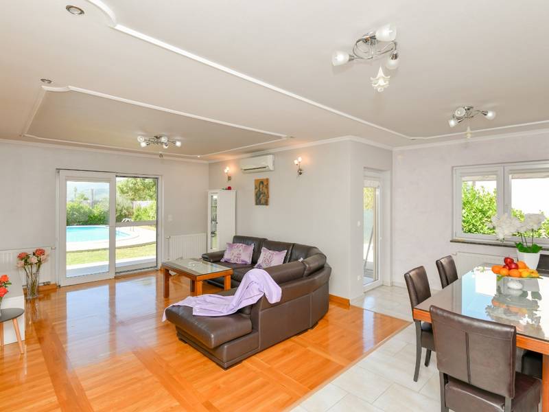 Diese moderne, klimatisierte Villa Hekaterosa verfügt über 3 Schlafzimmer, 2 Bäder mit Dusche und ein Gäste-WC. Der Wohnbereich verfügt über einen Flachbild-Satelliten-TV und Wi-Fi-Anschluss. Die Küche ist komplett ausgestattet mit Geschirrspüler, Backofen, Waschmaschine, Mikrowelle und Toaster. Grillzubehör ist im Ferienhaus vorhanden. Der Garten mit Swimmingpool lädt zum Entspannen ein und für Kinder gibt es einen Spielplatz. Mit dem Auto können Sie die nahegelegenen Seen (Modro jezero, Crveno jezero, Zeleno jezero oder Prolosko jezero) besuchen oder in die Stadt Imotski fahren und verschiedene Sehenswürdigkeiten wie die Altstadt (Stari Grad), die Kula Topana (Turm Topana) besichtigen, oder Sie machen einen Ausflug zum Fluss Vrlika.