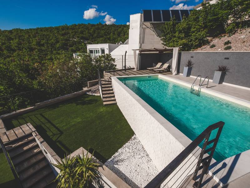 Diese schöne, moderne und luxuriöse Villa befindet sich in Jadranovo, nur 20 Meter vom Strand entfernt und bietet seinen Gästen ein einzigartiges Erlebnis eines Urlaubs am Meer. Die Villa verfügt über vier geräumige Schlafzimmer, ein elegantes Interieur und eine hochwertige Ausstattung für maximalen Komfort. Ein besonderer Vorteil dieser Villa ist der private Pool und eine geräumige Terrasse mit einem atemberaubenden Meerblick, ideal zum Entspannen und Genießen der mediterranen Atmosphäre. Die Villa ist komplett mit modernen Annehmlichkeiten ausgestattet und bietet die perfekte Kombination aus Luxus, Komfort und einer exklusiven Lage direkt an der Küste.