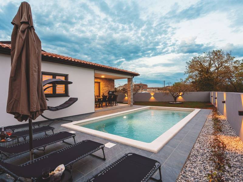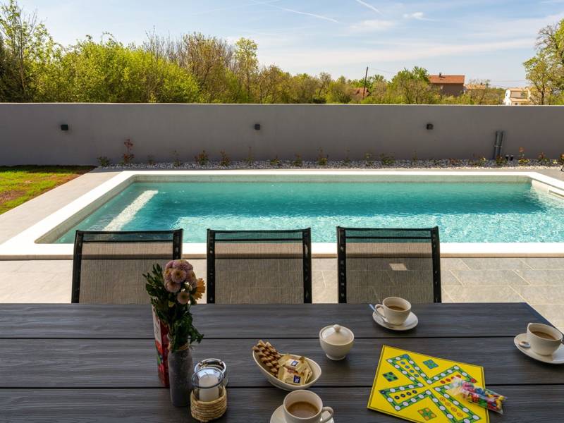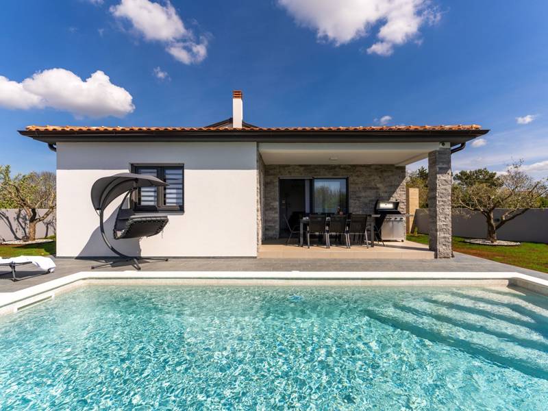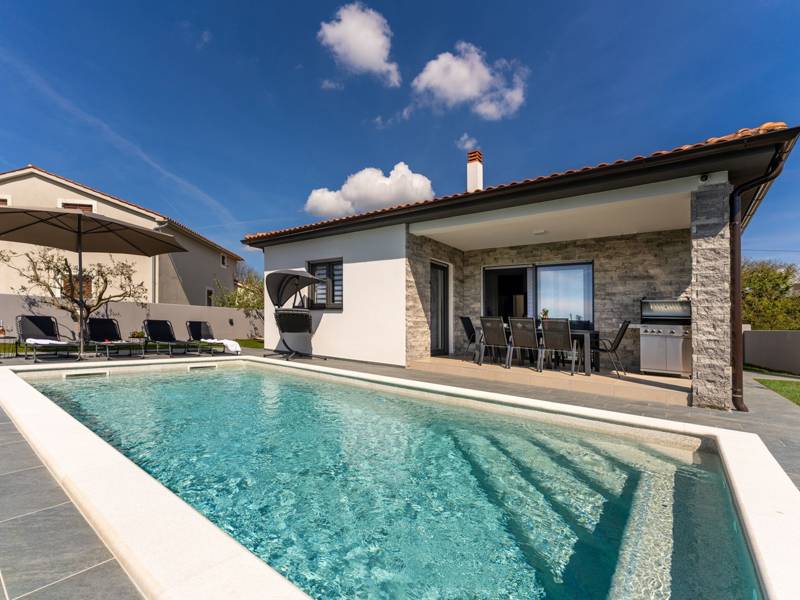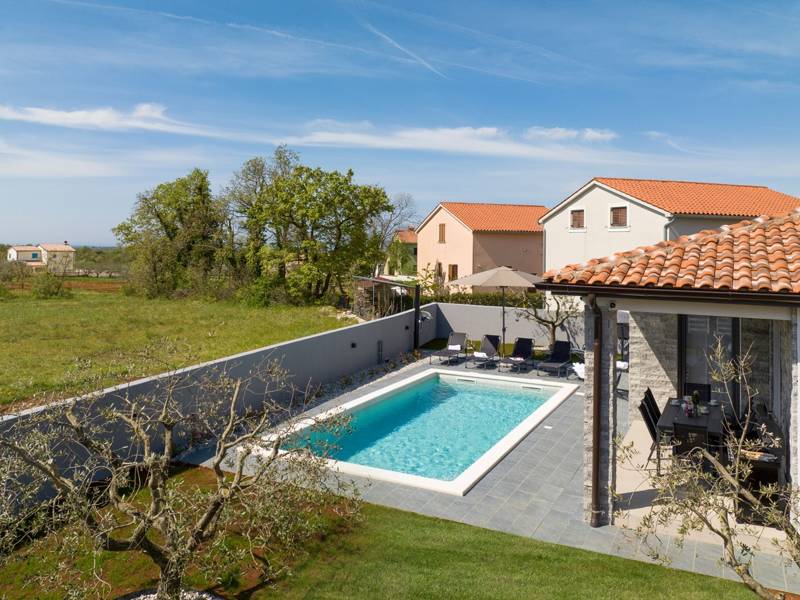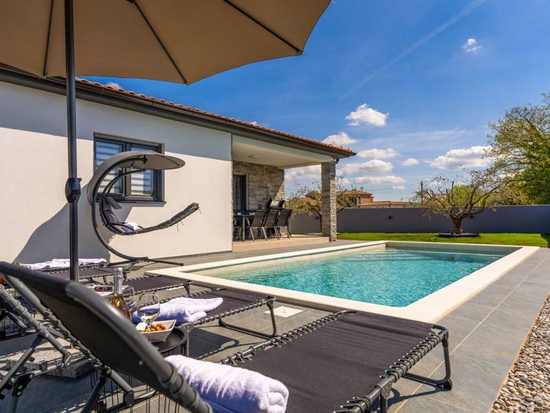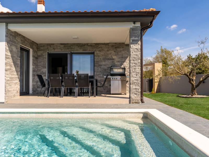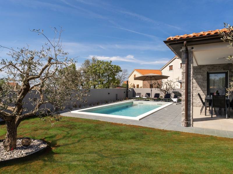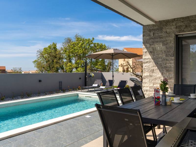 Diese wunderschön eingerichtete Villa Barbara mit 3 Schlafzimmern liegt in einer ruhigen, ländlichen Umgebung und bietet pure Entspannung und Komfort, während sie nur eine kurze Autofahrt von Istriens unglaublichen Stränden, Dörfern und Attraktionen entfernt ist. Auf einem privaten 525 m2 großen Grundstück gelegen, bietet die Villa Barbara 150 m2 eleganten Wohnraum auf einer Ebene. Der helle, offene Wohn- und Essbereich ist der perfekte Treffpunkt mit gemütlichen Sofas, einem Flachbildfernseher und einer voll ausgestatteten Küche, in der Sie vom schnellen Frühstück bis zum Familienessen alles zubereiten können. Große Glastüren führen direkt auf die Terrasse, so dass ein wunderbarer Übergang von drinnen nach draußen entsteht. Jedes der drei stilvollen Schlafzimmer verfügt über ein Doppelbett, Klimaanlage und einen Fernseher. Zwei der Schlafzimmer verfügen über ein Badezimmer mit eigenem Eingang direkt vom Schlafzimmer aus, während das dritte Schlafzimmer über ein Badezimmer mit separatem Eingang vom Flur aus verfügt. Treten Sie hinaus in Ihre eigene private Oase. Nehmen Sie ein erfrischendes Bad im Pool, entspannen Sie sich auf den Liegestühlen oder genießen Sie lange Sommerabende beim Essen auf der überdachten Terrasse. Für unvergessliche Mahlzeiten im Freien mit Familie und Freunden steht ein Gasgrill zur Verfügung. Für Ihren Komfort und Ihre Bequemlichkeit verfügt die Villa über eine Klimaanlage, High-Speed-Wi-Fi sowie eine Waschmaschine und Bügelmöglichkeiten. Die Villa Barbara befindet sich in dem charmanten Dorf Juršići, nur eine kurze Fahrt von Pula entfernt. Juršići ist bekannt für seine ruhige Landschaft, Olivenhaine und traditionellen Häuser. Hier genießen Sie die perfekte Mischung aus Ruhe und einem kleinen Lebensmittelgeschäft und einem lokalen Restaurant nur 500 Meter entfernt. Die Lage ist ideal, um die weitere Region zu erkunden - Pula, Rovinj, schöne Strände und die berühmten istrischen Weinstraßen sind alle leicht zu erreichen. - Haustiere sind gegen eine zusätzliche Gebühr willkommen - Ein Babybett und ein Hochstuhl sind auf Anfrage erhältlich Ob Sie am Pool entspannen, den Charme Istriens entdecken oder ein köstliches Abendessen bei Sonnenuntergang im Freien genießen, die Villa Barbara verspricht einen ruhigen und unvergesslichen Urlaub, zu dem Sie gerne zurückkehren werden.