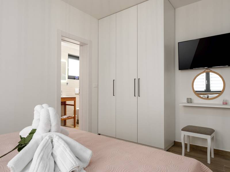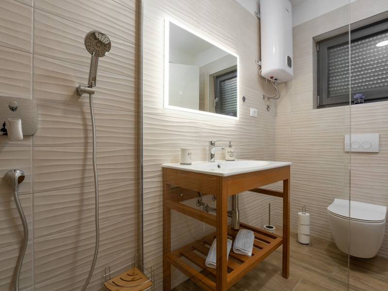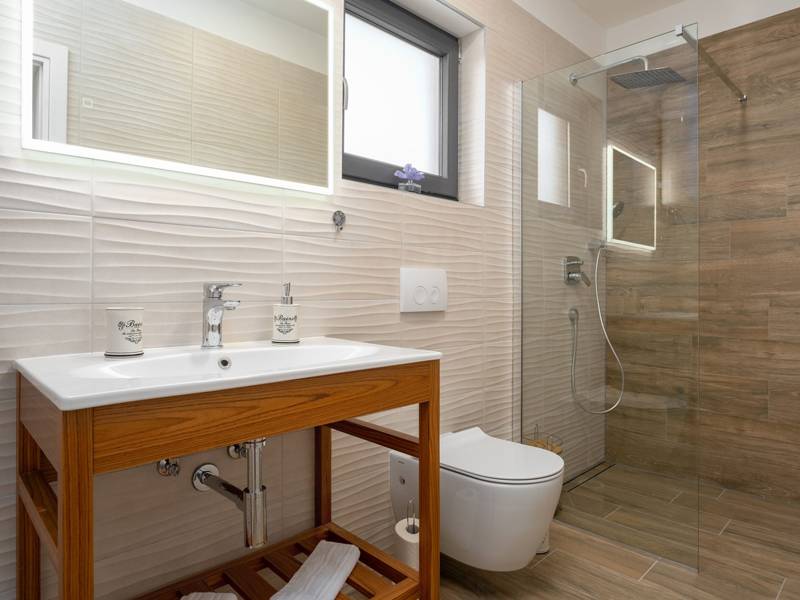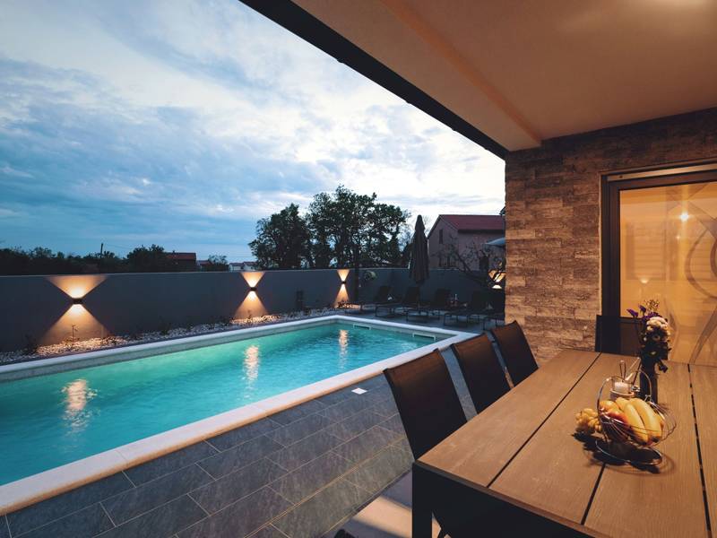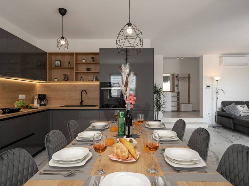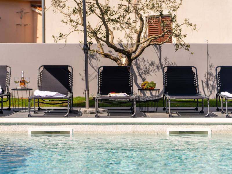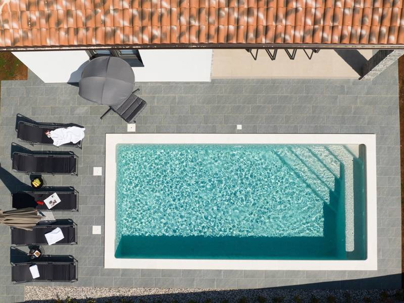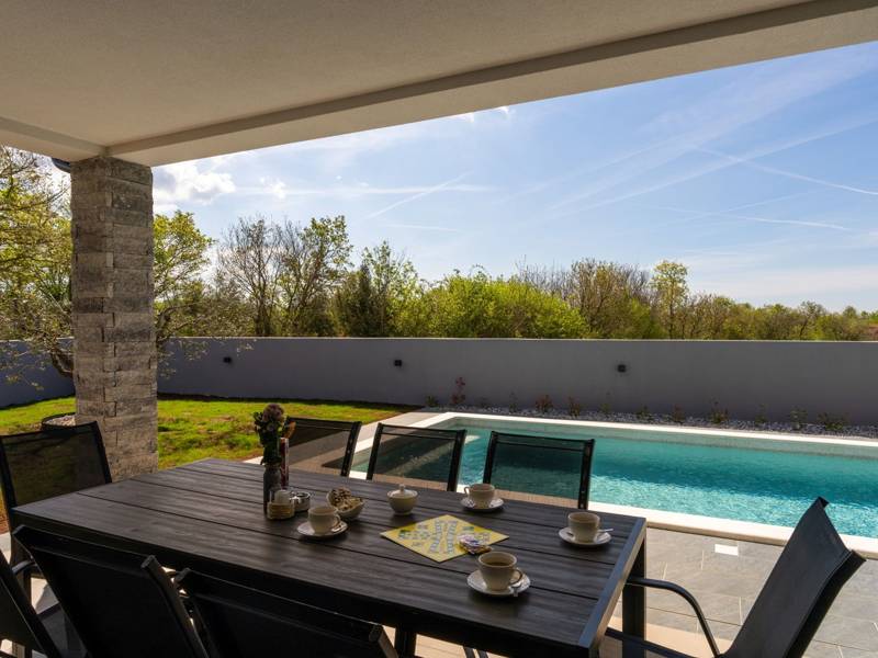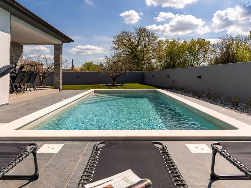 Diese wunderschön eingerichtete Villa Barbara mit 3 Schlafzimmern liegt in einer ruhigen, ländlichen Umgebung und bietet pure Entspannung und Komfort, während sie nur eine kurze Autofahrt von Istriens unglaublichen Stränden, Dörfern und Attraktionen entfernt ist. Auf einem privaten 525 m2 großen Grundstück gelegen, bietet die Villa Barbara 150 m2 eleganten Wohnraum auf einer Ebene. Der helle, offene Wohn- und Essbereich ist der perfekte Treffpunkt mit gemütlichen Sofas, einem Flachbildfernseher und einer voll ausgestatteten Küche, in der Sie vom schnellen Frühstück bis zum Familienessen alles zubereiten können. Große Glastüren führen direkt auf die Terrasse, so dass ein wunderbarer Übergang von drinnen nach draußen entsteht. Jedes der drei stilvollen Schlafzimmer verfügt über ein Doppelbett, Klimaanlage und einen Fernseher. Zwei der Schlafzimmer verfügen über ein Badezimmer mit eigenem Eingang direkt vom Schlafzimmer aus, während das dritte Schlafzimmer über ein Badezimmer mit separatem Eingang vom Flur aus verfügt. Treten Sie hinaus in Ihre eigene private Oase. Nehmen Sie ein erfrischendes Bad im Pool, entspannen Sie sich auf den Liegestühlen oder genießen Sie lange Sommerabende beim Essen auf der überdachten Terrasse. Für unvergessliche Mahlzeiten im Freien mit Familie und Freunden steht ein Gasgrill zur Verfügung. Für Ihren Komfort und Ihre Bequemlichkeit verfügt die Villa über eine Klimaanlage, High-Speed-Wi-Fi sowie eine Waschmaschine und Bügelmöglichkeiten. Die Villa Barbara befindet sich in dem charmanten Dorf Juršići, nur eine kurze Fahrt von Pula entfernt. Juršići ist bekannt für seine ruhige Landschaft, Olivenhaine und traditionellen Häuser. Hier genießen Sie die perfekte Mischung aus Ruhe und einem kleinen Lebensmittelgeschäft und einem lokalen Restaurant nur 500 Meter entfernt. Die Lage ist ideal, um die weitere Region zu erkunden - Pula, Rovinj, schöne Strände und die berühmten istrischen Weinstraßen sind alle leicht zu erreichen. - Haustiere sind gegen eine zusätzliche Gebühr willkommen - Ein Babybett und ein Hochstuhl sind auf Anfrage erhältlich Ob Sie am Pool entspannen, den Charme Istriens entdecken oder ein köstliches Abendessen bei Sonnenuntergang im Freien genießen, die Villa Barbara verspricht einen ruhigen und unvergesslichen Urlaub, zu dem Sie gerne zurückkehren werden.