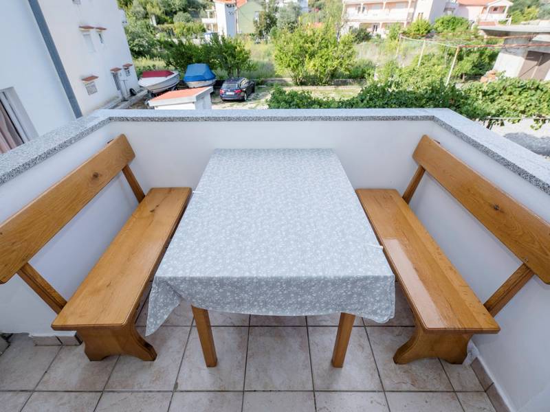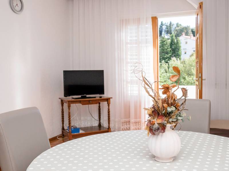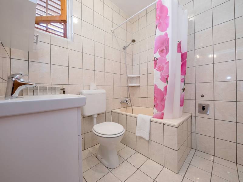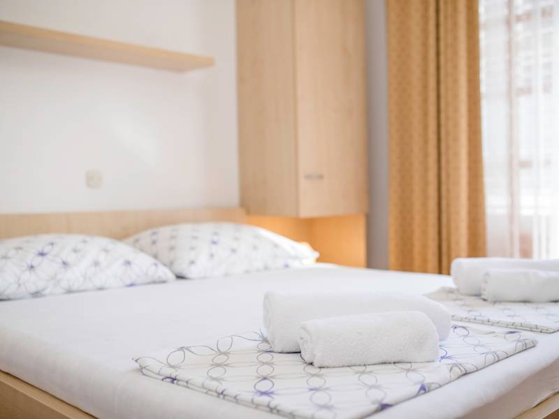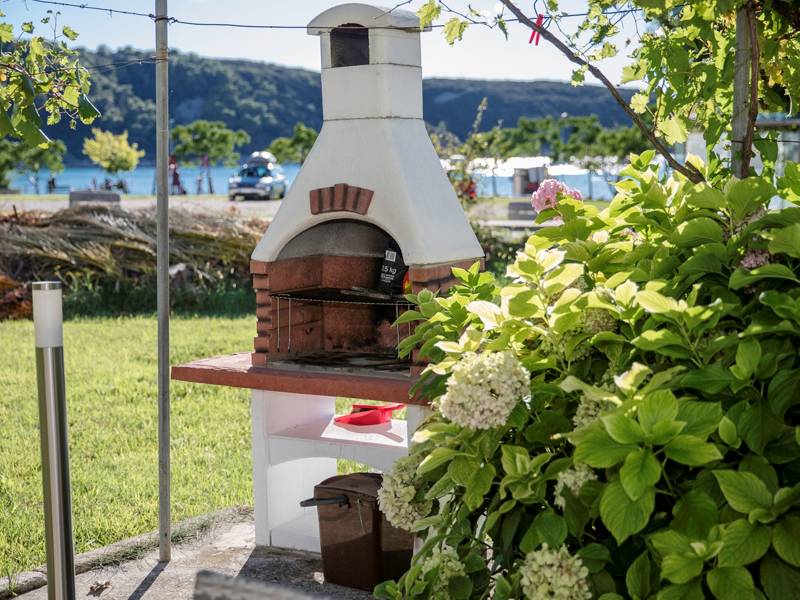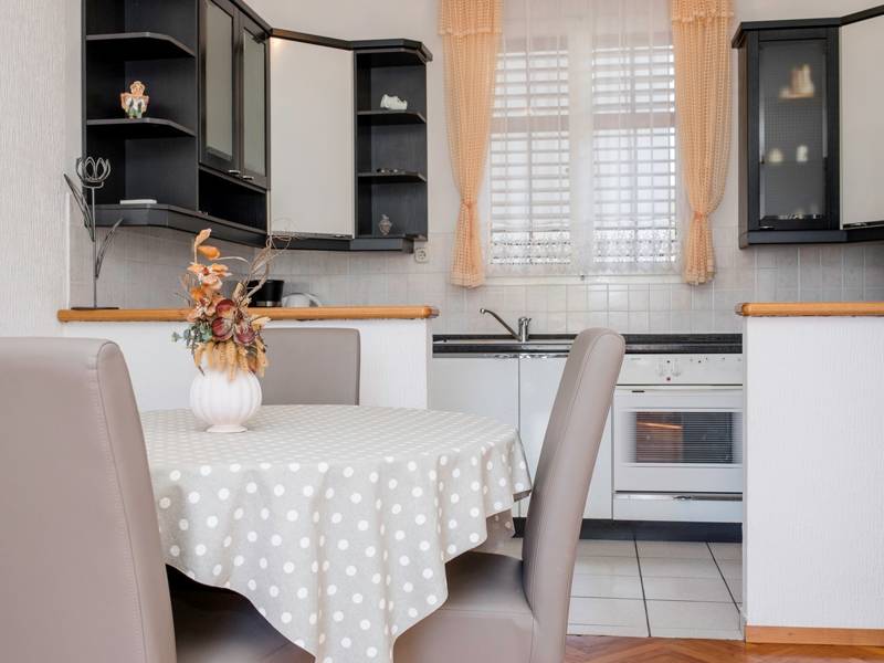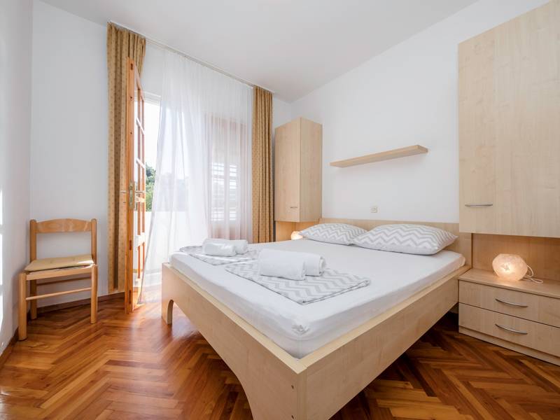 Verbringen Sie einen wunderbaren Urlaub in den Apartments Stanicic in Kampor, umgeben von viel Grün, auf der schönen Insel Rab gelegen. Das Anwesen besteht aus drei gut ausgestatteten und komfortablen Apartments, die alles bieten, was Sie für einen angenehmen Urlaub benötigen. Nur 70 Meter vom Meer entfernt, sind diese Wohnungen die perfekte Wahl für einen erholsamen Urlaub mit Ihren Liebsten! Dieses Apartment mit zwei Schlafzimmern befindet sich im ersten Stock des Hauses und bietet Platz für bis zu fünf Personen. Es besteht aus zwei Schlafzimmern mit Doppelbetten, einer schönen Küche, die mit allen notwendigen Geräten und Kochutensilien ausgestattet ist, und einem Badezimmer mit Badewanne. Die Küche ist mit dem Essbereich und einem geräumigen Wohnzimmer verbunden, in dem ein Schlafsofa für eine weitere Person steht. Vom privaten Balkon aus können die Gäste einen wunderschönen Meerblick genießen. Alle Gäste können die Gemeinschaftsterrasse mit Gartenmöbeln nutzen, und ein Grill steht ihnen ebenfalls zur Verfügung. Bettwäsche, Handtücher, WiFi, Satellitenfernsehen, Klimaanlage und Parkplatz sind im Mietpreis inbegriffen. Eine Ladestation für Elektrofahrzeuge steht den Gästen auf dem Hof der Anlage gegen eine Gebühr zur Verfügung. Herzlich willkommen und genießen Sie Ihren Aufenthalt!