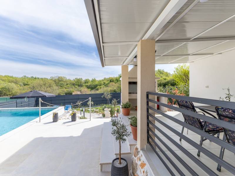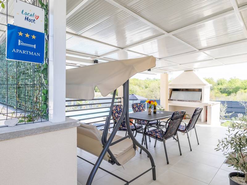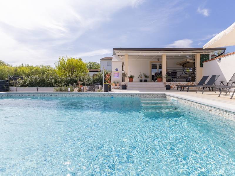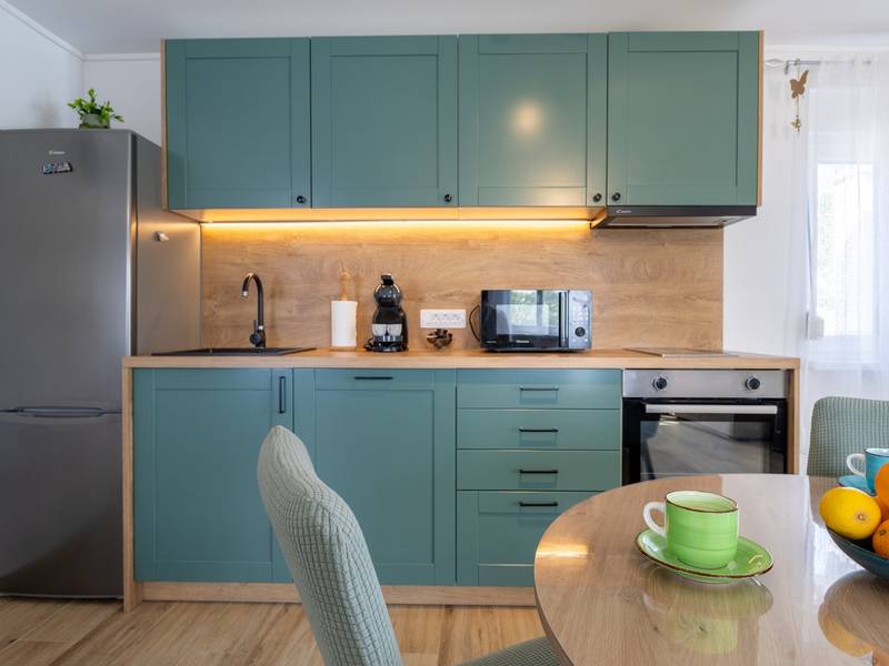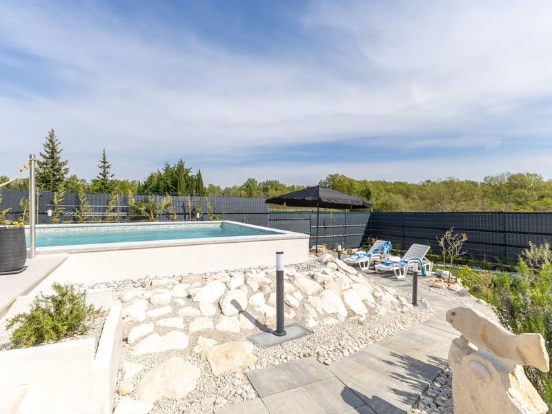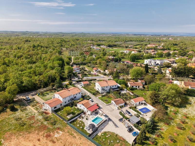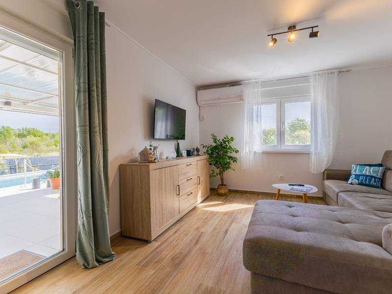 In dem ruhigen und grünen Dorf Kosinižići, in unmittelbarer Nähe von Poreč, gelegen, ist diese gemütliche Wohnung eine ideale Wahl für einen erholsamen Aufenthalt für bis zu 4 Personen. Die Lage bietet die perfekte Balance zwischen Privatsphäre und Nähe zu allen wichtigen Annehmlichkeiten und schönen istrischen Stränden. Die Wohnung ist modern und funktionell eingerichtet und besteht aus einer Küche, die mit dem Esszimmer und dem Wohnzimmer verbunden ist. Das Wohnzimmer ist mit einem Schlafsofa ausgestattet, das zusätzlichen Platz für zwei Personen bietet. Den Gästen stehen außerdem ein komfortables Schlafzimmer sowie ein Badezimmer mit Dusche und Waschmaschine zur Verfügung, was den Aufenthalt auch für längere Aufenthalte praktisch macht. Ein besonderer Vorteil dieser Unterkunft ist der private Außenbereich, der den Gästen völlige Ruhe und Freude an der Natur garantiert. Es gibt einen angelegten Garten, einen Grill und einen privaten Pool, perfekt für eine Erfrischung an warmen Sommertagen. Diese Wohnung ist eine ausgezeichnete Wahl für Paare, kleine Familien oder Freunde, die Poreč und Istrien erkunden und dabei den Komfort und die Privatsphäre ihrer eigenen Unterkunft genießen möchten.