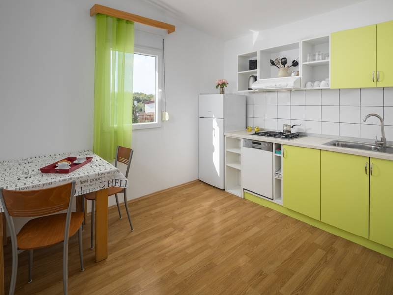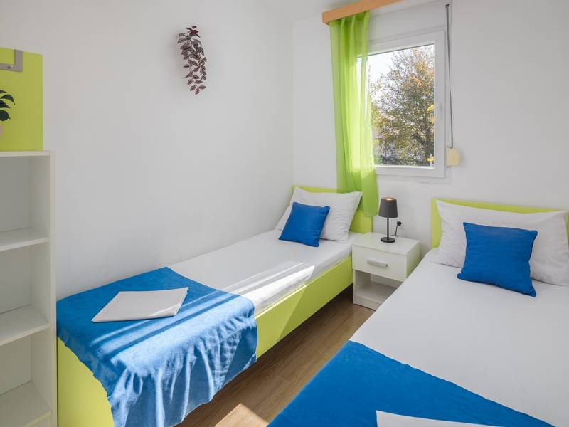 Das Ferienhaus Jelovci No.1 mit privatem Pool ist eines von neun Ferienhäusern im Holiday Park Village Jelovci. Das Haus besteht aus einem geräumigen Wohnzimmer mit einer ausgestatteten Küche und einem Essbereich, drei Schlafzimmern und zwei Badezimmern mit Duschen. Mit seinen drei Schlafzimmern kann das Haus bis zu 6 Personen beherbergen. Den Gästen stehen auch ein privater Garten mit Grillplatz und ein privater Swimmingpool (24m2) sowie eine private Terrasse mit Sitzmöbeln zur Verfügung. Alle Gäste des Village Park Jelovci können auch den gemeinsamen Kinderspielplatz mit einem Kinderbecken und anderen kindgerechten Aktivitäten nutzen. Es gibt auch eine Waschküche, die allen Gästen zur Verfügung steht, und einen Konferenzraum, der für verschiedene Arten von Versammlungen geeignet ist. Das Ferienhaus Jelovci ist ideal für eine Familie mit Kindern, die sicherlich alles genießen werden, was der Ferienpark Jelovci zu bieten hat, und hier wunderbare Urlaubserinnerungen schaffen werden. Das umweltfreundliche Feriendorf Jelovci nutzt erneuerbare Energien, daher ist die Klimaanlage 10 Stunden täglich kostenlos zu benutzen.