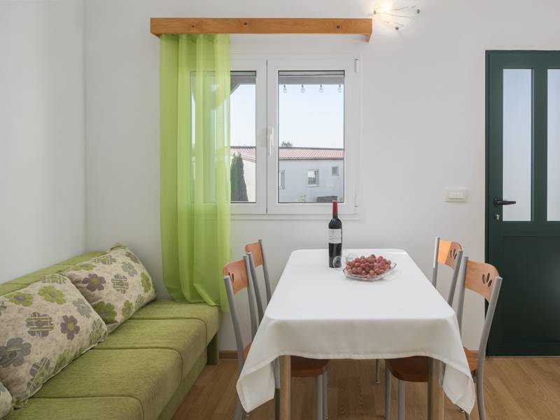 Das Ferienhaus Jelovci Nr.4 mit privatem Pool ist eines von neun Ferienhäusern im Holiday Park Village Jelovci. Das Haus besteht aus einem geräumigen Wohnzimmer mit einer ausgestatteten Küche und einem Essbereich, zwei Schlafzimmern und zwei Badezimmern mit Dusche. Mit seinen zwei Schlafzimmern und dem Schlafsofa im Wohnzimmer kann das Haus bis zu 6 Personen beherbergen. Den Gästen stehen auch ein privater Garten mit Grillplatz und ein privater Swimmingpool sowie eine private Terrasse mit Sitzmöbeln zur Verfügung. Alle Gäste des Village Park Jelovci können auch den gemeinsamen Kinderspielplatz mit einem Kinderbecken und anderen kindgerechten Aktivitäten nutzen. Es gibt auch eine Waschküche, die allen Gästen zur Verfügung steht, und einen Konferenzraum, der für verschiedene Arten von Versammlungen geeignet ist. Das Ferienhaus Jelovci Nr. 6 ist ideal für eine Familie mit Kindern, die sicherlich alles genießen werden, was der Ferienpark Jelovci zu bieten hat, und hier wunderbare Urlaubserinnerungen schaffen werden. Das umweltfreundliche Park Village Jelovci nutzt erneuerbare Energien, daher ist die Klimaanlage 10 Stunden täglich kostenlos.
