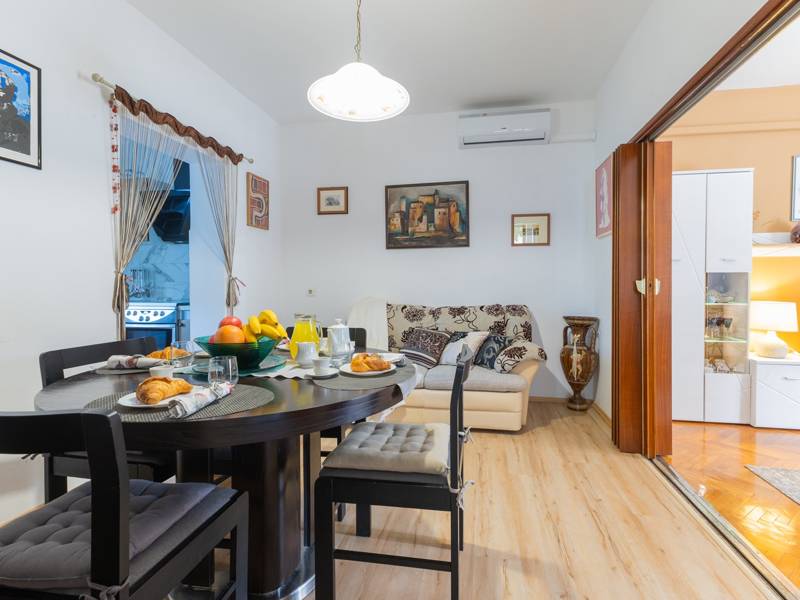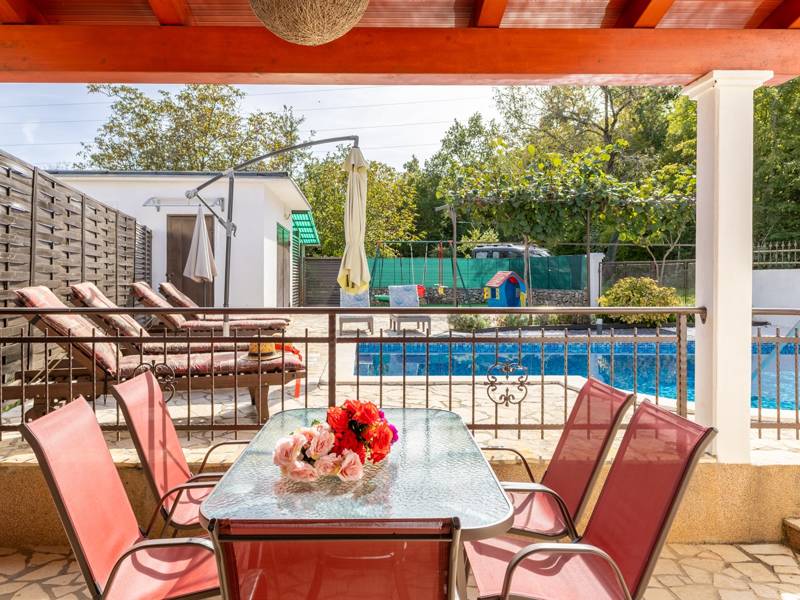 Wir bieten Ihnen ein schönes Familienhaus in unmittelbarer Nähe des malerischen Städtchens Labina und des Ferienortes Rabac. Dieses charmante Ferienhaus mit privatem Pool ist ideal für einen komfortablen und erholsamen Urlaub für die ganze Familie. Das Ferienhaus Tomovi hat drei Schlafzimmer, was perfekt für eine Familie ist, die zusammen reisen, aber auch ihre Privatsphäre behalten möchte. Jedes Schlafzimmer ist mit viel Liebe zum Detail eingerichtet, um einen komfortablen und entspannenden Raum zu schaffen. Das Wohnzimmer bietet einen angenehmen und großzügigen Raum für geselliges Beisammensein und Entspannung, und von dort aus gelangt man auf eine schöne Terrasse mit einem herrlichen Blick auf die umliegende Natur. Die Terrasse ist der perfekte Ort für den Morgenkaffee oder das abendliche Grillen. Die Küche ist modern ausgestattet und verfügt über alle notwendigen Einrichtungen für die Zubereitung köstlicher Mahlzeiten für die ganze Familie. In ihr finden Sie alles, was Sie brauchen, um sich wie zu Hause zu fühlen. Einer der größten Vorzüge dieses Hauses ist der private Pool und der eingezäunte Hof. Der Pool ist ideal, um sich an heißen Sommertagen zu erfrischen, während der eingezäunte Hof Privatsphäre und Sicherheit bietet, damit die Kinder frei spielen können. Das Haus ist traditionell eingerichtet und vermittelt Ihnen ein Gefühl von Heimat und Verbundenheit mit der lokalen Kultur. Es ist ein Ort, an dem Sie Ruhe und Frieden genießen können, aber gleichzeitig haben Sie leichten Zugang zu allen Attraktionen, die die schöne Stadt Labin und ihre Umgebung zu bieten hat.