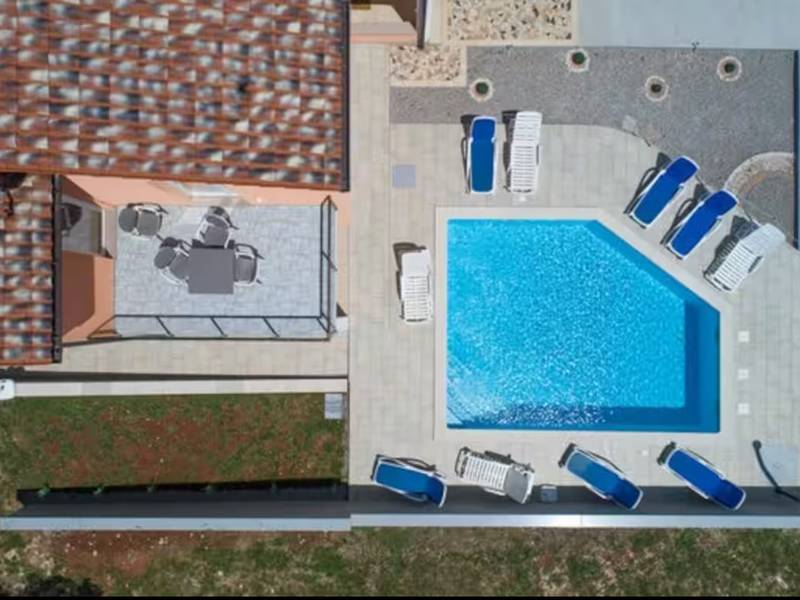 Die nur 2 km vom Stadtzentrum entfernten Apartments Paola sind die ideale Wahl für Gäste, die eine Kombination aus Privatsphäre, Komfort und Funktionalität suchen. Das Anwesen bietet zwei komplett getrennte Wohnungen im selben Haus, was es perfekt für größere Familien oder Gruppen von Freunden macht, die zusammen bleiben und trotzdem ihren eigenen Raum behalten möchten. Das Haus wird als Ganzes vermietet, so dass Sie während Ihres gesamten Aufenthalts absolute Privatsphäre haben. Die erste Wohnung befindet sich im Erdgeschoss und ist 120 m2 groß. Sie verfügt über drei Schlafzimmer - zwei mit Doppelbetten (160 x 200 cm) und eines mit zwei Einzelbetten (90 x 200 cm) -, zwei Badezimmer, eine voll ausgestattete Küche, die mit dem Wohnbereich verbunden ist, und eine große Außenterrasse, die zum Entspannen einlädt. Die zweite Wohnung befindet sich im Obergeschoss und hat eine Größe von 70 m2. Es besteht aus zwei Schlafzimmern - eines mit einem Doppelbett (160 x 200 cm) und eines mit zwei Einzelbetten (90 x 200 cm), einem Badezimmer, einem separaten WC, einer Küche mit Wohnbereich und einer eigenen Außenterrasse. Jedes Appartement hat einen separaten Eingang, was für zusätzlichen Komfort und Unabhängigkeit sorgt. Den Gästen steht das gesamte Haus zur Verfügung, so dass eine absolute Privatsphäre gewährleistet ist. Im Winter steht der Swimmingpool nicht zur Verfügung, dafür aber ein Außen-Whirlpool für bis zu 5 Personen, der mit Temperaturen von bis zu 40°C zum Entspannen einlädt. Das Haus ist sehr geräumig und bietet auch für größere Gruppen einen angenehmen Aufenthalt. Bitte beachten Sie, dass Partys mit lauter Musik nicht erlaubt sind und junge Gruppen nur nach vorheriger Anfrage akzeptiert werden.