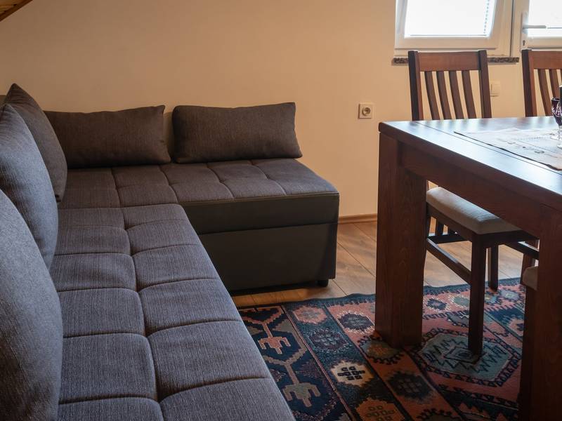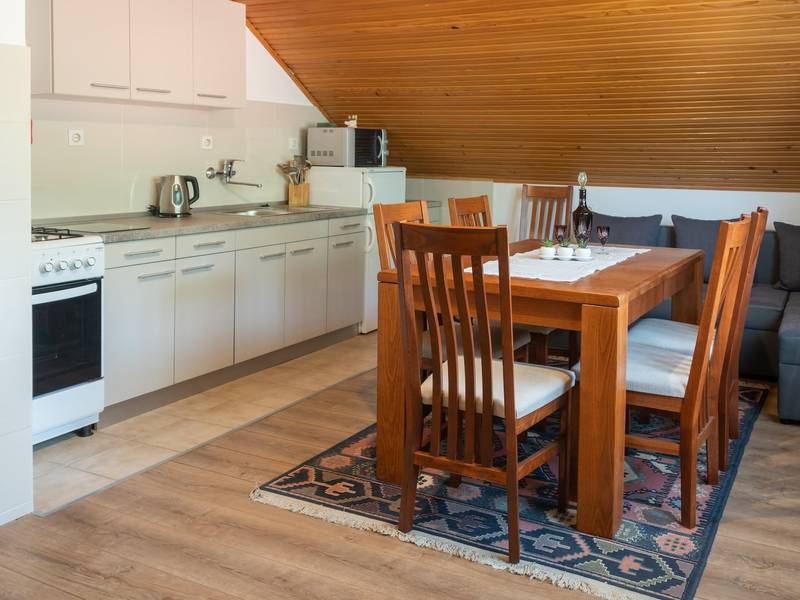 Im Herzen von Gorski Kotar, umgeben von schöner Natur und Ruhe, befindet sich ein Familienhaus mit zwei Wohnungen. Die richtige Wahl für einen ruhigen und erholsamen Urlaub, den Sie mit Spaziergängen zu den umliegenden Natursehenswürdigkeiten aufpeppen können. Das Appartement im Dachgeschoss ist komplett ausgestattet und wird in den Wintermonaten beheizt. Sie besteht aus zwei Schlafzimmern (Zimmer mit Doppel- und Einzelbett), Bad und Küche und Wohnzimmer mit Ausgang auf den Balkon, wo sich eine Sitzgarnitur befindet. Im Hof gibt es einen Parkplatz und einen Grill und Gartenmöbel. Das Haus liegt nur wenige hundert Meter vom Lokvarsko-See entfernt, wo man im Sommer schwimmen, Rad fahren oder auf gepflegten Wegen rund um den See wandern kann. In der Nähe befindet sich der Waldpark Golubinjak, der ein idealer Ort ist, um mit der Familie und Freunden zu grillen. Die wunderschöne Natur bietet Ihnen viele Möglichkeiten, so dass diejenigen, die einen Urlaub wollen, die Ruhe genießen können, die die Natur bietet, diejenigen, die einen aktiven Urlaub wollen, haben zu ihrer Verfügung den Nationalpark Risnjak, die Quelle der Kupa, Zeleni vir, Bijele und Samarske stijene, Platak.