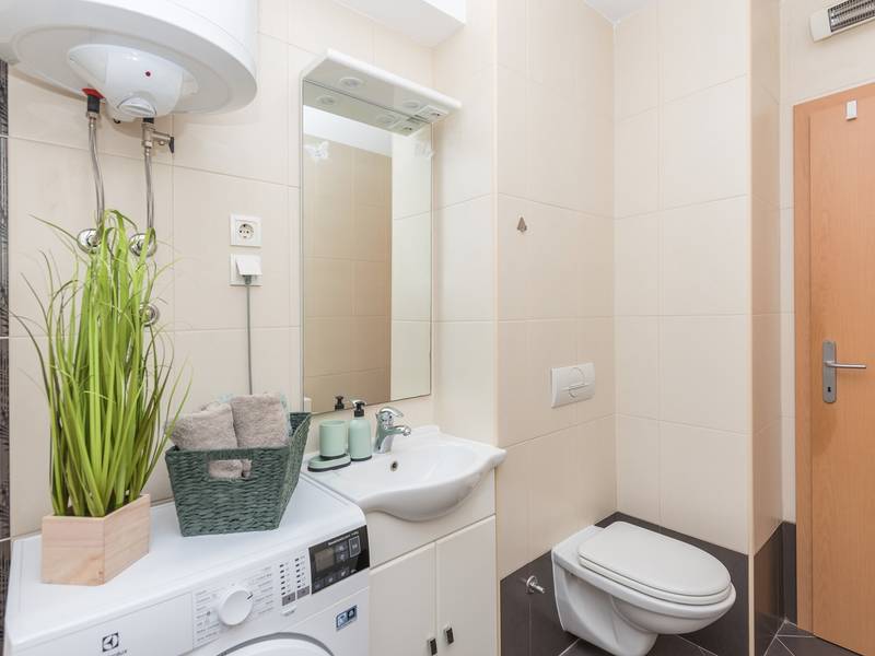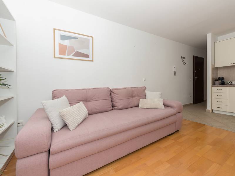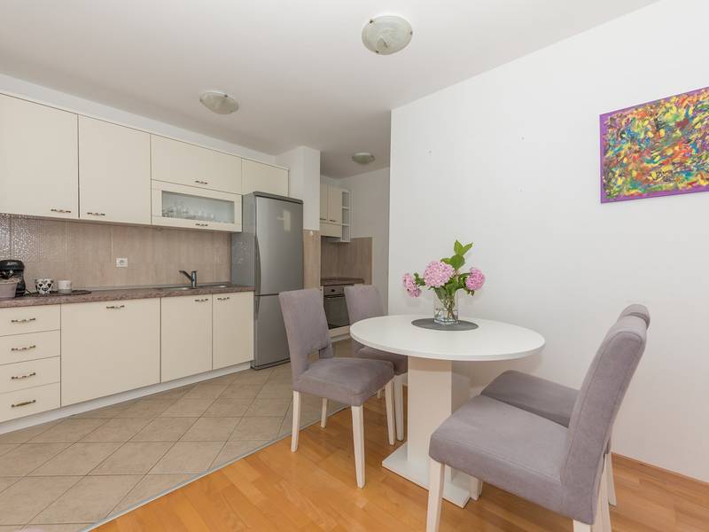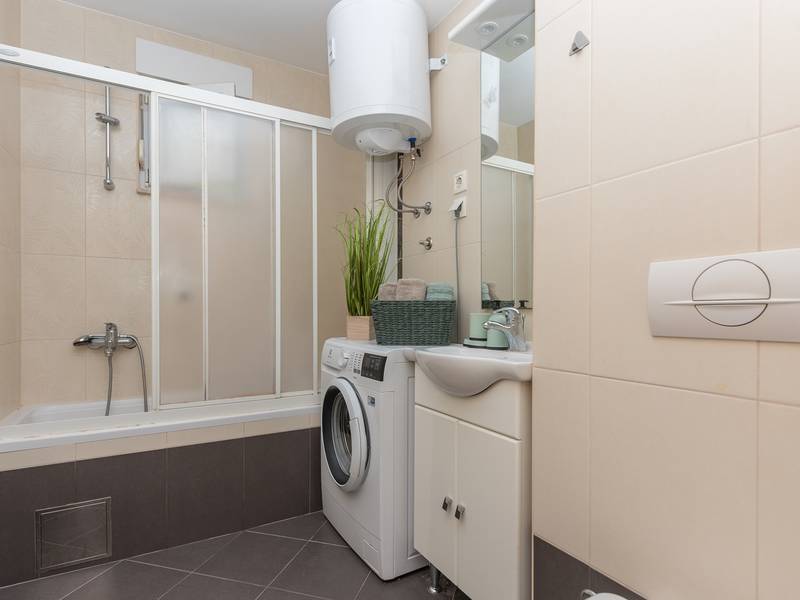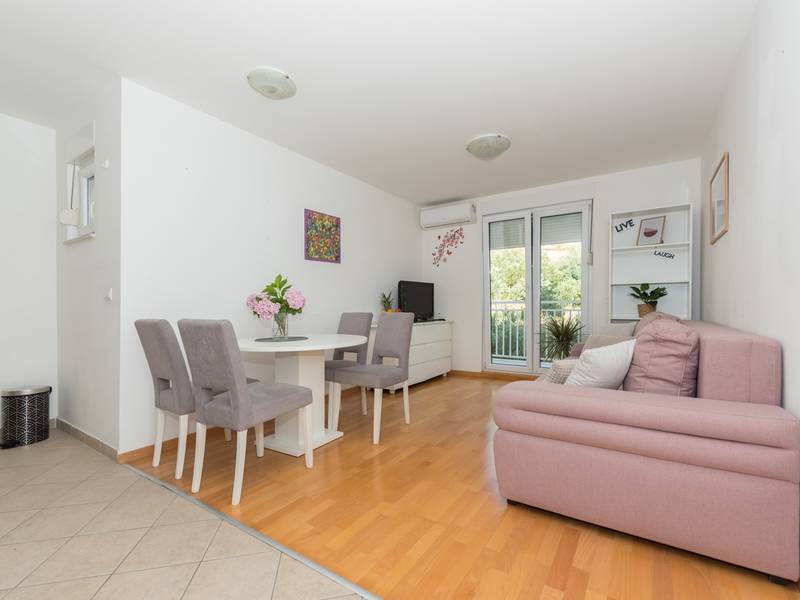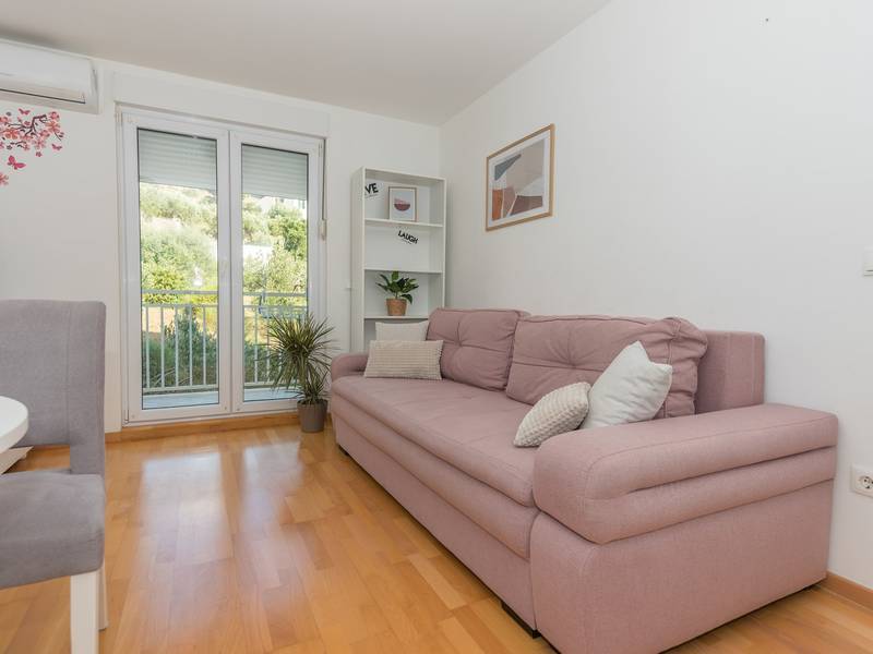 Apartment View" befindet sich in Makarska. Es hat 50m2 befindet sich im zweiten Stock eines Gebäudes und bietet Unterkunft für 4 Personen. Es besteht aus voll ausgestatteter Küche mit Esszimmer, Wohnzimmer mit Ausgang zum Balkon und ein großes Zimmer mit Doppelbett. Der Balkon hat eine tolle Aussicht auf die Berge. Im Wohnzimmer befindet sich ein Schlafsofa für zwei Personen. Es hat ein Badezimmer mit Badewanne. Das Apartment View ist voll ausgestattet mit verschiedenen zusätzlichen Einrichtungen; Balkon, kostenloses Wifi, Waschmaschine, Klimaanlage und kostenloser Parkplatz vor dem Haus. Der Haustierzuschlag beträgt 10 Euro pro Nacht. Objekt ID: ctma360