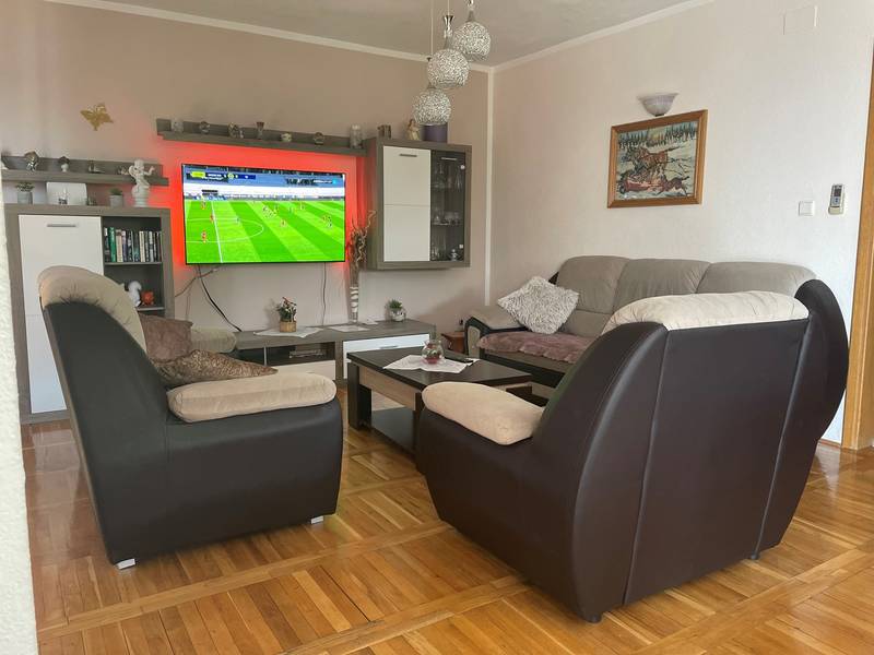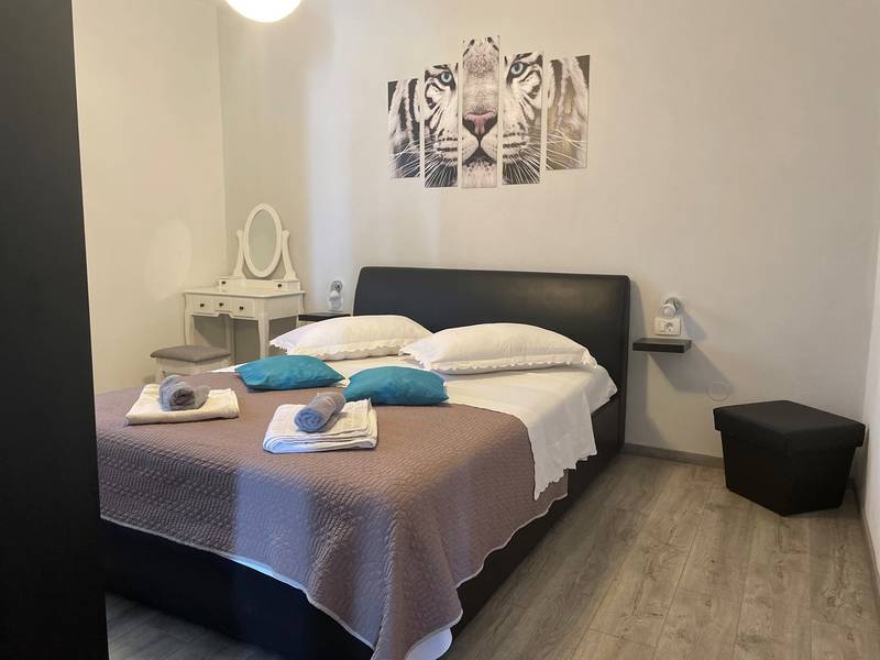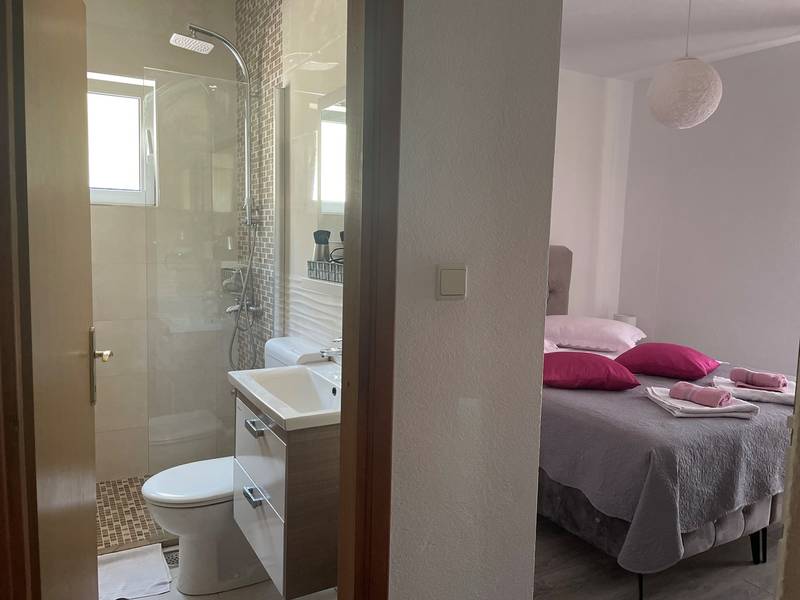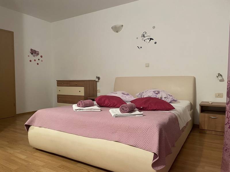 Die Villa Kristina bietet Ihnen alles, was Sie für einen perfekten Urlaub brauchen! Privater Pool mit Blick auf das Meer und die Berge, privater Garten, Satellitenfernsehen, Wi-Fi-Internetzugang, Klimaanlage, Waschmaschine und eine voll ausgestattete Küche. Das Haus hat zwei Etagen und besteht aus 3 elegant eingerichteten Wohneinheiten, die durch eine Innentreppe verbunden sind. Es gibt 6 Schlafzimmer und 4 Bäder mit Dusche und ein Bad mit Badewanne. Fünf Schlafzimmer haben Doppelbetten und ein Schlafzimmer hat ein Einzelbett. Draußen gibt es einen Grill, eine Sitzecke und einen Swimmingpool mit Sonnenliegen. Es gibt einen Parkplatz für mehrere Autos. Das Haus befindet sich in einer ruhigen Gegend, etwa 1,5 km vom Stadtzentrum entfernt. Es ist 1,2 km vom Strand und 600 m vom nächsten Lebensmittelgeschäft entfernt. Sie haben einen herrlichen Blick auf die Stadt Makarska, die Adria und die Inseln im Süden und den Berg Biokovo im Norden. Genießen Sie Ihren Urlaub in Dalmatien und entspannen Sie sich in der schönen Umgebung. Bei der Ankunft ist eine Kaution in bar zu hinterlegen (400,00 EUR). Diesen Betrag erhalten Sie bei der Abreise zurück, sofern alles in Ordnung war (keine Schäden). Objekt-ID: ctma133