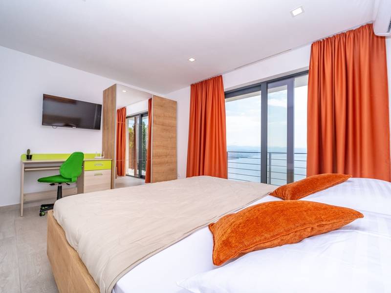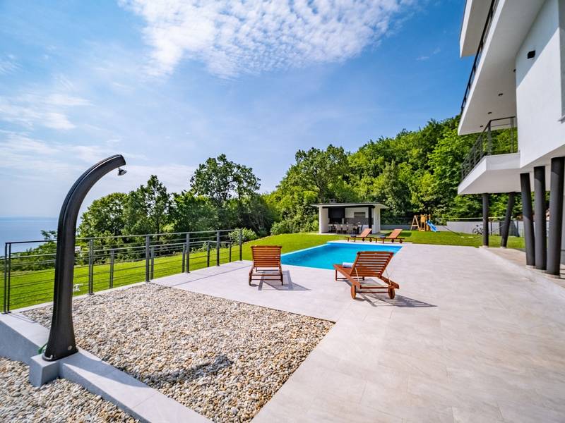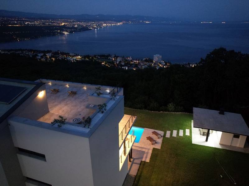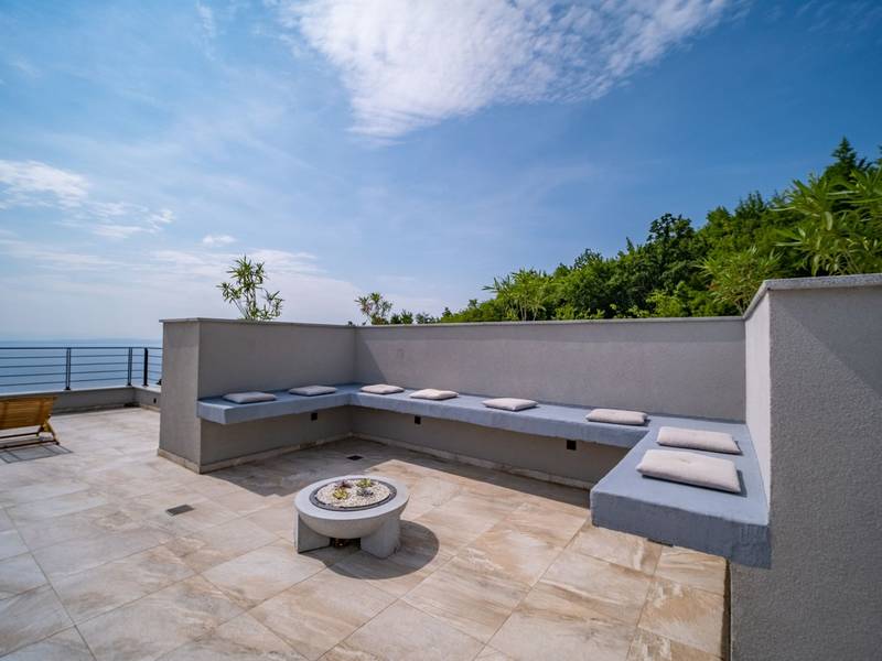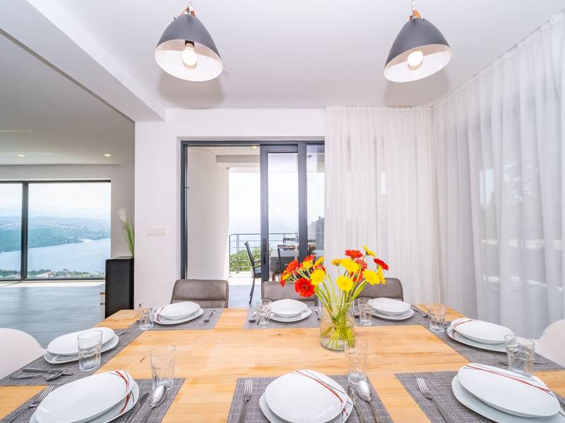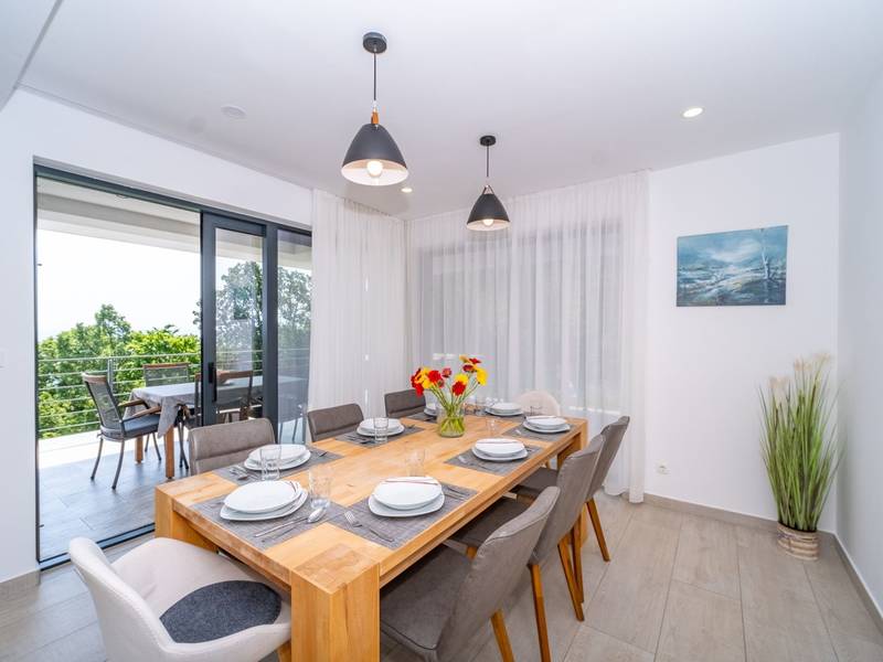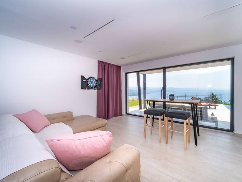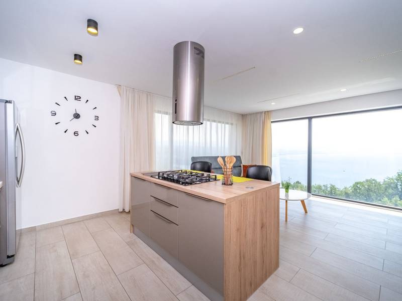 Die Villa Deavista bietet eine ruhige Lage, eine malerische Umgebung und einen atemberaubenden Meerblick, was sie zu einem idealen Urlaubsdomizil für Entspannung macht. Die Villa befindet sich auf einem großen Grundstück und verfügt über einen privaten Pool mit Panoramablick auf die Kvarner-Bucht. Im Außenbereich befinden sich eine Küche mit Grill und ein Esstisch, ideal für Sommerabende mit Familie und Freunden unter dem Sternenhimmel. Die spektakuläre Dachterrasse bietet den idealen Ort, um die Sonne und den herrlichen Blick auf das Meer zu genießen. Diese Villa ist für Familien geeignet, sie verfügt über einen Kinderspielplatz, der Spaß für die Kleinen garantiert, während die Erwachsenen auf dem vor Ort vorhandenen Platz Badminton und Tennis spielen können. Die Villa erstreckt sich über drei Etagen. Im ersten Stock befinden sich ein Schlafzimmer mit eigenem Bad und ein Wohnzimmer. Im zweiten Stock befinden sich ein geräumiges Wohnzimmer, das auf eine Terrasse mit beeindruckender Aussicht führt, ein Esszimmer, eine voll ausgestattete Küche und eine separate Toilette. Außerdem gibt es im zweiten Stock drei moderne Schlafzimmer, jedes mit einem eigenen, elegant eingerichteten Badezimmer. Von der großen Terrasse aus können die Gäste beim Morgenkaffee den atemberaubenden Blick auf das Meer genießen. Die Villa Deavista liegt in der Nähe der charmanten Stadt Opatija, umgeben von unberührter Natur und mit einem atemberaubenden Blick auf die Kvarner-Bucht. Der nächste Strand ist nur 500 Meter entfernt, und die Umgebung bietet alles, was man für einen erholsamen Urlaub braucht. Jugendgruppen werden nur nach vorheriger Absprache akzeptiert. Eine Jugendgruppe ist eine Gruppe von Personen bis 26 Jahre. Wenn Sie eine Jugendgruppe sind, setzen Sie sich bitte mit uns in Verbindung, bevor Sie Ihre Reservierung vornehmen, da die Reservierung nach der Buchung, d. h. bei der Ankunft oder während des Aufenthalts, abgelehnt werden kann und Sie möglicherweise keine Rückerstattung erhalten.