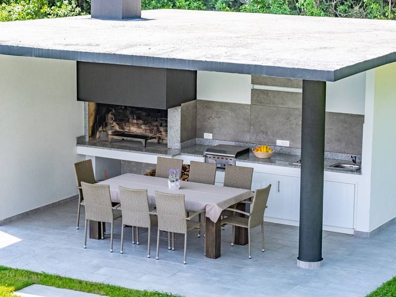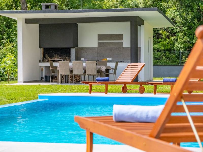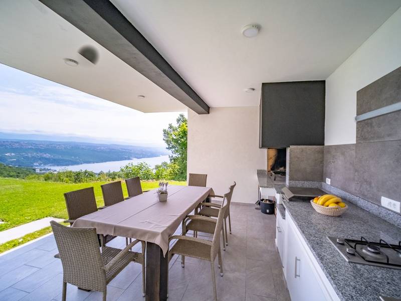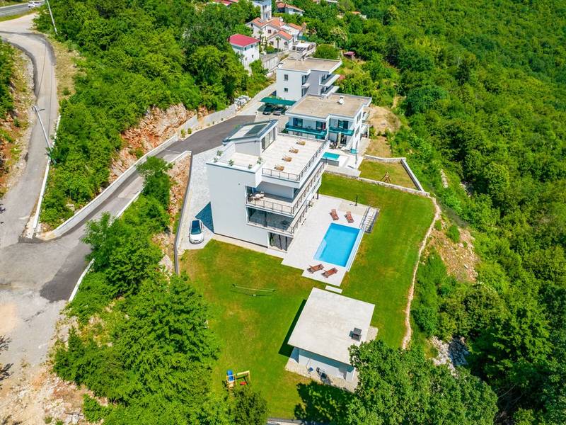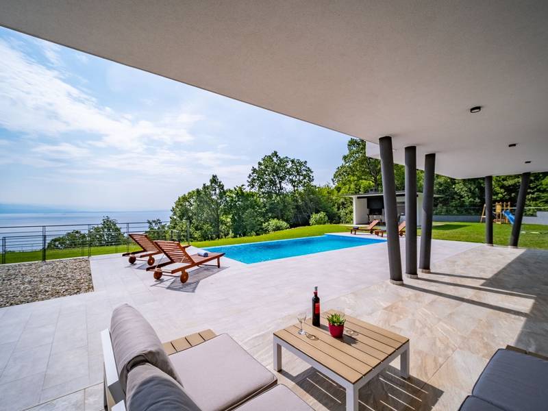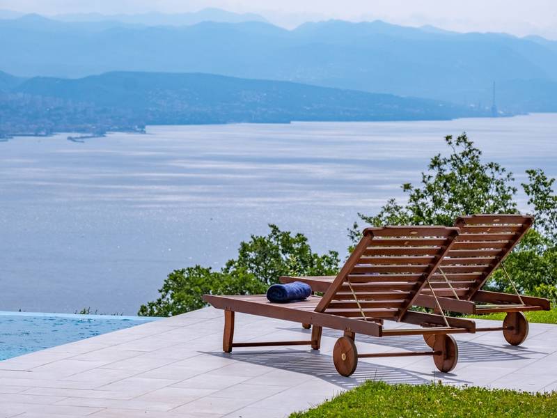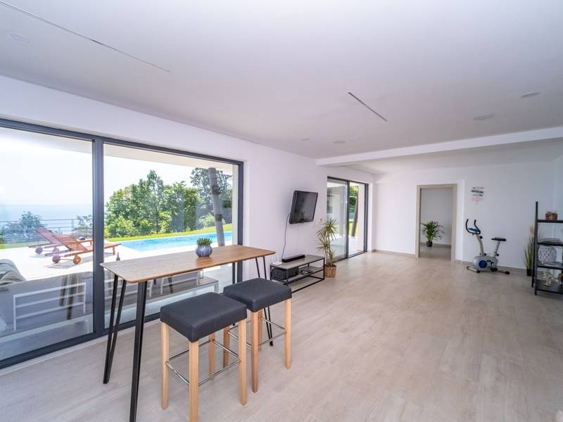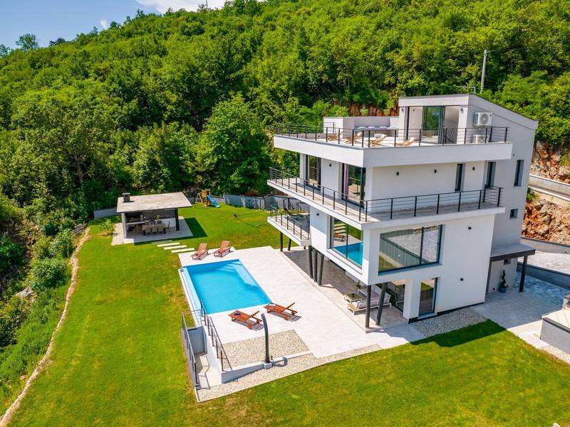 Die Villa Deavista bietet eine ruhige Lage, eine malerische Umgebung und einen atemberaubenden Meerblick, was sie zu einem idealen Urlaubsdomizil für Entspannung macht. Die Villa befindet sich auf einem großen Grundstück und verfügt über einen privaten Pool mit Panoramablick auf die Kvarner-Bucht. Im Außenbereich befinden sich eine Küche mit Grill und ein Esstisch, ideal für Sommerabende mit Familie und Freunden unter dem Sternenhimmel. Die spektakuläre Dachterrasse bietet den idealen Ort, um die Sonne und den herrlichen Blick auf das Meer zu genießen. Diese Villa ist für Familien geeignet, sie verfügt über einen Kinderspielplatz, der Spaß für die Kleinen garantiert, während die Erwachsenen auf dem vor Ort vorhandenen Platz Badminton und Tennis spielen können. Die Villa erstreckt sich über drei Etagen. Im ersten Stock befinden sich ein Schlafzimmer mit eigenem Bad und ein Wohnzimmer. Im zweiten Stock befinden sich ein geräumiges Wohnzimmer, das auf eine Terrasse mit beeindruckender Aussicht führt, ein Esszimmer, eine voll ausgestattete Küche und eine separate Toilette. Außerdem gibt es im zweiten Stock drei moderne Schlafzimmer, jedes mit einem eigenen, elegant eingerichteten Badezimmer. Von der großen Terrasse aus können die Gäste beim Morgenkaffee den atemberaubenden Blick auf das Meer genießen. Die Villa Deavista liegt in der Nähe der charmanten Stadt Opatija, umgeben von unberührter Natur und mit einem atemberaubenden Blick auf die Kvarner-Bucht. Der nächste Strand ist nur 500 Meter entfernt, und die Umgebung bietet alles, was man für einen erholsamen Urlaub braucht. Jugendgruppen werden nur nach vorheriger Absprache akzeptiert. Eine Jugendgruppe ist eine Gruppe von Personen bis 26 Jahre. Wenn Sie eine Jugendgruppe sind, setzen Sie sich bitte mit uns in Verbindung, bevor Sie Ihre Reservierung vornehmen, da die Reservierung nach der Buchung, d. h. bei der Ankunft oder während des Aufenthalts, abgelehnt werden kann und Sie möglicherweise keine Rückerstattung erhalten.