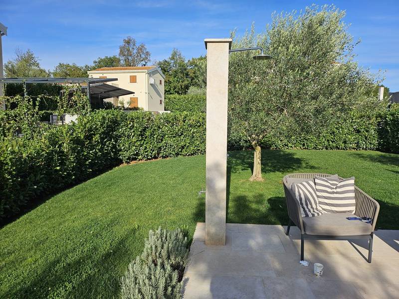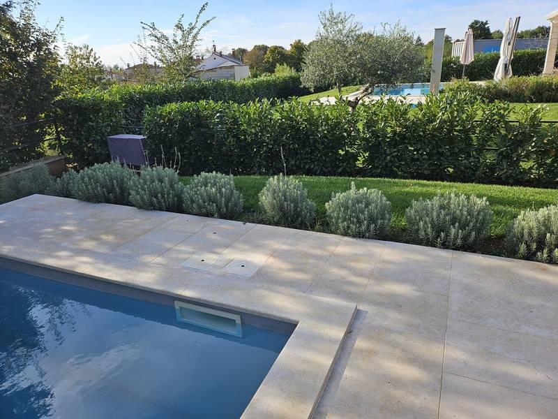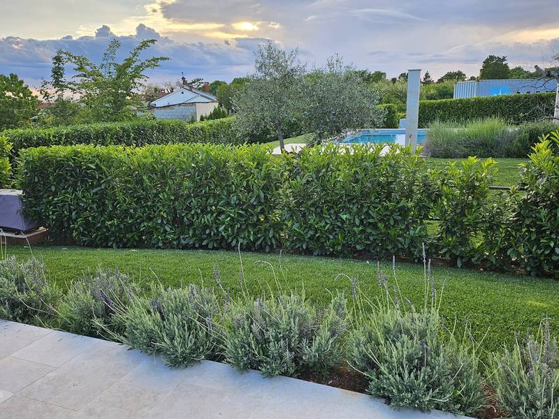 Die Villa Alloro Muntrilj ist für 6 Personen geeignet und besteht aus zwei Etagen. Im Erdgeschoss befindet sich ein Wohnzimmer mit einer Sitzecke und Satellitenfernsehen, eine Küche mit allen Geräten und einem Esstisch. Außerdem gibt es ein Schlafzimmer mit eigenem Bad und eine separate Toilette mit Waschmaschine. Vom Wohnzimmer aus gelangt man auf eine große Terrasse mit Sitzmöbeln und einem Esstisch. Der 32 m2 große Swimmingpool hat eine große, geräumige Liegewiese mit Liegen und Sonnenschirmen. Im ersten Stock befinden sich zwei Schlafzimmer, ebenfalls mit eigenem Bad, Satellitenfernsehen und Klimaanlage. Ein Zimmer hat Zugang zu einer Terrasse mit Sitzgelegenheit. Die Villa ist vollständig von Grün umgeben, so dass Sie Privatsphäre und einen Blick auf Olivenbäume und mediterrane Pflanzen genießen können. Vom Pool aus hat man einen schönen Blick auf die unberührte Natur Istriens. In dieser Villa werden Sie sich wirklich in Ruhe erholen, die Terrasse mit einem Glas Wein genießen, sich am Pool mit Ihrem Lieblingsbuch sonnen oder einfach mit Familie und Freunden abhängen. Jedes Zimmer ist klimatisiert und mit einem Wi-Fi-Signal ausgestattet. Ein privater Parkplatz befindet sich vor dem Haus. Gruppen von jungen Leuten sind nicht erlaubt.