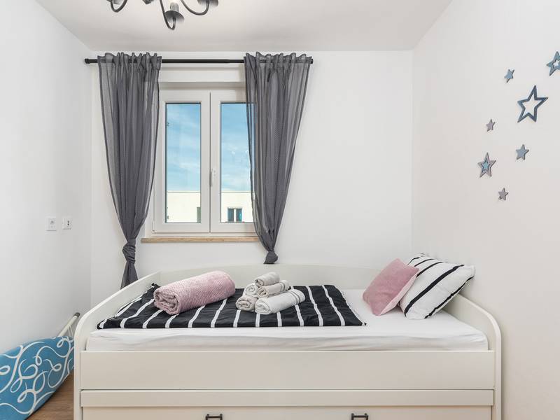 Das Ferienhaus Businia befindet sich in Novigrad, Istrien. Dieses schön eingerichtete, 93 qm große Ferienhaus erstreckt sich über 2 Etagen und kann bis zu 6 Personen beherbergen. Es besteht aus drei Schlafzimmern (2 mit Doppelbetten und eines mit einem Einzelbett und einem Zusatzbett), zwei Badezimmern mit Duschen, einer voll ausgestatteten Küche (Geschirrspüler, Mikrowelle) mit Essecke und einem Wohnzimmer mit einem Flachbildfernseher mit Satellitenempfang. Die klimatisierte Unterkunft ist 2,9 km vom nächstgelegenen Strand (Sirena Beach) entfernt, und die Gäste profitieren von kostenlosem WLAN und Privatparkplätzen vor Ort. Es gibt auch einen Ausgang zu einem möblierten Balkon im ersten Stock und eine Terrasse mit einem Essbereich im Freien im privaten Garten. Die Gäste können auch den privaten Whirlpool nutzen. Ein Haustier ist gegen einen Aufpreis erlaubt. Die Altstadt von Novigrad liegt 4,2 km von der Unterkunft entfernt. Der nächstgelegene Flughafen ist der 72 km von der Unterkunft entfernte Flughafen Pula. Willkommen im Holiday House Businia, und genießen Sie all die wunderbaren Dinge, die Novigrad und die Umgebung zu bieten haben!