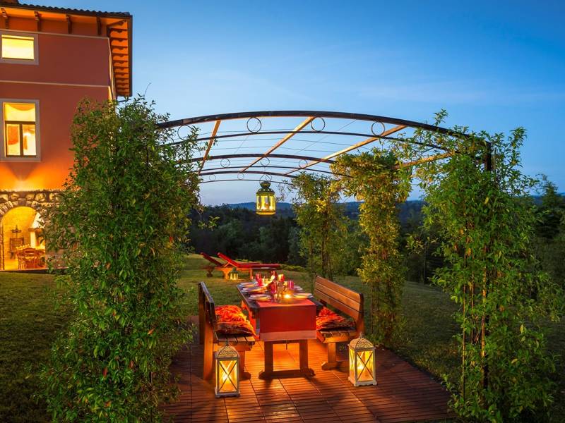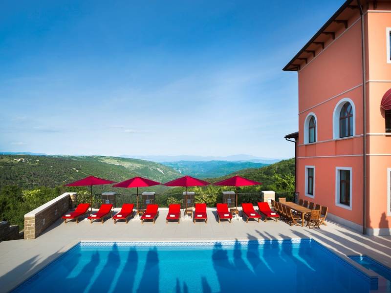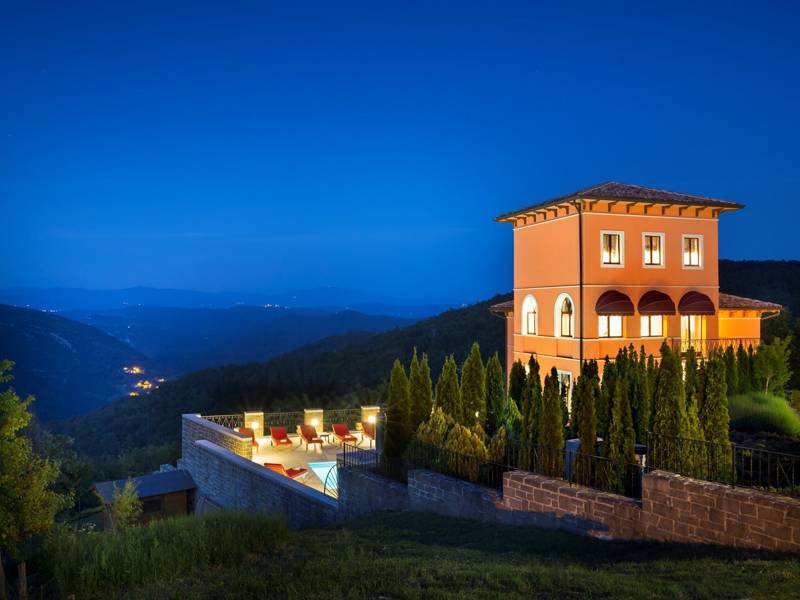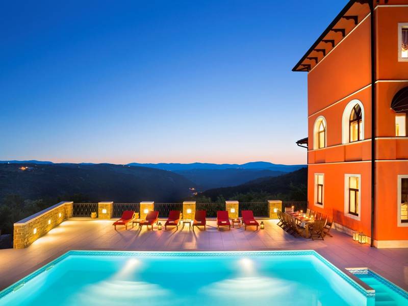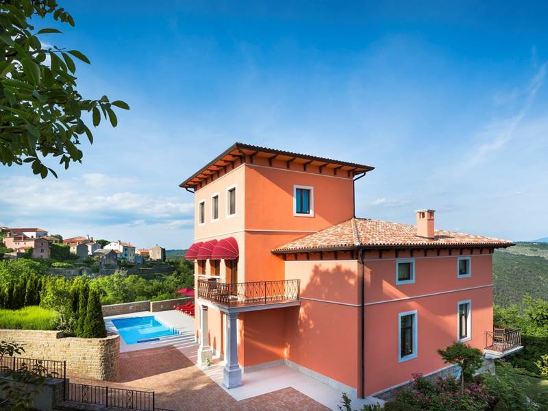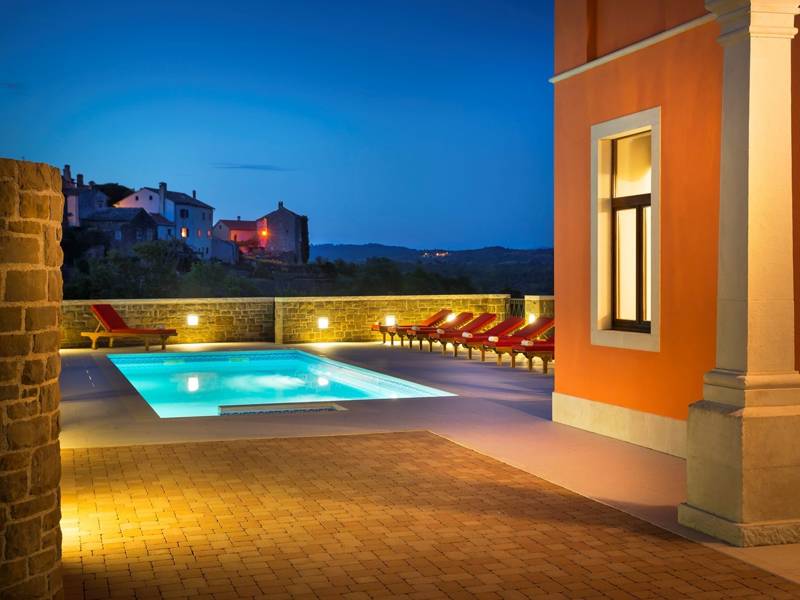 In der malerischen Stadt Oprtalj gelegen, ist die Villa Palazzo Angelica eine ideale Wahl für Gäste, die eine Mischung aus authentischer istrischer Atmosphäre, Komfort und absoluter Privatsphäre suchen. Umgeben von viel Grün und auf einem Hügel mit herrlichem Blick auf die istrische Landschaft gelegen, bietet diese elegante Villa die perfekte Balance zwischen traditionellem Charme und modernen Annehmlichkeiten. Das geräumige Innere verfügt über eine voll ausgestattete Küche, einen Essbereich und ein komfortables Wohnzimmer, die einen angenehmen und funktionalen Raum für größere Familien oder Freunde schaffen. Das gesamte Anwesen wird von einem Gefühl der Wärme und Raffinesse dominiert, dank der sorgfältig ausgewählten Dekoration. Die Villa bietet ihren Gästen völlige Entspannung am Außenpool und mit Blick auf die Natur, während der Wellnessbereich mit gemeinsamer finnischer Sauna, türkischem Bad und Jacuzzi zusätzlichen Komfort bietet. Wi-Fi, Satellitenfernsehen, Klimaanlage, Heizung und alle grundlegenden Annehmlichkeiten wie Handtücher, Bettwäsche, Haartrockner und Safe sind vorhanden, und ein kostenloser Privatparkplatz ist ebenfalls vorhanden. Das Haus akzeptiert Haustiere gegen eine zusätzliche Gebühr, und dank der voll ausgestatteten Küche können die Gäste Mahlzeiten nach ihren eigenen Wünschen zubereiten oder das reichhaltige gastronomische Angebot der Region erkunden. Die Villa befindet sich in einer ausgezeichneten Lage, um Istrien zu erkunden - egal, ob es Sie in charmante Städte wie Motovun und Grožnjan zieht, in die unberührte Natur oder zum Radfahren entlang der ehemaligen Parenzana-Eisenbahnstrecke. Der Flughafen Pula ist 54 Kilometer entfernt, was eine einfache Anreise und einen sorglosen Start in den Urlaub ermöglicht.