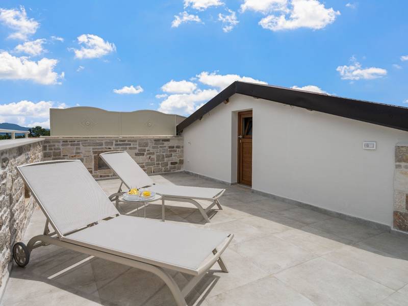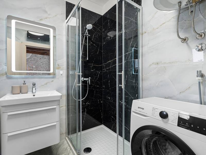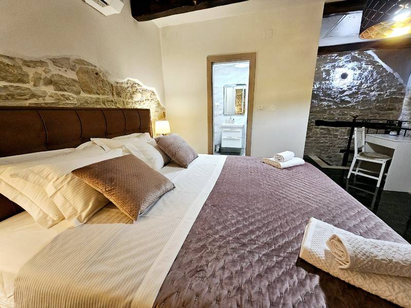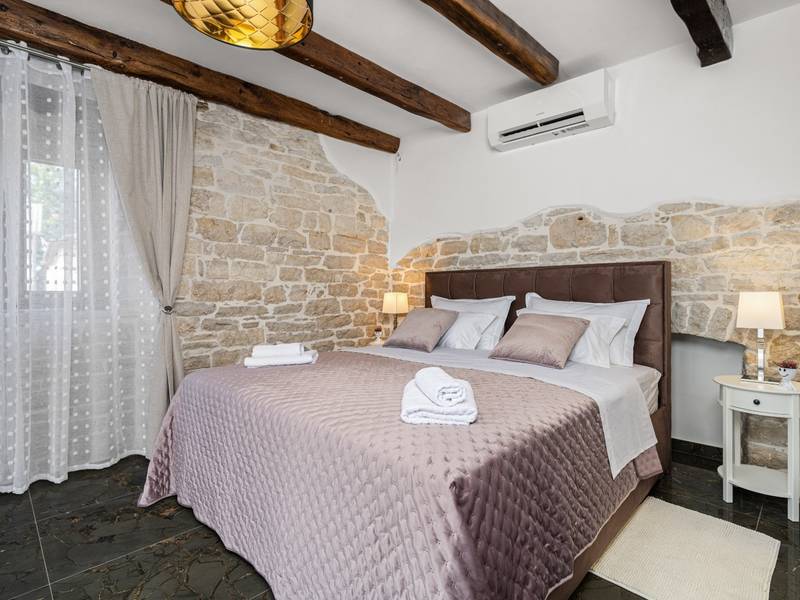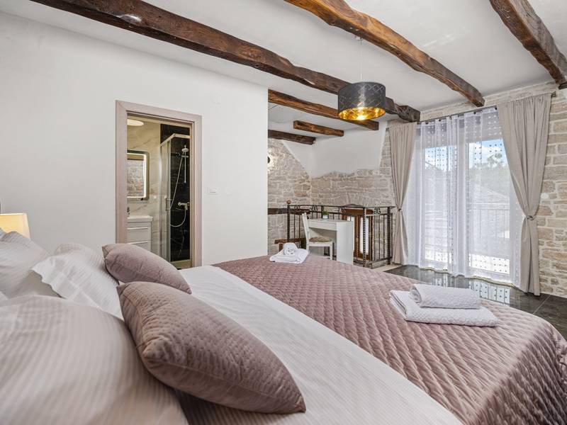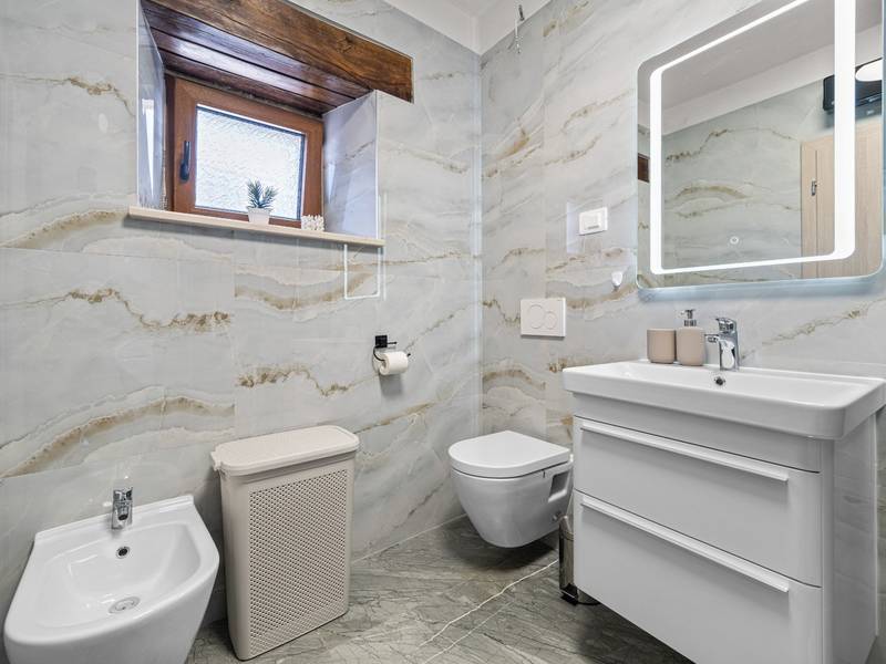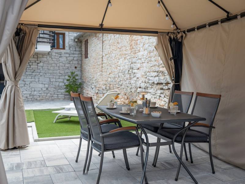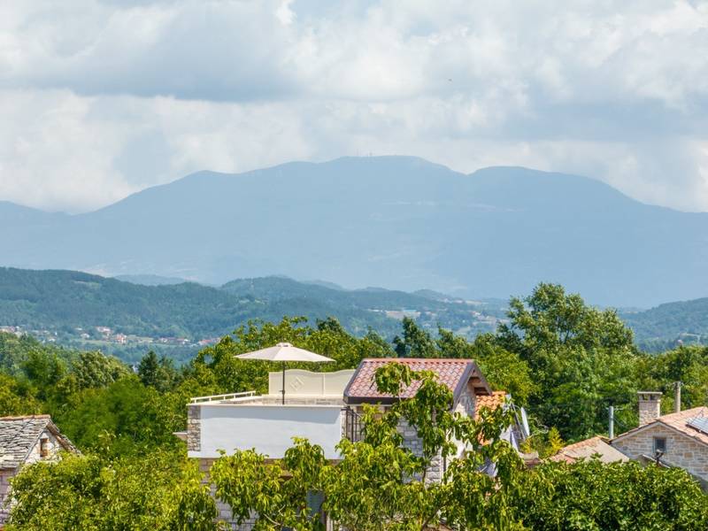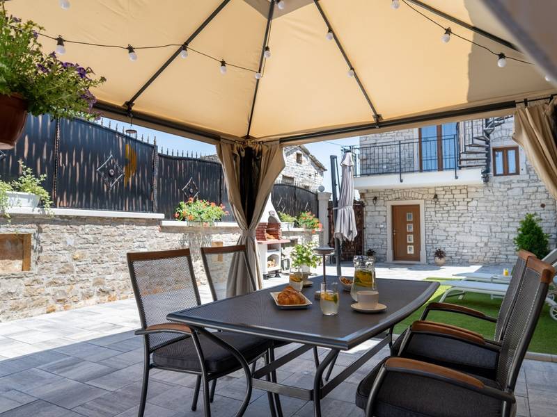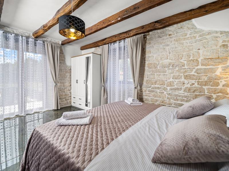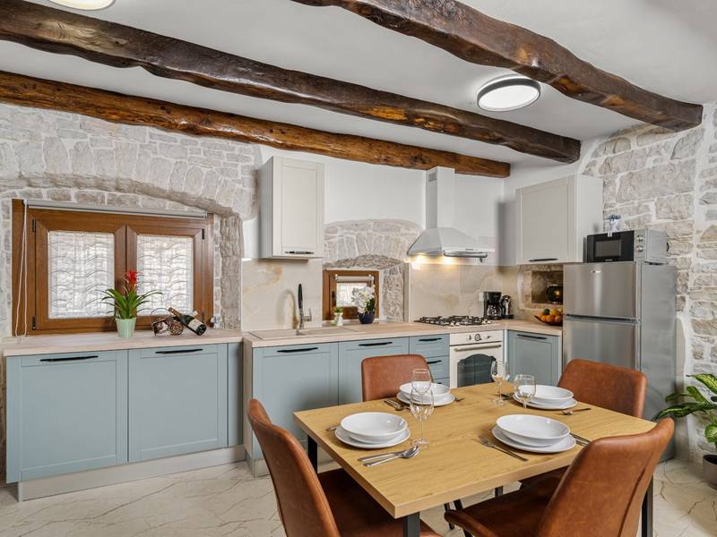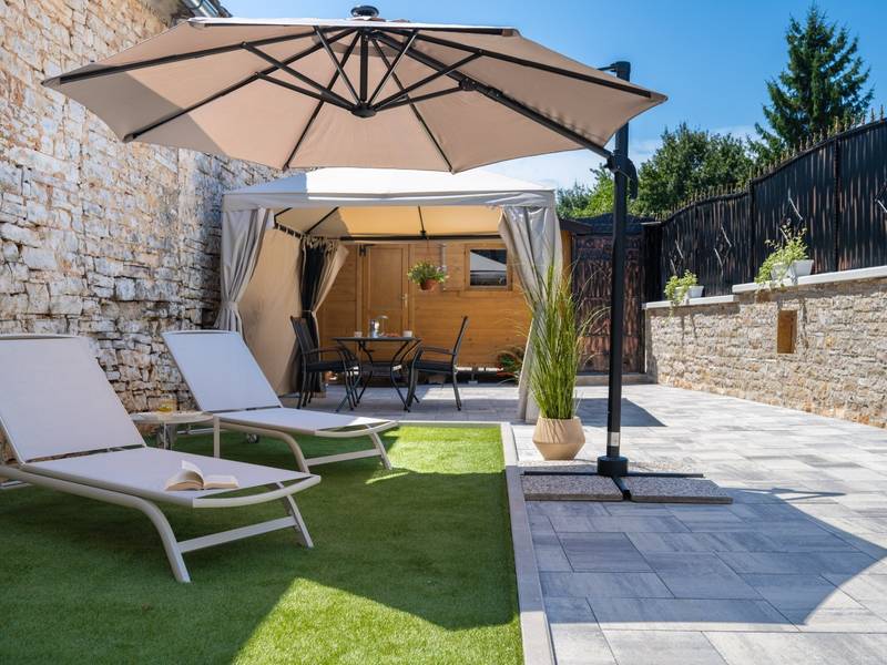 Die Villa Istria Mar erstreckt sich über zwei Etagen und bietet ca. 70 m2 komfortabel gestaltete Wohnfläche, ideal für zwei Gäste, die Ruhe, Privatsphäre und einen entspannten Aufenthalt in Istrien suchen. Im Erdgeschoss befindet sich ein heller Wohnbereich mit einer voll ausgestatteten modernen Küche und einem Essbereich sowie einem separaten Gäste-WC. Das Wohnzimmer öffnet sich direkt auf einen privaten Innenhof - ein perfekter Ort für den Morgenkaffee oder entspannte Abende an der frischen Luft. Dank Highspeed-Wi-Fi ist das Haus auch für Gäste geeignet, die Urlaub und Fernarbeit miteinander verbinden möchten. Im Obergeschoss befindet sich ein elegantes Schlafzimmer mit einem großen Doppelbett und einem eigenen Bad. Der Balkon bietet einen freien Blick auf die umliegende Natur - grüne Hügel, Wälder und weite Felder, die diese friedliche istrische Umgebung prägen. Vom Balkon führt eine Treppe zu einer Dachterrasse mit Liegestühlen, ideal zum Sonnenbaden, Lesen oder für romantische Abende unter dem Sternenhimmel. Ein privater Parkplatz direkt am Haus sorgt für einen sorgenfreien Aufenthalt. Obwohl die Villa in einer ruhigen Gegend liegt, ist sie nur 25 Autominuten von beliebten Zielen wie Poreč, Pula und Rovinj entfernt, wo Sie Strände, Restaurants und kulturelle Sehenswürdigkeiten genießen können. Dieses Anwesen ist nicht für Junggesellen-, Junggesellinnen- oder ähnliche Partys geeignet, um eine ruhige Umgebung für alle Gäste zu gewährleisten. Haustiere sind willkommen - ein Haustier ist erlaubt.