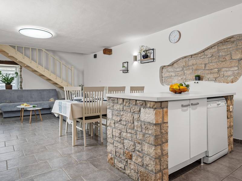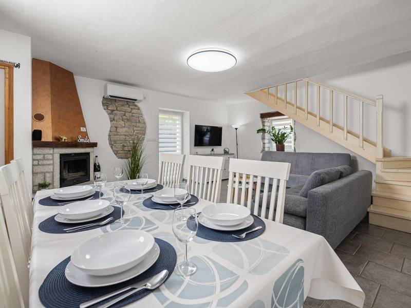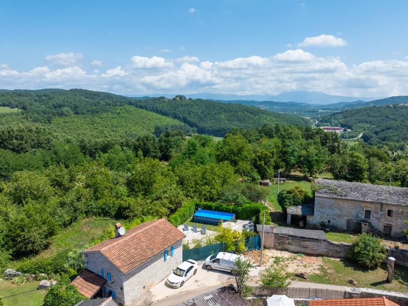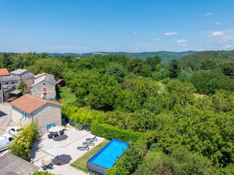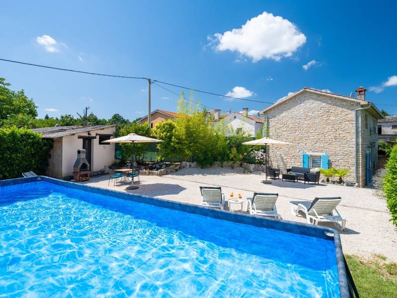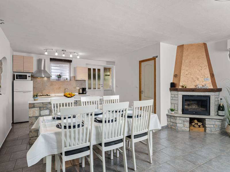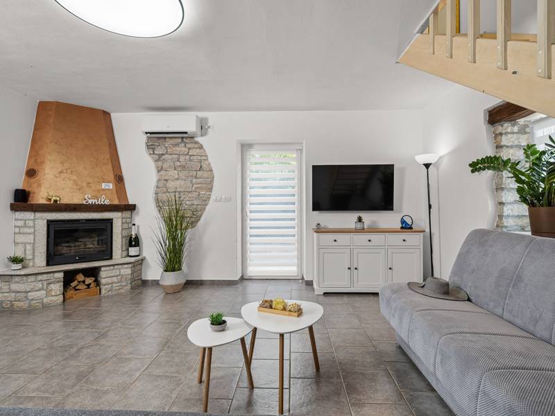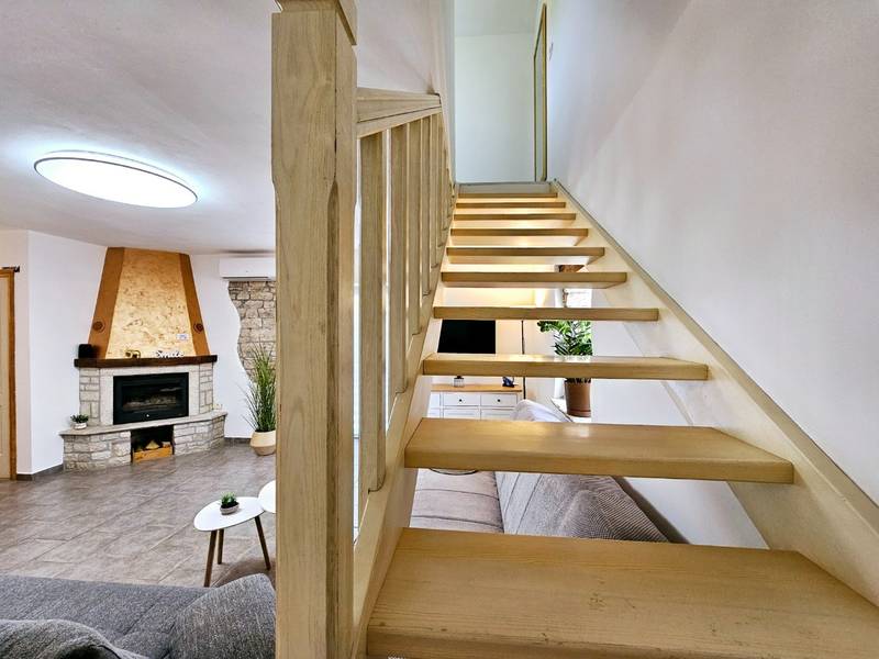 Willkommen in der Villa Istria Pipo, einem authentischen istrischen Steinhaus im malerischen und ruhigen Dorf Pilati bei Pazin. Dieses renovierte Haus mit privatem Pool und atemberaubendem Blick auf den Naturpark Učka ist der perfekte Ort für diejenigen, die Natur, Ruhe und Komfort genießen möchten - weit weg vom Stadtlärm und doch in der Nähe von allem, was Istrien zu bieten hat. Die Villa Istria Pipo erstreckt sich über zwei Etagen und bietet auf 90 m2 eleganten Wohnraum für bis zu sechs Gäste. Die Einrichtung verbindet den traditionellen istrischen Stil mit modernen Akzenten und schafft so eine warme und entspannende Atmosphäre. Im Erdgeschoss finden Sie eine voll ausgestattete Küche, einen Essbereich, ein gemütliches Wohnzimmer mit Kamin und Zugang zum Garten, ein Gäste-WC und eine überdachte, mit Efeu bewachsene Eingangsterrasse - der perfekte Ort für einen Morgenkaffee im Schatten. Im Obergeschoss befinden sich zwei Doppelschlafzimmer und zwei Bäder. Hinter dem Haus erwartet Sie ein großer, eingezäunter Garten, der Ihnen absolute Privatsphäre und eine friedliche Umgebung bietet. Hier finden Sie einen privaten Pool mit sechs bequemen Liegestühlen, einen Essbereich im Freien, einen Grill für lokale Spezialitäten und Plätze zum Entspannen in der Sonne oder im Schatten. Ideal für Familien, Paare, Naturliebhaber und alle, die einen ruhigen Urlaub suchen. Haustiere sind nach vorheriger Absprache willkommen.