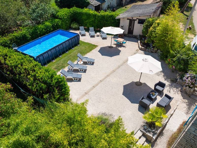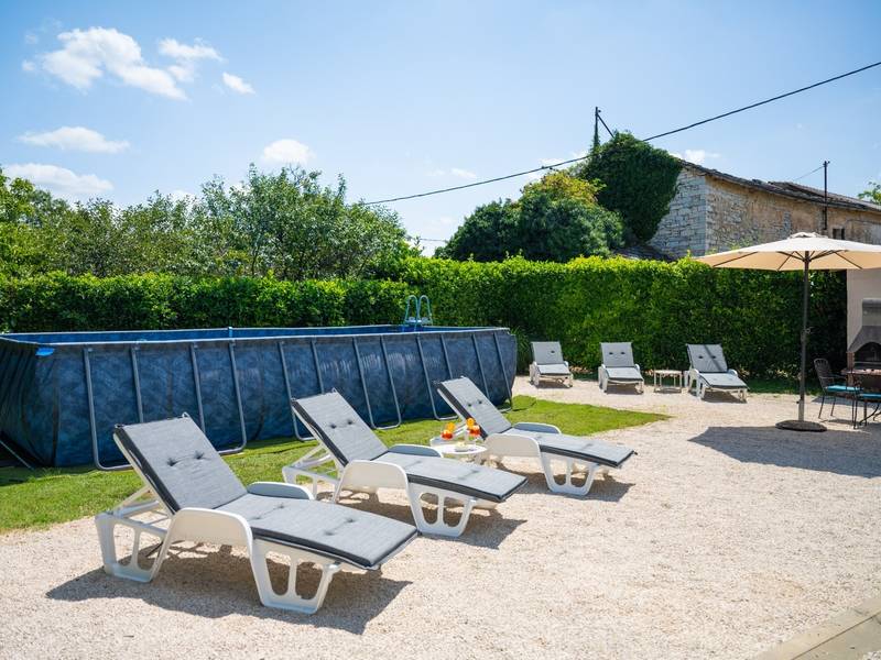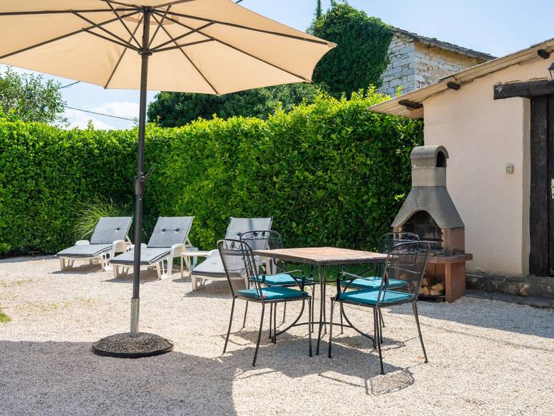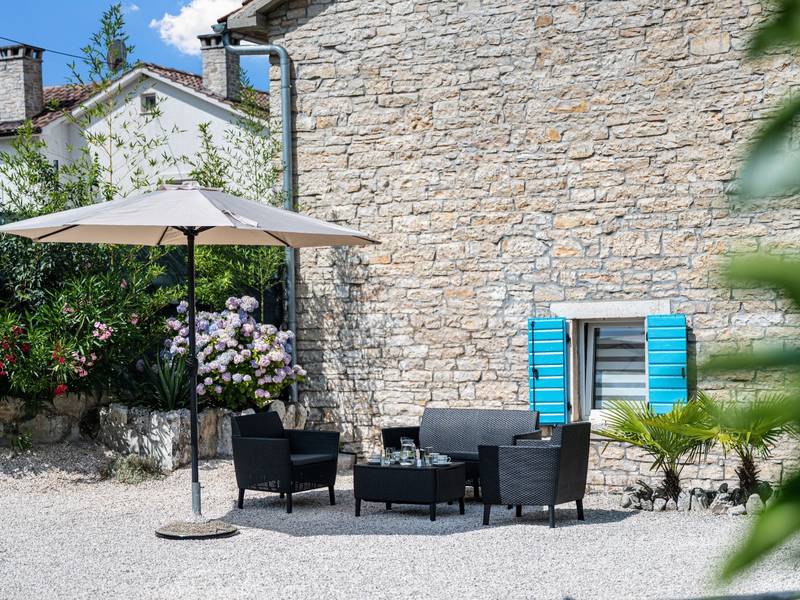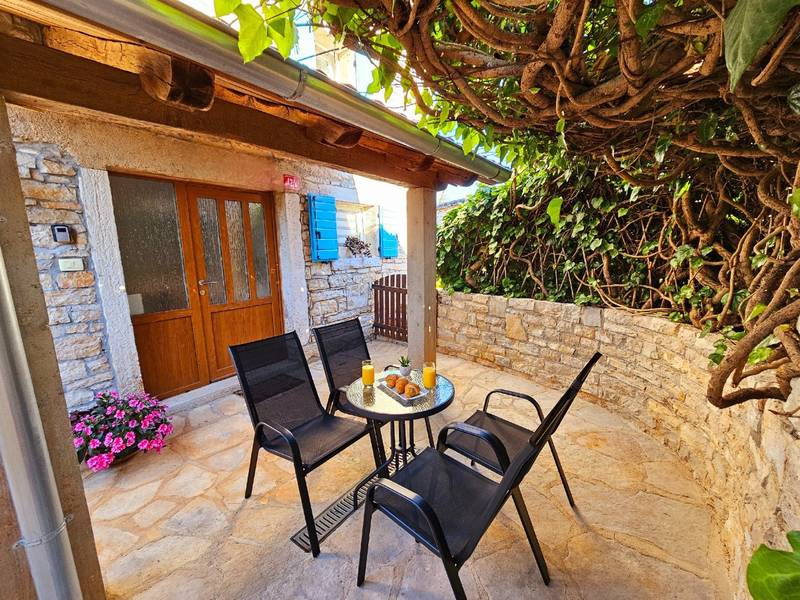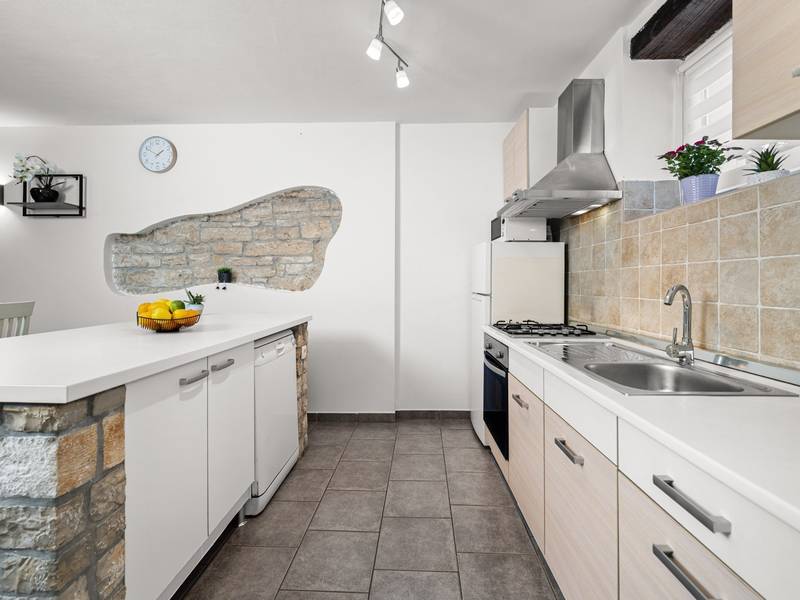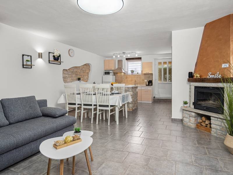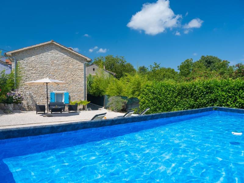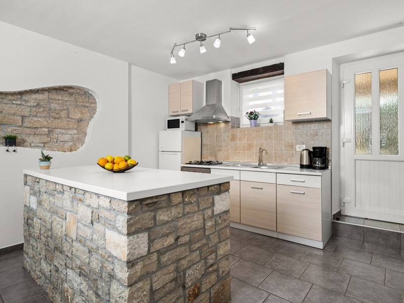 Willkommen in der Villa Istria Pipo, einem authentischen istrischen Steinhaus im malerischen und ruhigen Dorf Pilati bei Pazin. Dieses renovierte Haus mit privatem Pool und atemberaubendem Blick auf den Naturpark Učka ist der perfekte Ort für diejenigen, die Natur, Ruhe und Komfort genießen möchten - weit weg vom Stadtlärm und doch in der Nähe von allem, was Istrien zu bieten hat. Die Villa Istria Pipo erstreckt sich über zwei Etagen und bietet auf 90 m2 eleganten Wohnraum für bis zu sechs Gäste. Die Einrichtung verbindet den traditionellen istrischen Stil mit modernen Akzenten und schafft so eine warme und entspannende Atmosphäre. Im Erdgeschoss finden Sie eine voll ausgestattete Küche, einen Essbereich, ein gemütliches Wohnzimmer mit Kamin und Zugang zum Garten, ein Gäste-WC und eine überdachte, mit Efeu bewachsene Eingangsterrasse - der perfekte Ort für einen Morgenkaffee im Schatten. Im Obergeschoss befinden sich zwei Doppelschlafzimmer und zwei Bäder. Hinter dem Haus erwartet Sie ein großer, eingezäunter Garten, der Ihnen absolute Privatsphäre und eine friedliche Umgebung bietet. Hier finden Sie einen privaten Pool mit sechs bequemen Liegestühlen, einen Essbereich im Freien, einen Grill für lokale Spezialitäten und Plätze zum Entspannen in der Sonne oder im Schatten. Ideal für Familien, Paare, Naturliebhaber und alle, die einen ruhigen Urlaub suchen. Haustiere sind nach vorheriger Absprache willkommen.