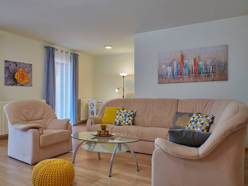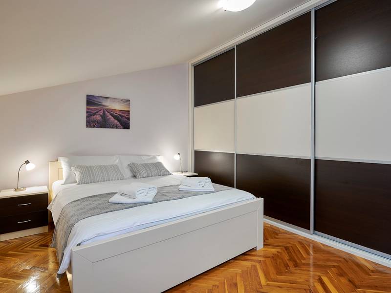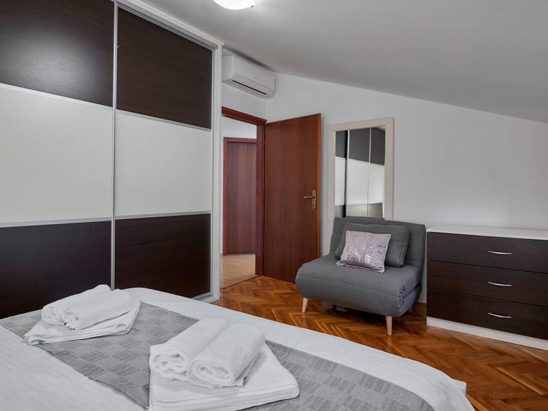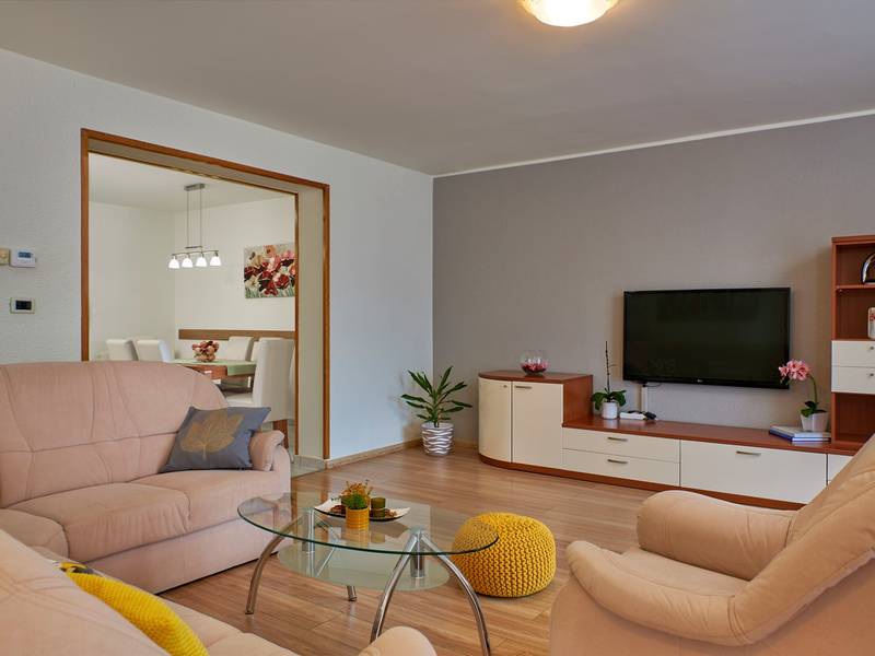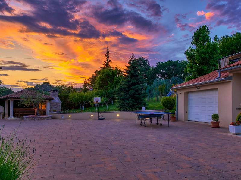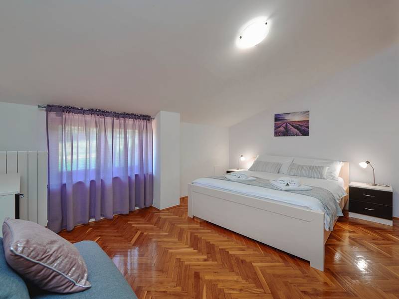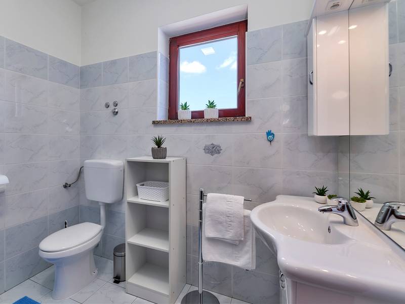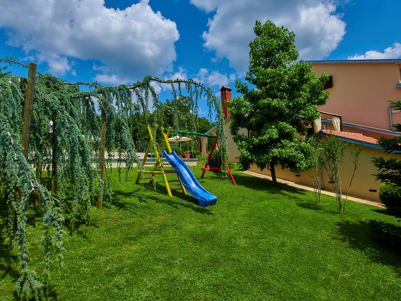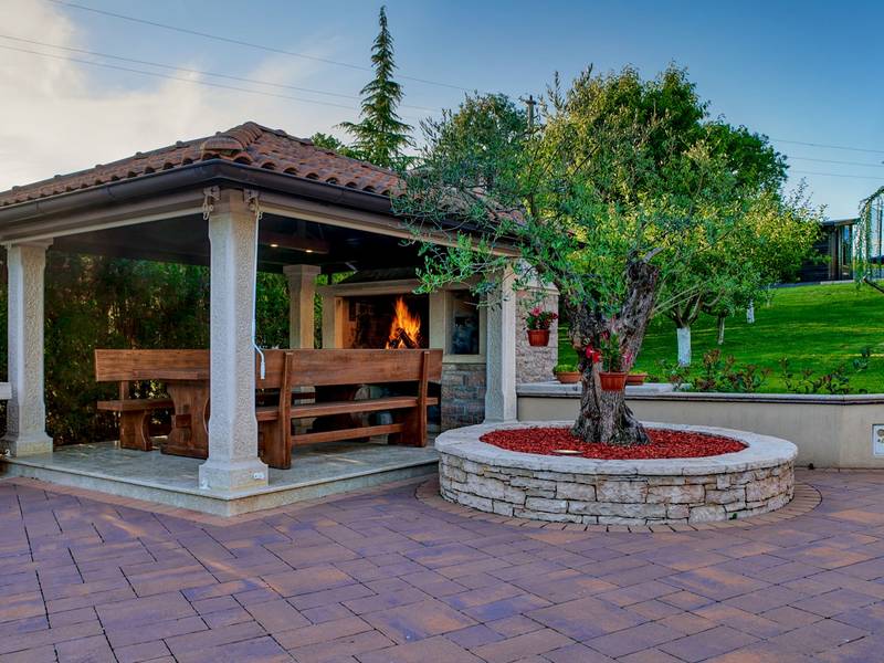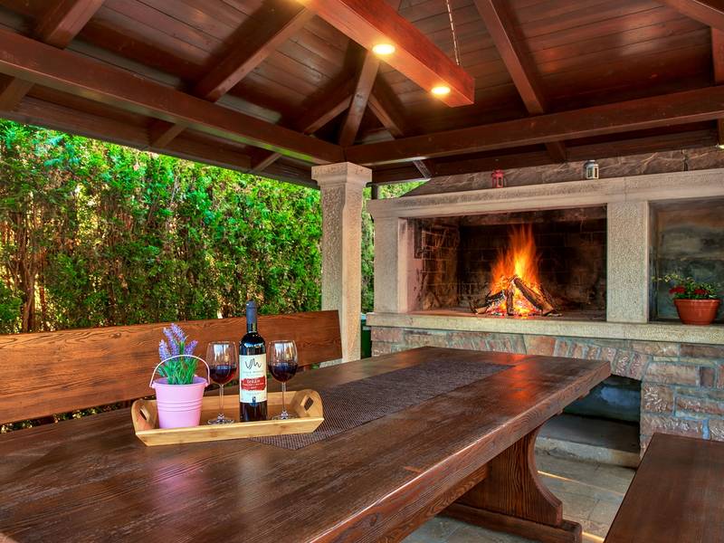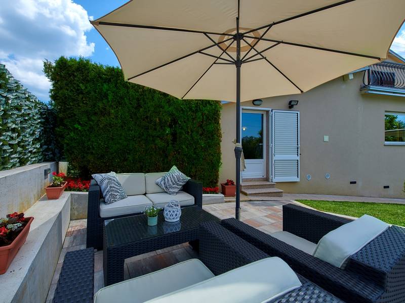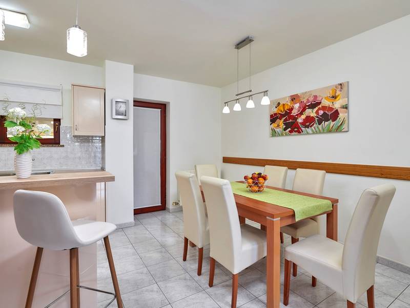 Das Ferienhaus Mikela liegt im Zentrum Istriens, im ruhigen Dorf Žbrlini in der Nähe von Pazin, und bietet Privatsphäre, Komfort und ausgezeichnete Annehmlichkeiten für Familien und Aktivreisende. Der vollständig umzäunte, 1.100 m2 große Garten bietet Sicherheit und Abgeschiedenheit und verfügt über einen privaten 32 m2 großen Außenpool mit Liegestühlen, Sonnenschirmen und hochwertigen Gartenmöbeln. Eine überdachte Terrasse mit einem Außenkamin bietet den perfekten Rahmen für Grillabende und entspannte Abende. Auf dem Grundstück befinden sich zahlreiche Freizeiteinrichtungen wie eine Schaukel, eine Rutsche, ein Basketballkorb, Tischtennis, Tischfußball und Darts. Das Haus erstreckt sich über zwei Etagen. Im Erdgeschoss befinden sich ein Wohnzimmer, eine Küche, ein Badezimmer, eine überdachte Terrasse und eine zusätzliche Küche mit einem großzügigen Aufenthaltsbereich mit direktem Zugang zum Pool. Im Obergeschoss befinden sich drei Schlafzimmer (zwei Doppel- und ein Zweibettzimmer), ein Badezimmer und eine Terrasse mit Blick auf den Pool und die Grünanlagen. Es bietet Platz für bis zu 8 Gäste (6+2). Alle Zimmer sind klimatisiert und mit Moskitonetzen ausgestattet. Im Erdgeschoss befindet sich eine kleine Familiendruckerei, die morgens geöffnet ist, und der überwachte Parkplatz wird während dieser Zeit mitbenutzt. In der Nähe befinden sich Rad- und Wanderwege, Weingüter, landwirtschaftliche Betriebe, Reitmöglichkeiten und die nur 6 km entfernte Erlebnishöhle Pazin.