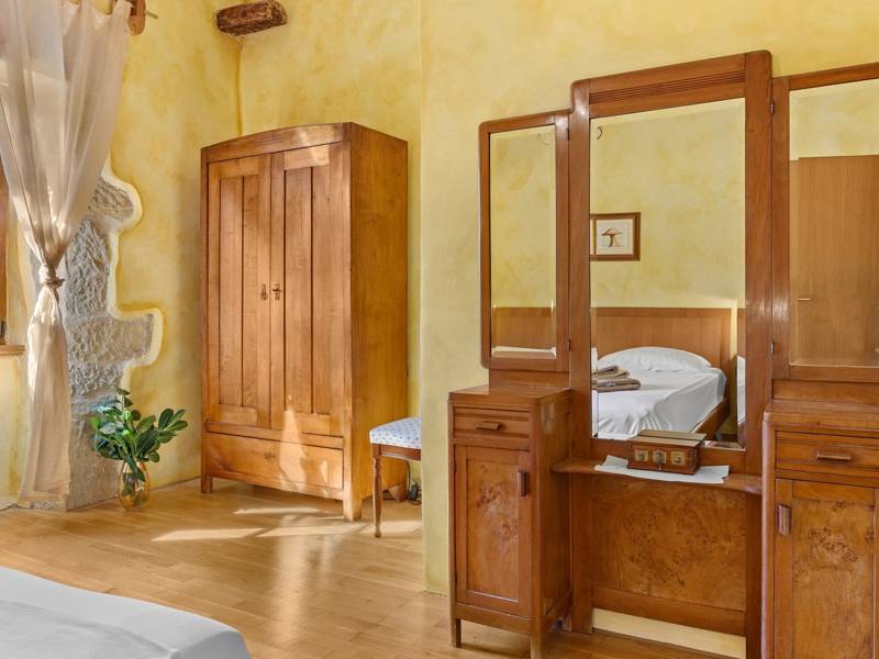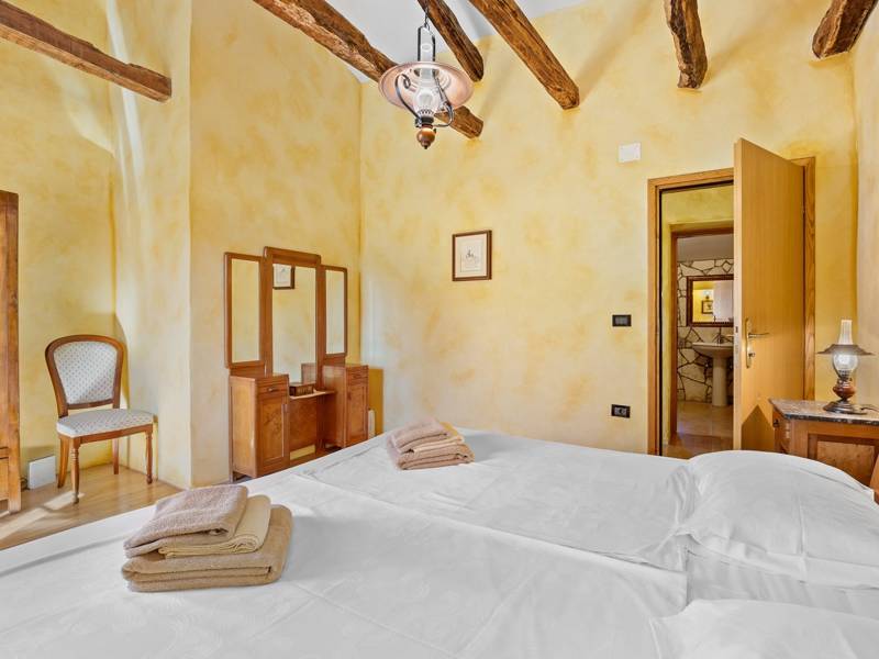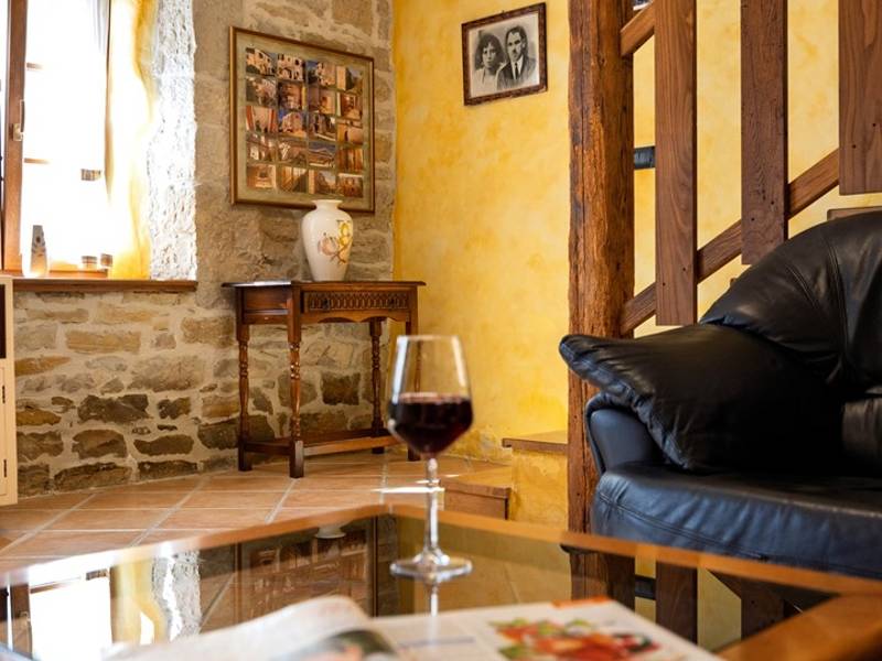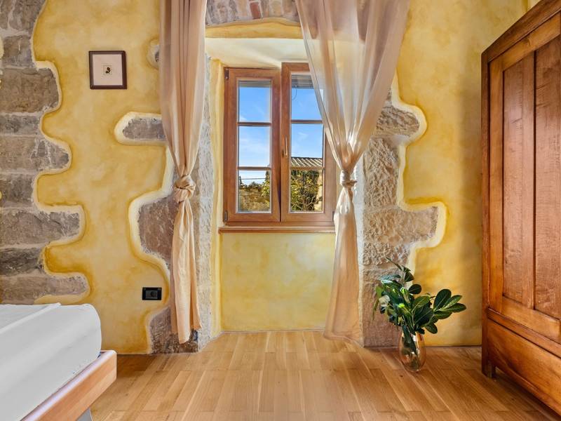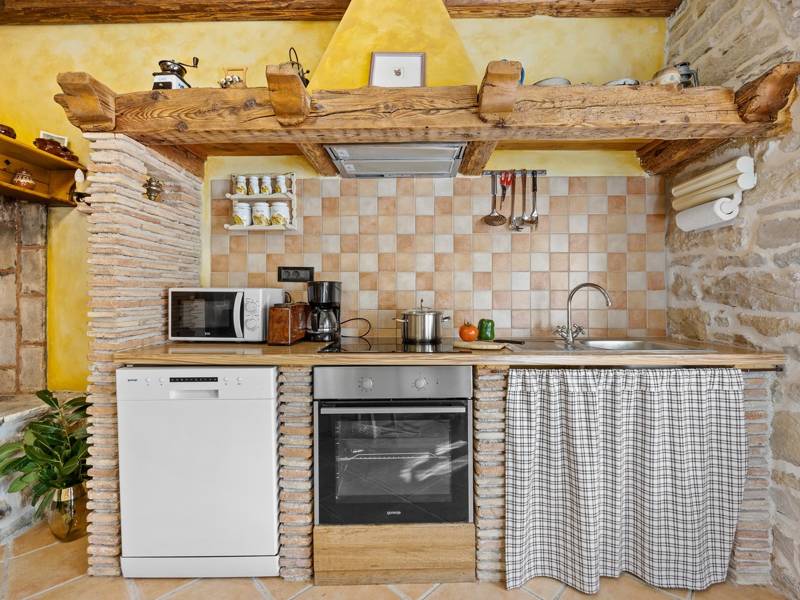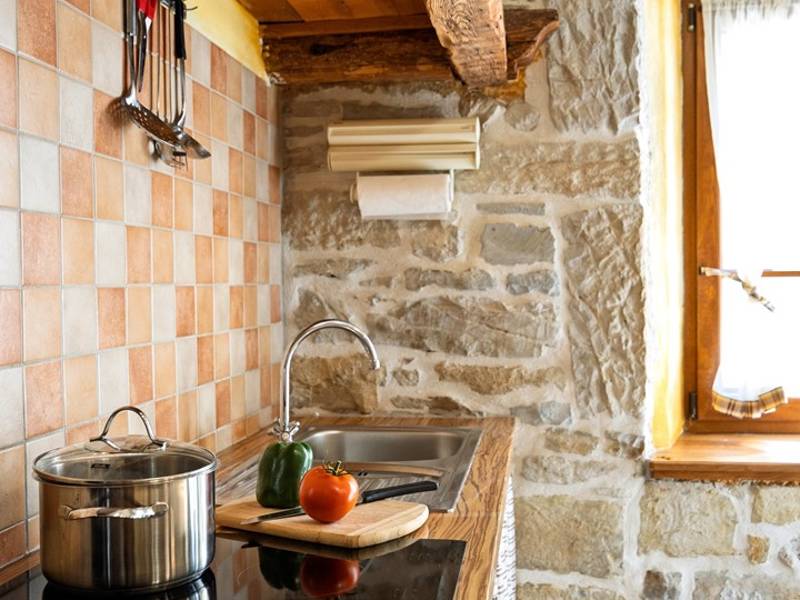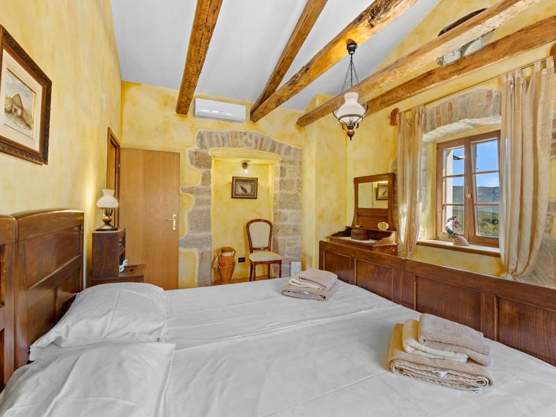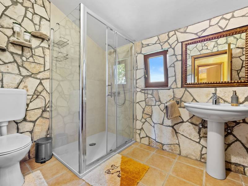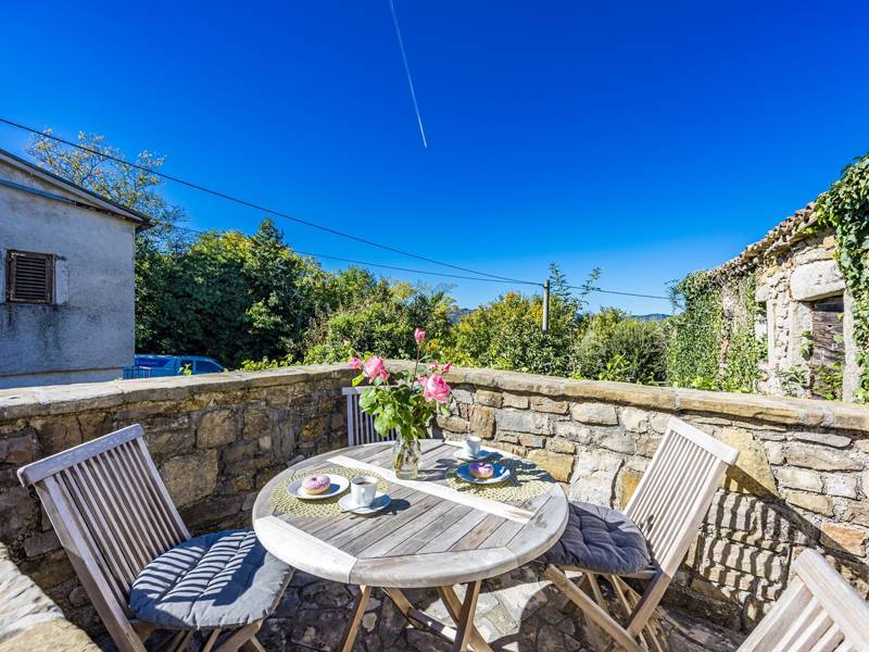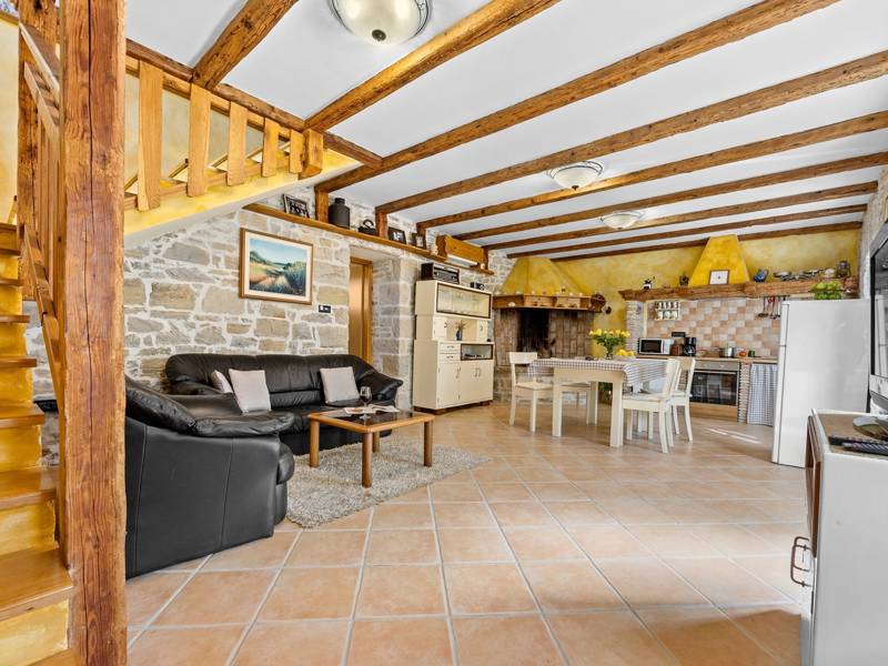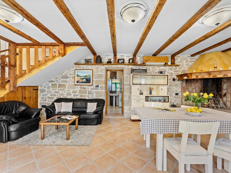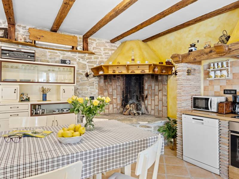 Die charmante Villa Franz Krbune befindet sich im Herzen der istrischen Landschaft und ist nur 15 Autominuten vom nächsten Strand in Luka Plomin entfernt. Sie bietet einen malerischen Ort für ein Familien- oder Freundestreffen oder einen besonderen Anlass und ist mit allen modernen Annehmlichkeiten ausgestattet, die Sie für einen erholsamen Urlaub benötigen. Das renovierte Steinhaus ist eine perfekte Mischung aus istrischem Altstein und Moderne. Die Innenräume der Villa Franz sind einfach, aber gemütlich, mit Holzdecken und Fenstern mit Blick auf den Berg Učka. Freigelegte Holzbalken, moderne Annehmlichkeiten, rustikale Möbelstücke und elegante Leuchten ergänzen die stilvollen Details und die Steinmauern verleihen dem Innenraum eine warme und einladende Ausstrahlung. Die klimatisierte und gut ausgestattete Küche und das moderne Wohnzimmer mit Holzkamin vereinen die alte und die neue Welt. Der Hauptbereich öffnet sich zu einem herrlichen Außenbereich mit einem Pool, der mit Massagedüsen ausgestattet ist. Die beiden Schlafzimmer der Villa Franz Krbune sind mit hellen Farben und lebhaften Mustern eingerichtet. Entspannen Sie sich in den Sitzecken im Freien, bereiten Sie das Abendessen am Kamin zu und genießen Sie es im Freien mit Blick auf die nahen Hügel und Berge.