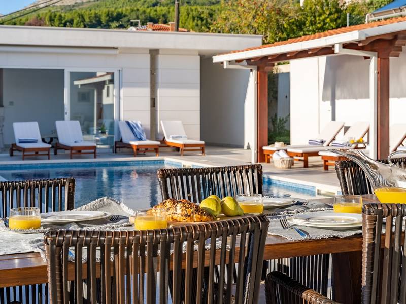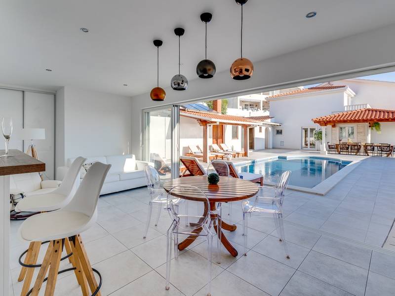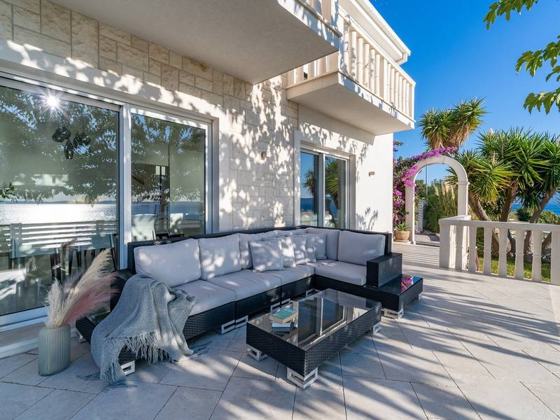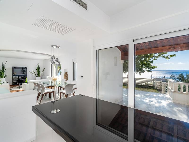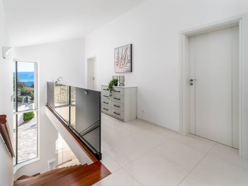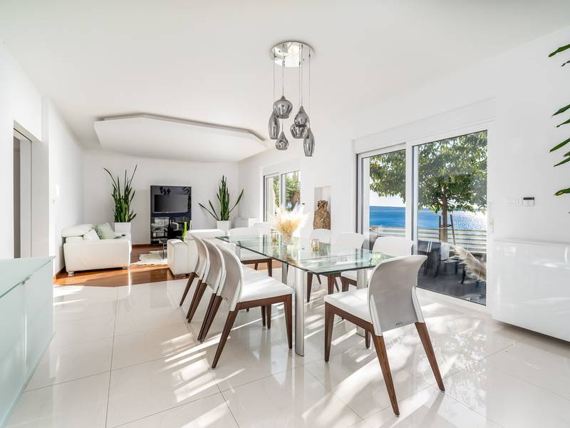 Villa MaToLi ist eine stilvolle und komfortable 250 qm große Immobilie auf einem 850 qm großen, eingezäunten Grundstück und bietet Platz für 8+1 Personen. Villa MaToLi bietet einen privaten und beheizten Pool 10m x 5m, eine Sommerküche, einen Essbereich im Freien, einen voll klimatisierten Innenraum mit kostenlosem WiFi, ein stilvolles Wohnzimmer, eine voll ausgestattete Küche, 4 Schlafzimmer (jedes mit Meerblick und einem Balkon) und 3 Badezimmer.Die Villa MaToLi befindet sich in Podstrana am schönsten Teil der dalmatinischen Küste, oberhalb der Küstenstraße in einer ruhigen Gegend zwischen der berühmten Stadt Split (10 km bis zum Zentrum) und der Kleinstadt Omiš und dem Fluss Cetina (13 km), so dass ein Aufenthalt hier einen atemberaubenden Blick auf das Meer und unvergessliche Sonnenuntergänge, eine sehr komfortable und stilvolle Unterkunft bietet, außerdem können Sie ein breites Spektrum an Möglichkeiten für einen aktiven Urlaub erleben. Mehrere Restaurants und Geschäfte befinden sich in kurzer Entfernung (200m - 2km). Das Auto wird empfohlen, und es gibt einen gesicherten und eingezäunten Parkplatz auf dem Grundstück für 2-3 Autos und eine Garage für 1. Seaview Villa MaToLi bietet: * Der Außenbereich bietet einen privaten und beheizten Swimmingpool 10m x 5m, eine sehr geräumige Sonnenterrasse mit 8 Liegestühlen und zwei überdachte Bereiche, einen überdachten Essbereich im Freien für 10 Personen, eine Sommerküche, einen traditionellen Grillplatz, eine Außendusche und eine separate Toilette. Es gibt auch eine bequeme Lounge-Ecke vor dem Wohnzimmer, so dass es mehrere Bereiche gibt, in denen Sie Ihre Privatsphäre genießen, ein Buch lesen oder einfach nur mit Ihrer Familie/Freunden im Freien speisen können * Das Erdgeschoss bietet einen voll klimatisierten Wohn- und Essbereich mit Glastüren auf der Südseite, die in der Tat einen atemberaubenden Meerblick und viel Tageslicht im Inneren bieten. Es gibt eine voll ausgestattete und moderne Küche mit allen Annehmlichkeiten, die ein moderner Gast für einen erholsamen Aufenthalt braucht, einen direkten Zugang zu einem Essbereich im Freien, einen stilvollen Essbereich, bequeme Sofas, einen Flachbildfernseher und eine PS4 für Ihre jüngsten Mitglieder. Auf der Westseite befindet sich das Schlafzimmer Nr. 1 mit einem 140 x 200 cm großen Doppelbett, einer Klimaanlage, einem Fernseher, einem direkten Zugang zum Poolbereich und einem eigenen Badezimmer mit einer Dusche. Eine Innentreppe mit einer Glaswand bietet Tageslicht in jeder Ecke dieses schönen Hauses und führt Sie in den ersten Stock, wo Sie ein Schlafzimmer Nr. 2 (Süd-Ost) mit einem Queen-Size-Bett 160cm x 200cm, eine Klimaanlage, ein eigenes Bad mit Dusche und einen Balkon mit Meerblick finden. Ein Schlafzimmer Nr. 3 (Süd) mit einem Kingsize-Bett 180cm x 200cm, ein Sofa, das in ein Schlafsofa für 1 Person umgewandelt werden kann, ein Balkon mit Meerblick. Ein Schlafzimmer Nr. 4 (Süd-West) mit einem Queen-Size-Bett 160cm x 200cm, einer Klimaanlage und einem Balkon mit Meerblick. Schlafzimmer Nr. 3 und Nr. 4 teilen sich ein Familienbad mit zwei Waschbecken und einer Dusche. Diese Villa ist die perfekte Wahl für einen Familien- oder Freundesurlaub in Strandnähe, bei dem Sie alles ausprobieren oder einfach nur die entspannende Lebensweise in dieser fantastischen Villa genießen können.Zusätzliche Dienstleistungen (nicht inbegriffen), die von unserer Agentur Feriehome empfohlen werden: - Sie können eine Lebensmittellieferung von Ihrem Sofa aus bestellen, die zum vereinbarten Zeitpunkt in Ihre Villa geliefert wird; - Genießen Sie ein kulinarisches Erlebnis mit einem privaten Koch in der Villa, der alles vorbereiten kann, von einem romantischen Abendessen bis zu einem familienfreundlichen Abendessen; - Sie können eine Massage in der Villa mit unserer professionellen Masseurin haben, die ihre therapeutischen Fähigkeiten zeigen kann; - Erhalten Sie ein Gefühl für die Adria und einige Segelerfahrung mit einem Segelboot (+Skipper); - Machen Sie eine Bootstour, um die mitteldalmatinische Küste und Inseln zu erkunden....für weitere Informationen stehen wir Ihnen gerne zur Verfügung und freuen uns auf Ihre Anfrage, Ihr Feriehome Agenturteam :)