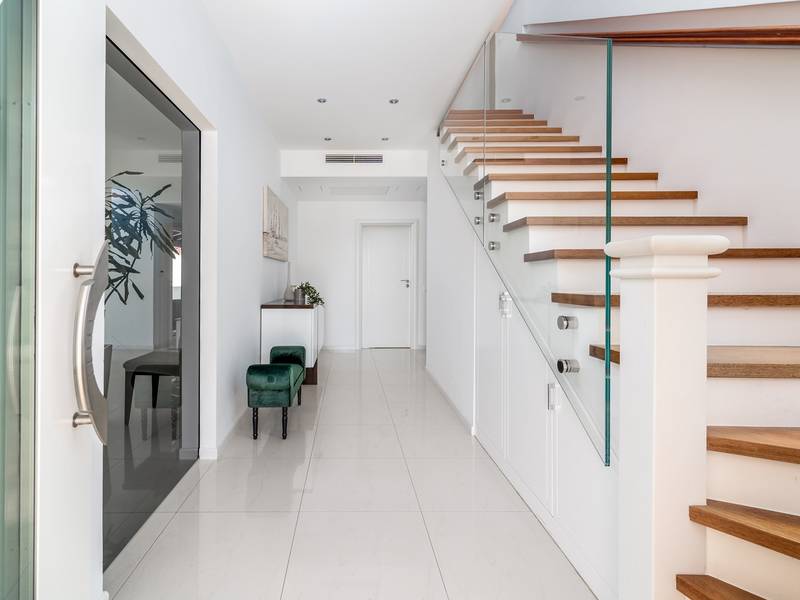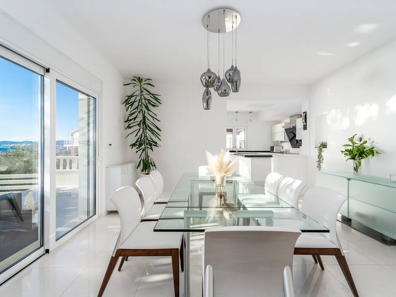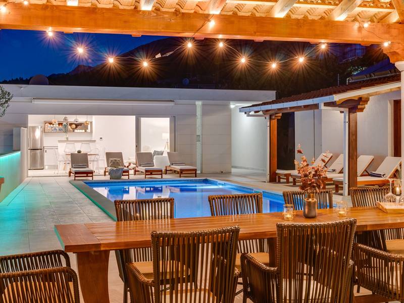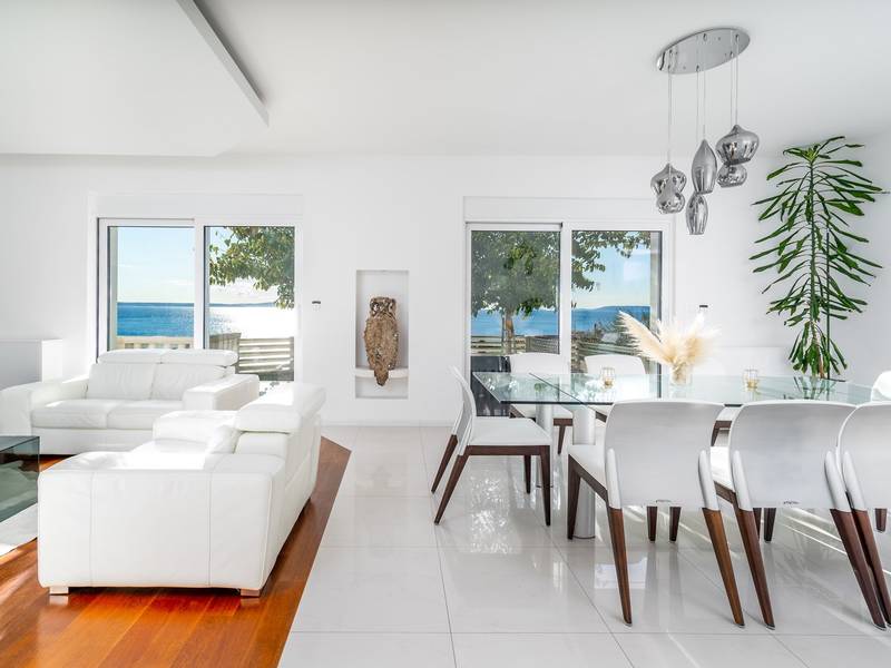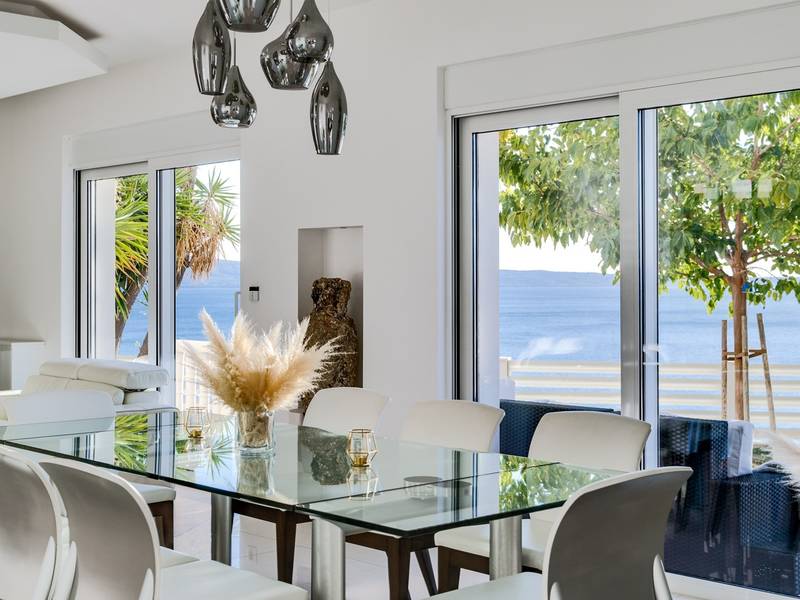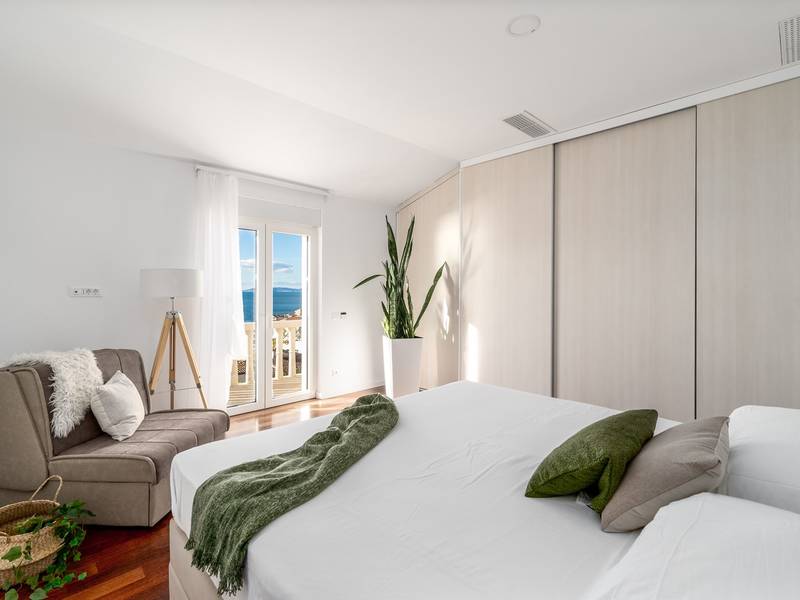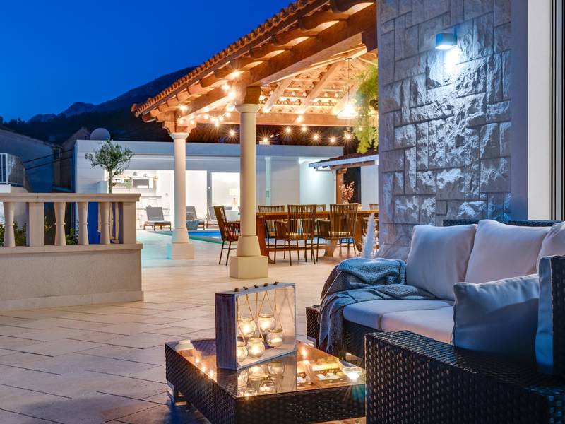 Villa MaToLi ist eine stilvolle und komfortable 250 qm große Immobilie auf einem 850 qm großen, eingezäunten Grundstück und bietet Platz für 8+1 Personen. Villa MaToLi bietet einen privaten und beheizten Pool 10m x 5m, eine Sommerküche, einen Essbereich im Freien, einen voll klimatisierten Innenraum mit kostenlosem WiFi, ein stilvolles Wohnzimmer, eine voll ausgestattete Küche, 4 Schlafzimmer (jedes mit Meerblick und einem Balkon) und 3 Badezimmer.Die Villa MaToLi befindet sich in Podstrana am schönsten Teil der dalmatinischen Küste, oberhalb der Küstenstraße in einer ruhigen Gegend zwischen der berühmten Stadt Split (10 km bis zum Zentrum) und der Kleinstadt Omiš und dem Fluss Cetina (13 km), so dass ein Aufenthalt hier einen atemberaubenden Blick auf das Meer und unvergessliche Sonnenuntergänge, eine sehr komfortable und stilvolle Unterkunft bietet, außerdem können Sie ein breites Spektrum an Möglichkeiten für einen aktiven Urlaub erleben. Mehrere Restaurants und Geschäfte befinden sich in kurzer Entfernung (200m - 2km). Das Auto wird empfohlen, und es gibt einen gesicherten und eingezäunten Parkplatz auf dem Grundstück für 2-3 Autos und eine Garage für 1. Seaview Villa MaToLi bietet: * Der Außenbereich bietet einen privaten und beheizten Swimmingpool 10m x 5m, eine sehr geräumige Sonnenterrasse mit 8 Liegestühlen und zwei überdachte Bereiche, einen überdachten Essbereich im Freien für 10 Personen, eine Sommerküche, einen traditionellen Grillplatz, eine Außendusche und eine separate Toilette. Es gibt auch eine bequeme Lounge-Ecke vor dem Wohnzimmer, so dass es mehrere Bereiche gibt, in denen Sie Ihre Privatsphäre genießen, ein Buch lesen oder einfach nur mit Ihrer Familie/Freunden im Freien speisen können * Das Erdgeschoss bietet einen voll klimatisierten Wohn- und Essbereich mit Glastüren auf der Südseite, die in der Tat einen atemberaubenden Meerblick und viel Tageslicht im Inneren bieten. Es gibt eine voll ausgestattete und moderne Küche mit allen Annehmlichkeiten, die ein moderner Gast für einen erholsamen Aufenthalt braucht, einen direkten Zugang zu einem Essbereich im Freien, einen stilvollen Essbereich, bequeme Sofas, einen Flachbildfernseher und eine PS4 für Ihre jüngsten Mitglieder. Auf der Westseite befindet sich das Schlafzimmer Nr. 1 mit einem 140 x 200 cm großen Doppelbett, einer Klimaanlage, einem Fernseher, einem direkten Zugang zum Poolbereich und einem eigenen Badezimmer mit einer Dusche. Eine Innentreppe mit einer Glaswand bietet Tageslicht in jeder Ecke dieses schönen Hauses und führt Sie in den ersten Stock, wo Sie ein Schlafzimmer Nr. 2 (Süd-Ost) mit einem Queen-Size-Bett 160cm x 200cm, eine Klimaanlage, ein eigenes Bad mit Dusche und einen Balkon mit Meerblick finden. Ein Schlafzimmer Nr. 3 (Süd) mit einem Kingsize-Bett 180cm x 200cm, ein Sofa, das in ein Schlafsofa für 1 Person umgewandelt werden kann, ein Balkon mit Meerblick. Ein Schlafzimmer Nr. 4 (Süd-West) mit einem Queen-Size-Bett 160cm x 200cm, einer Klimaanlage und einem Balkon mit Meerblick. Schlafzimmer Nr. 3 und Nr. 4 teilen sich ein Familienbad mit zwei Waschbecken und einer Dusche. Diese Villa ist die perfekte Wahl für einen Familien- oder Freundesurlaub in Strandnähe, bei dem Sie alles ausprobieren oder einfach nur die entspannende Lebensweise in dieser fantastischen Villa genießen können.Zusätzliche Dienstleistungen (nicht inbegriffen), die von unserer Agentur Feriehome empfohlen werden: - Sie können eine Lebensmittellieferung von Ihrem Sofa aus bestellen, die zum vereinbarten Zeitpunkt in Ihre Villa geliefert wird; - Genießen Sie ein kulinarisches Erlebnis mit einem privaten Koch in der Villa, der alles vorbereiten kann, von einem romantischen Abendessen bis zu einem familienfreundlichen Abendessen; - Sie können eine Massage in der Villa mit unserer professionellen Masseurin haben, die ihre therapeutischen Fähigkeiten zeigen kann; - Erhalten Sie ein Gefühl für die Adria und einige Segelerfahrung mit einem Segelboot (+Skipper); - Machen Sie eine Bootstour, um die mitteldalmatinische Küste und Inseln zu erkunden....für weitere Informationen stehen wir Ihnen gerne zur Verfügung und freuen uns auf Ihre Anfrage, Ihr Feriehome Agenturteam :)