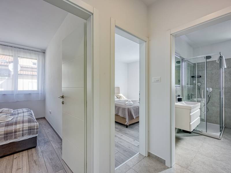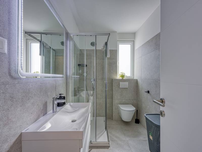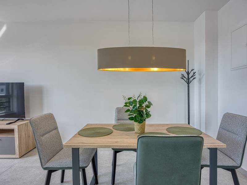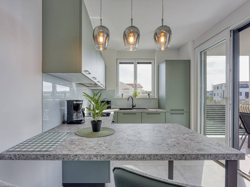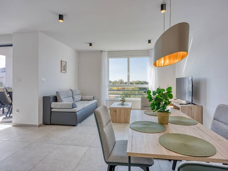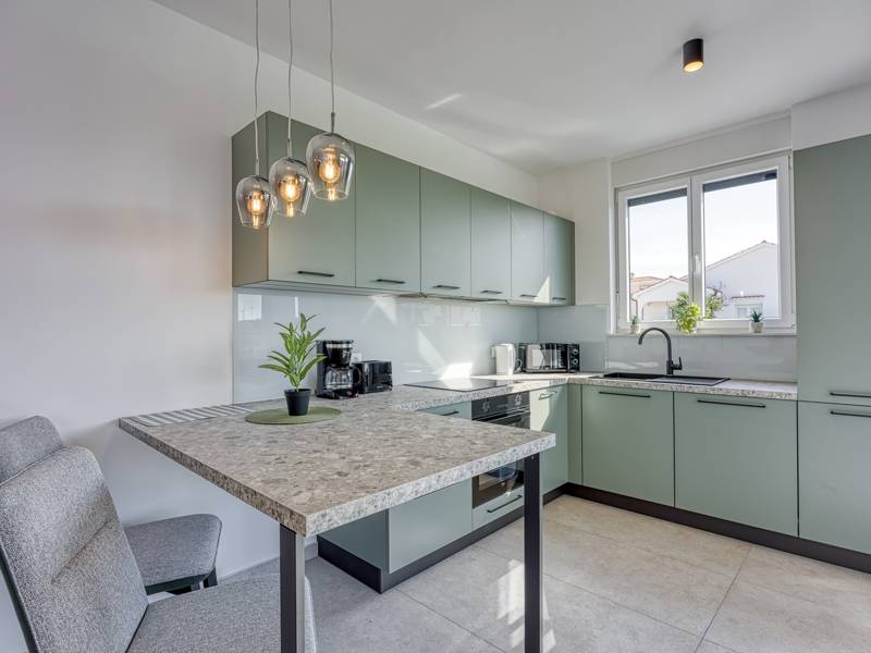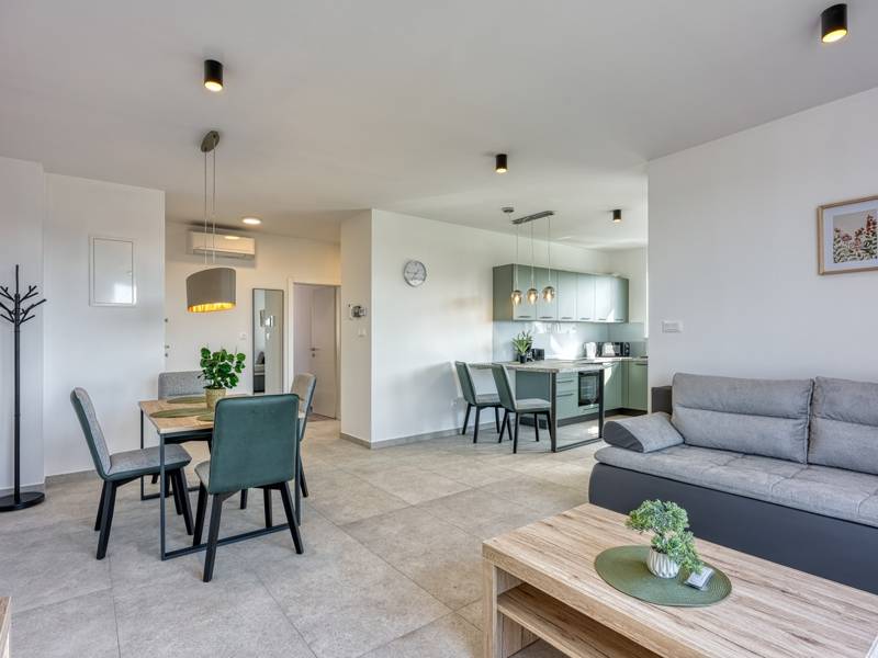 Diese moderne und komfortabel eingerichtete Wohnung befindet sich in einem neu gebauten Wohnhaus (2. Stock), ideal für einen Familienurlaub oder eine Gruppe von Freunden. Die Wohnung besteht aus einem geräumigen Wohnzimmer mit einer voll ausgestatteten Küche mit allen notwendigen Geräten und Annehmlichkeiten ausgestattet, und der Balkon bietet zusätzlichen Komfort und die Möglichkeit, die frische Luft zu genießen, mit Blick auf die Stadt und das Meer in der Ferne. Die Wohnung verfügt über 2 komfortable Schlafzimmer, die Qualität Schlaf und Privatsphäre und ein Badezimmer garantieren. Für zusätzlichen Komfort steht den Gästen eine Waschmaschine zur Verfügung, und ein privater Parkplatz vor dem Gebäude ermöglicht ein sorgloses Parken. Diese Wohnung ist der perfekte Ort zum Entspannen, und ihre Modernität, Funktionalität und Komfort machen sie zu einer ausgezeichneten Wahl für alle, die eine ruhige Umgebung genießen und dennoch in der Nähe aller notwendigen Annehmlichkeiten sein wollen.