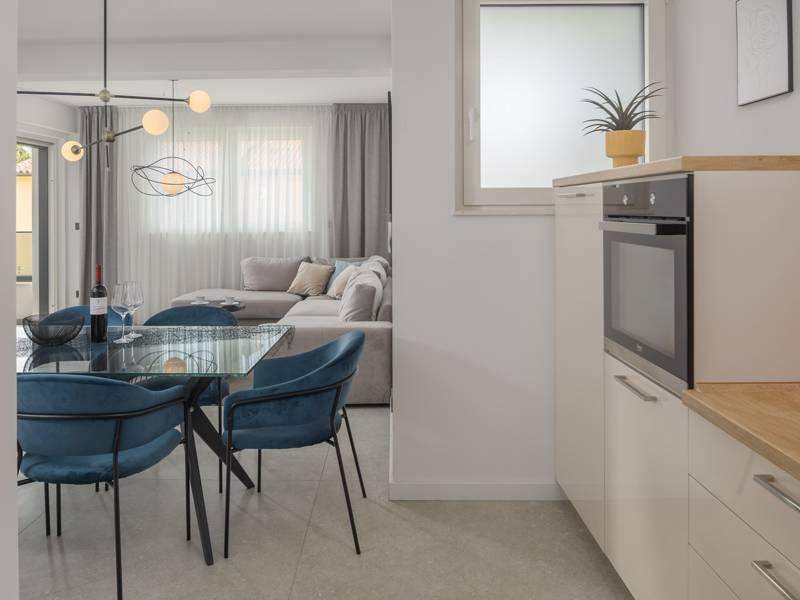 Diese moderne und voll ausgestattete Wohnung befindet sich im Zentrum von Poreč, nur wenige Gehminuten von der Altstadt und dem Strand entfernt. Die Wohnung besteht aus zwei komfortablen Schlafzimmern, einem geräumigen Wohnzimmer, einer Küche mit Essbereich, zwei Badezimmern und einer Terrasse, die ideal ist, um sich nach einem Tag am Strand zu entspannen. Sie ist voll klimatisiert und modern eingerichtet, mit sorgfältig ausgewählten Details, um den Gästen maximalen Komfort und ein Gefühl von Zuhause zu bieten. Die Wohnung verfügt über einen gesicherten Parkplatz in der Garage, was in der Touristensaison im Stadtzentrum eine außergewöhnliche Annehmlichkeit ist.