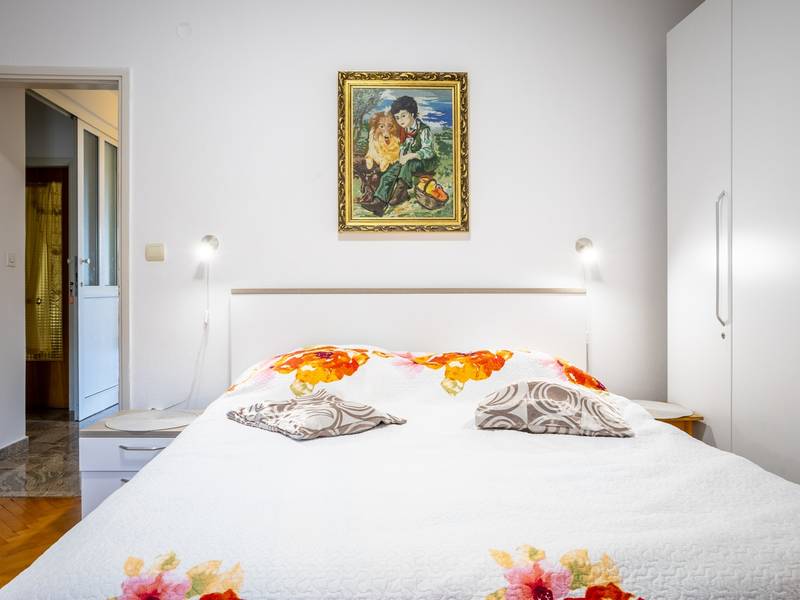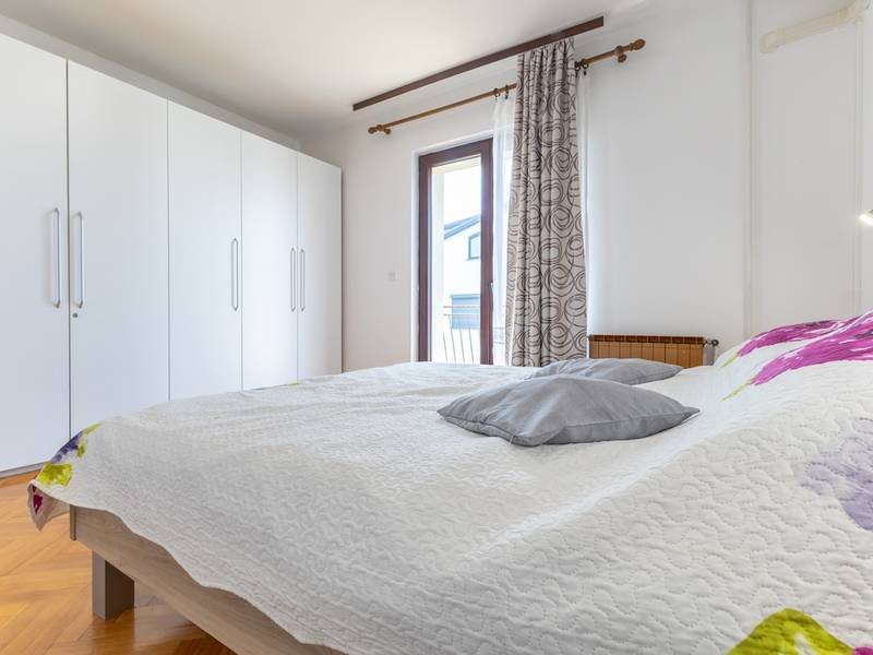 Der Apartmentkomplex in der ruhigen Siedlung Ivo Andrić in Poreč besteht aus vier angenehm eingerichteten Apartments, ideal für einen entspannten Aufenthalt. Die Apartments sind klassisch eingerichtet und bieten alles, was Sie für einen angenehmen Urlaub benötigen - eine funktionale Küche, komfortable Unterkünfte, Klimaanlage und kostenloses WLAN. Den Gästen stehen ein gesicherter Parkplatz sowie ein schön angelegter Innenhof mit Garten und Grill zur Verfügung, der zum geselligen Beisammensein und Genießen der Natur einlädt. Das Apartment Vera A4 befindet sich im 1. Stock des Hauses und verfügt über zwei Balkone und zwei Schlafzimmer mit Gartenblick. In einem der Schlafzimmer befindet sich eine Klimaanlage.