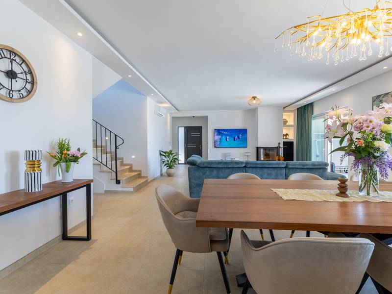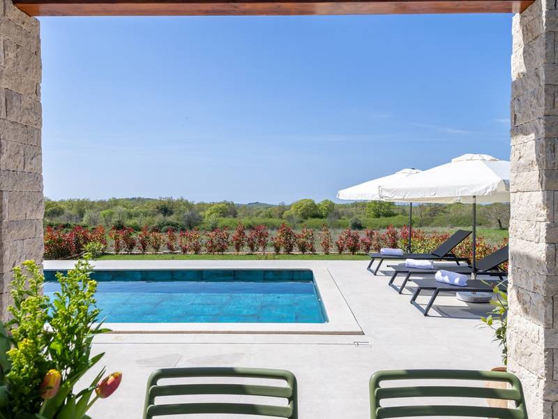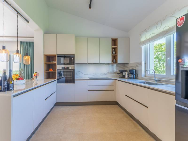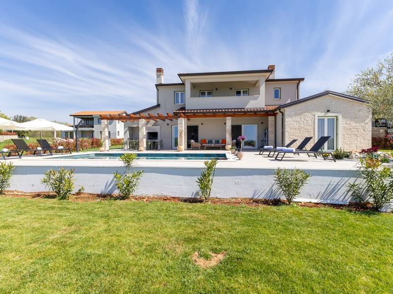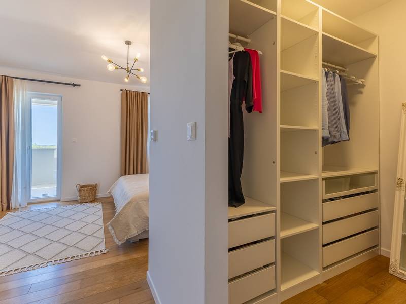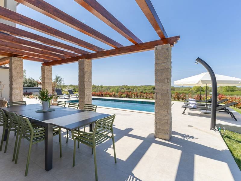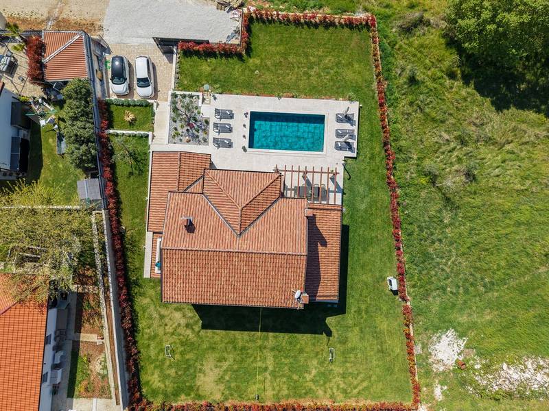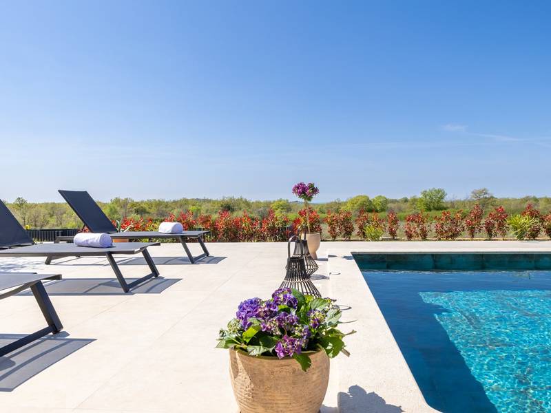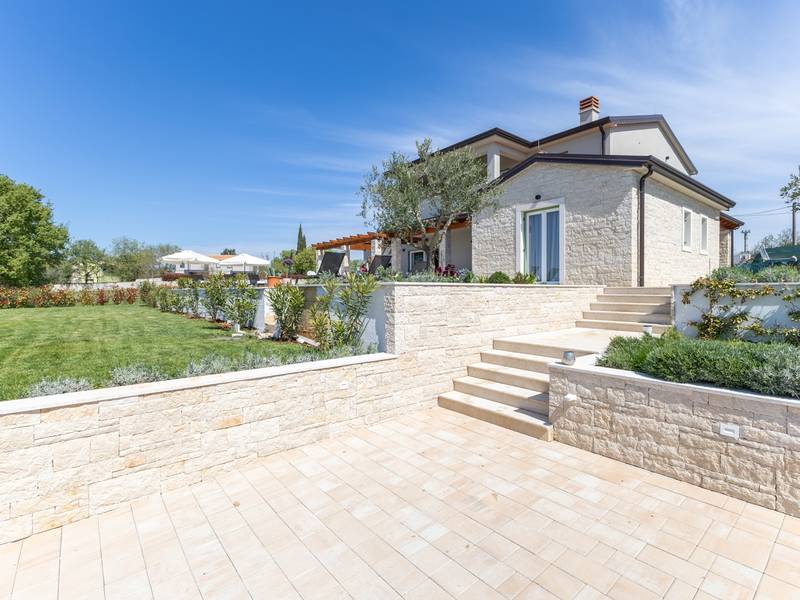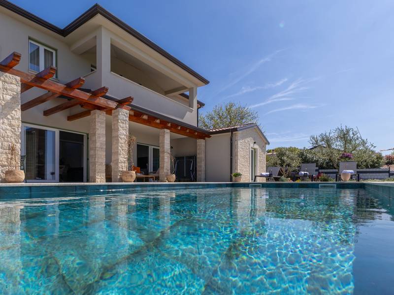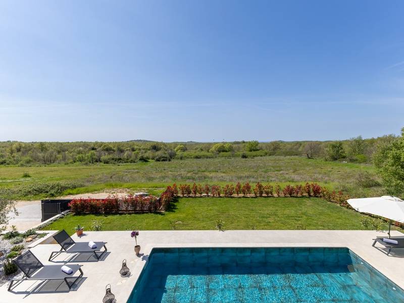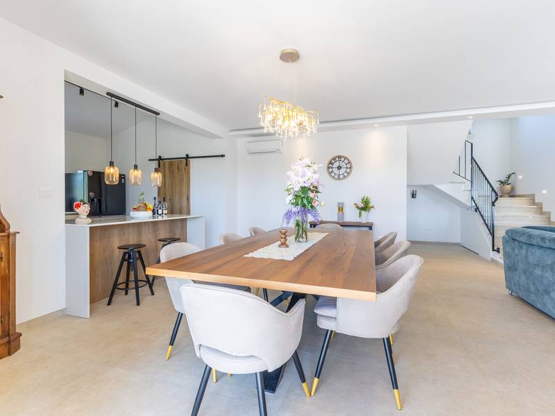 Im ruhigen Dorf Kirmenjak, in unmittelbarer Nähe von Poreč, gelegen, ist dieses moderne und elegante Ferienhaus die perfekte Wahl für einen entspannten Aufenthalt in Istrien. Umgeben von Grün und Natur, bietet es absolute Ruhe, Privatsphäre und bezaubernde Ausblicke, vor allem bei unvergesslichen Sonnenuntergängen. Das Haus wurde mit dem Schwerpunkt auf Komfort und Funktionalität entworfen und bietet Platz für bis zu acht Personen. Es verfügt über vier geräumige Schlafzimmer, jedes mit eigenem Bad, so dass ein Maximum an Privatsphäre für alle Gäste gewährleistet ist. Das Innere ist modern eingerichtet und komplett ausgestattet, und das geräumige Wohnzimmer, das mit dem Esszimmer und der modernen Küche verbunden ist, ist ein zentraler Treffpunkt. Das Haus ist besonders wertvoll wegen seines Kinderspielzimmers, das ideal für Familien mit Kindern ist, sowie wegen des Außenbereichs, der sorgfältig für das Vergnügen im Freien eingerichtet wurde. Vor dem Haus befindet sich ein großer privater Swimmingpool (32 m2), der von Liegestühlen und einer Liegewiese umgeben ist und an warmen Sommertagen zur Erfrischung einlädt. Ein privater Parkplatz steht den Gästen ebenfalls zur Verfügung und das gesamte Anwesen strahlt die Harmonie von modernem Design und natürlicher Umgebung aus. Dieses Ferienhaus ist die ideale Wahl für alle, die eine Kombination aus Luxus, Komfort und authentischem istrischem Ambiente suchen, nur wenige Autominuten vom Meer und dem malerischen Zentrum von Poreč entfernt.