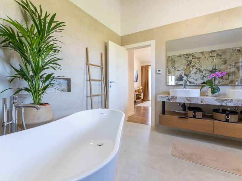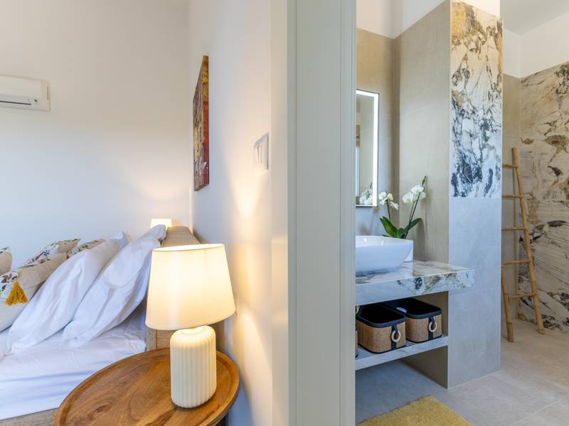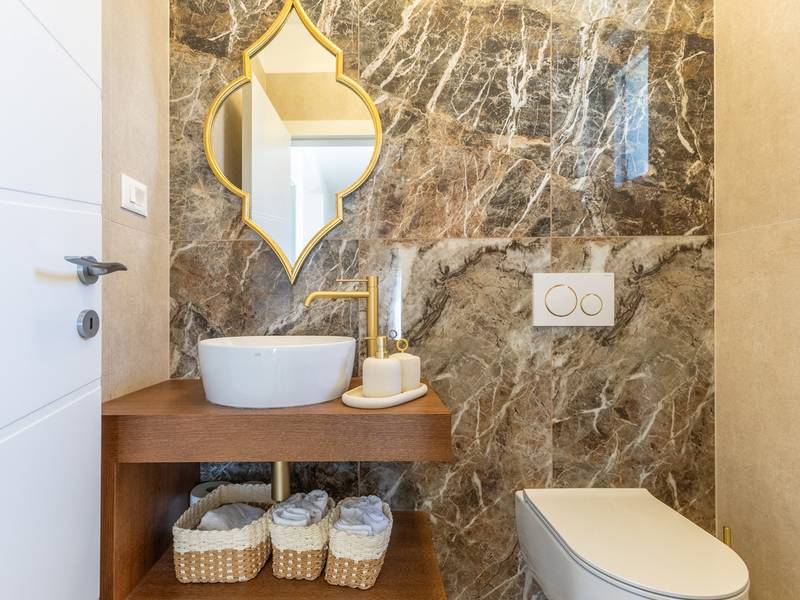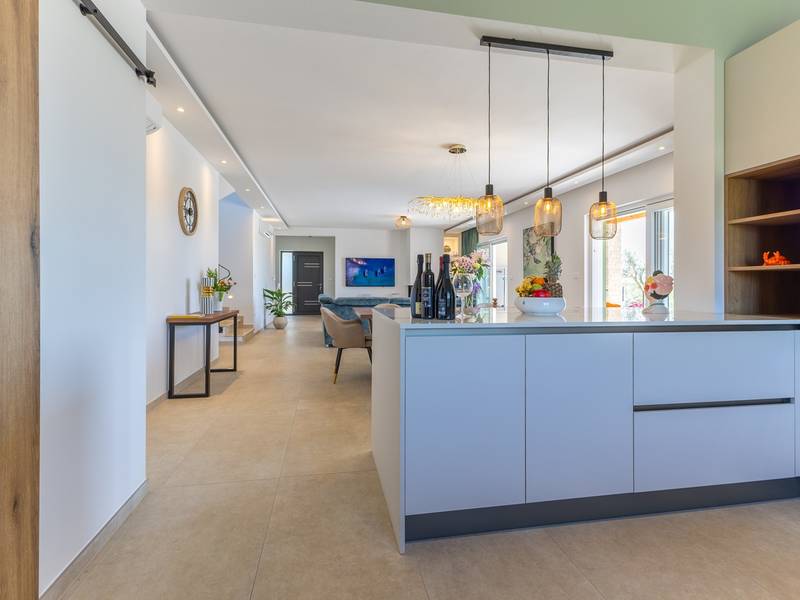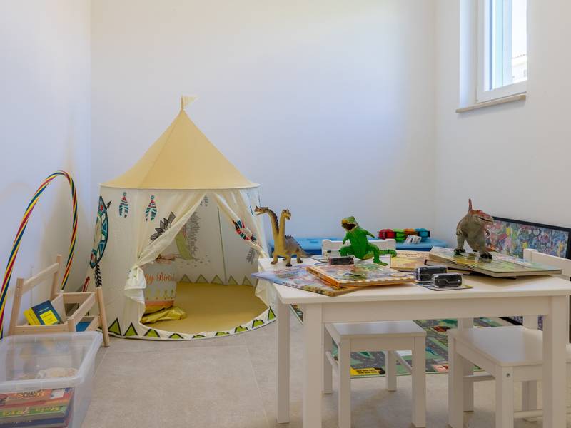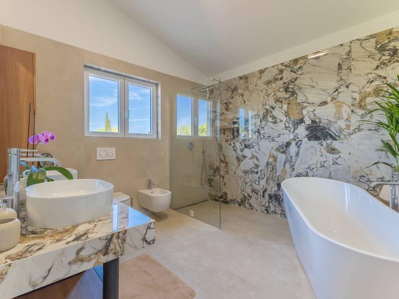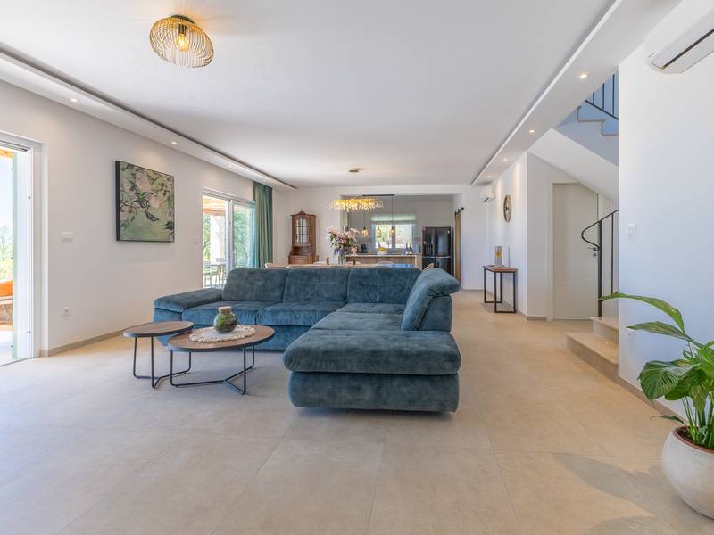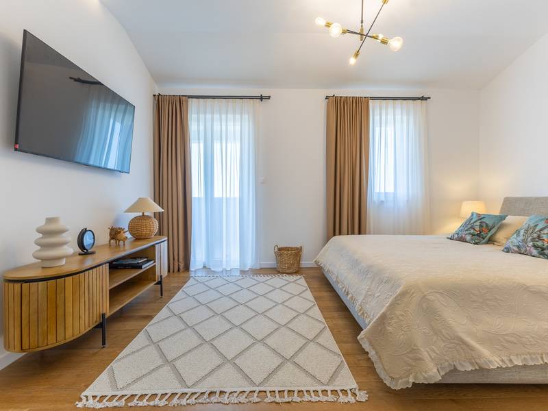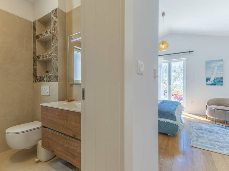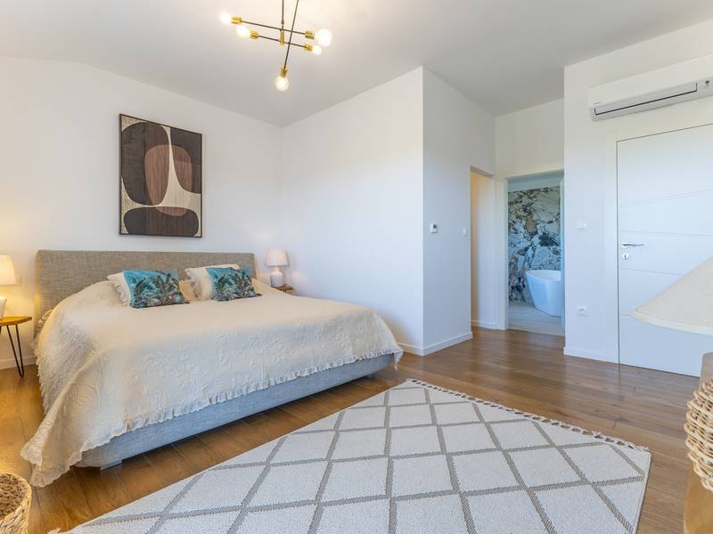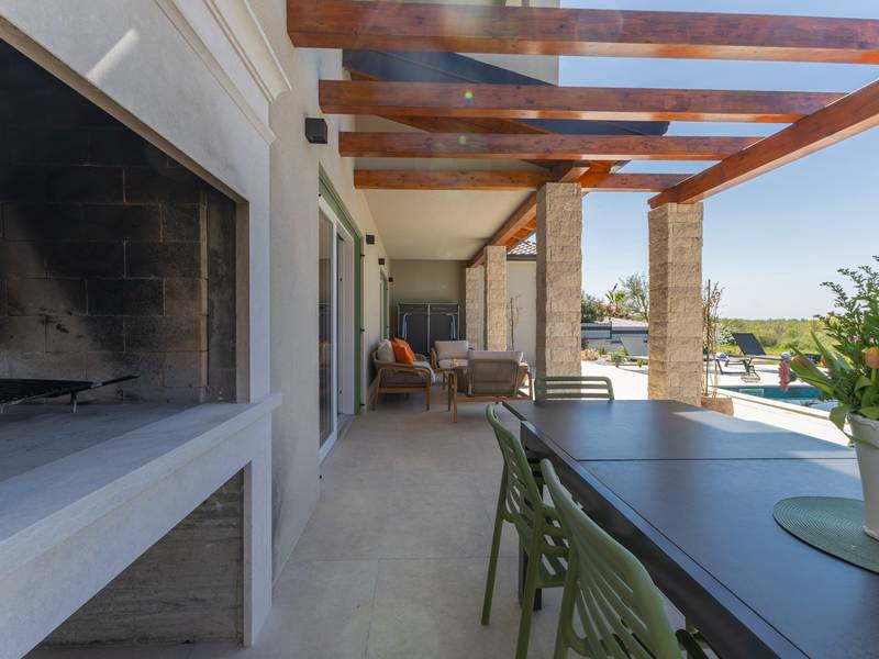Im ruhigen Dorf Kirmenjak, in unmittelbarer Nähe von Poreč, gelegen, ist dieses moderne und elegante Ferienhaus die perfekte Wahl für einen entspannten Aufenthalt in Istrien. Umgeben von Grün und Natur, bietet es absolute Ruhe, Privatsphäre und bezaubernde Ausblicke, vor allem bei unvergesslichen Sonnenuntergängen. Das Haus wurde mit dem Schwerpunkt auf Komfort und Funktionalität entworfen und bietet Platz für bis zu acht Personen. Es verfügt über vier geräumige Schlafzimmer, jedes mit eigenem Bad, so dass ein Maximum an Privatsphäre für alle Gäste gewährleistet ist. Das Innere ist modern eingerichtet und komplett ausgestattet, und das geräumige Wohnzimmer, das mit dem Esszimmer und der modernen Küche verbunden ist, ist ein zentraler Treffpunkt. Das Haus ist besonders wertvoll wegen seines Kinderspielzimmers, das ideal für Familien mit Kindern ist, sowie wegen des Außenbereichs, der sorgfältig für das Vergnügen im Freien eingerichtet wurde. Vor dem Haus befindet sich ein großer privater Swimmingpool (32 m2), der von Liegestühlen und einer Liegewiese umgeben ist und an warmen Sommertagen zur Erfrischung einlädt. Ein privater Parkplatz steht den Gästen ebenfalls zur Verfügung und das gesamte Anwesen strahlt die Harmonie von modernem Design und natürlicher Umgebung aus. Dieses Ferienhaus ist die ideale Wahl für alle, die eine Kombination aus Luxus, Komfort und authentischem istrischem Ambiente suchen, nur wenige Autominuten vom Meer und dem malerischen Zentrum von Poreč entfernt.