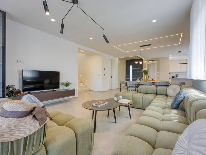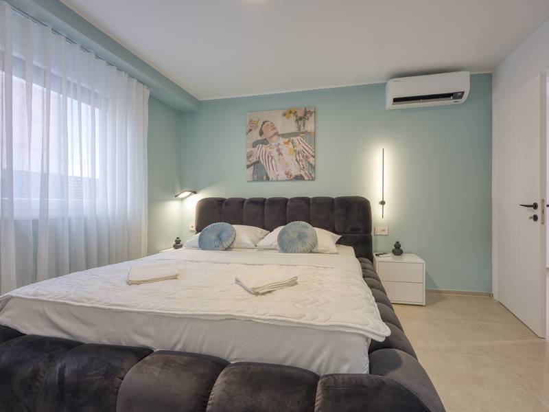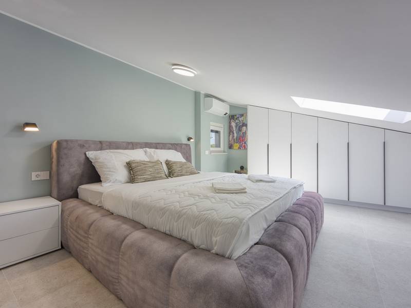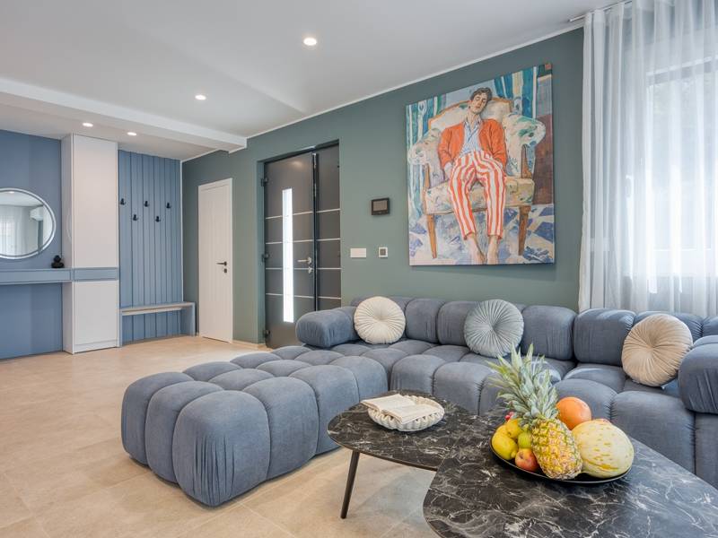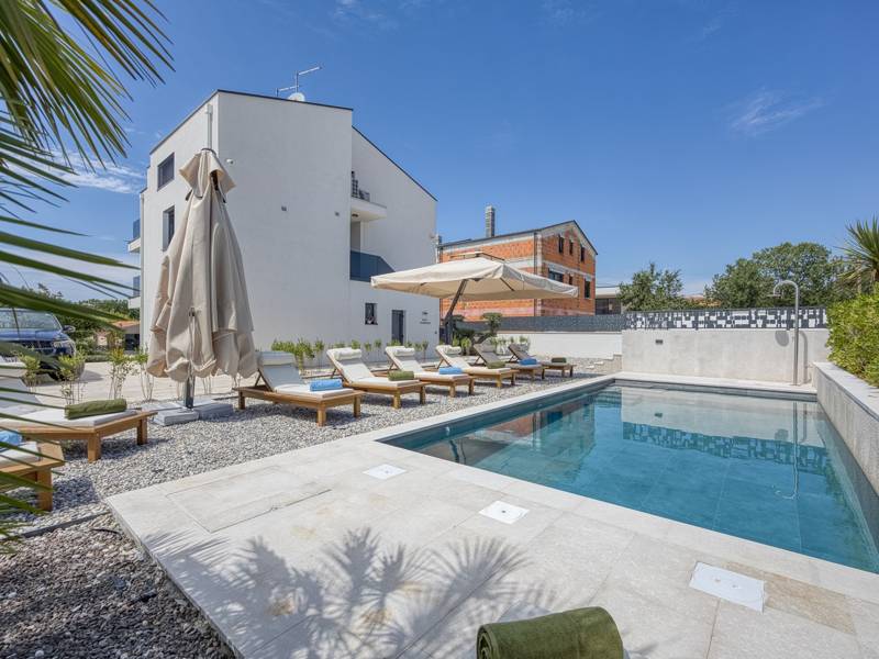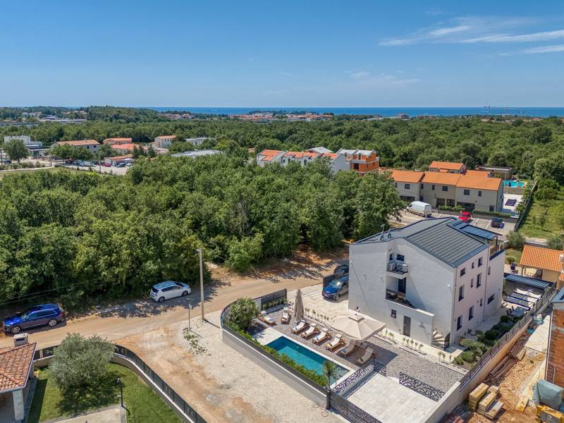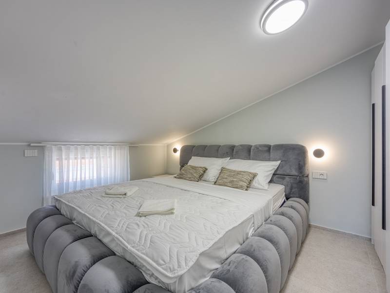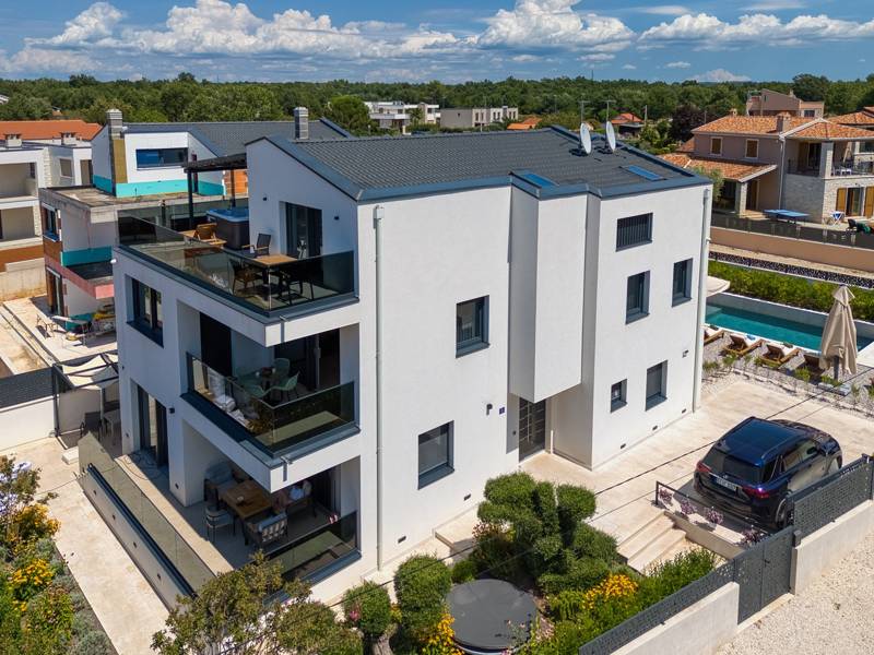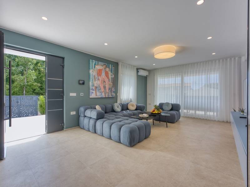 Dieses luxuriöse und geräumige Ferienhaus befindet sich in einer ruhigen Gegend nur 2 km vom Strand und dem Zentrum von Poreč entfernt und ist ideal für größere Familien oder Gruppen von Freunden, die Komfort, Platz und Privatsphäre suchen. Das Haus besteht aus zwei separaten Wohneinheiten, die sich über mehrere Etagen erstrecken und mit insgesamt sechs Schlafzimmern und sechs Badezimmern für einen komfortablen und ungestörten Aufenthalt sorgen. Die erste Einheit besteht aus einem Wohnzimmer, einer voll ausgestatteten Küche und zwei Schlafzimmern, eines mit eigenem Bad und das andere mit einem an das Zimmer angrenzenden Badezimmer. Die zweite Einheit erstreckt sich über zwei Etagen - im ersten Stock gibt es ein Wohnzimmer, eine Küche und zwei Schlafzimmer, jeweils mit eigenem Bad. In der zweiten Etage befinden sich ein weiteres Wohnzimmer und zwei Schlafzimmer, eines mit eigenem Bad und das andere mit einem an das Zimmer angrenzenden Bad. Das Haus ist mit allem ausgestattet, was Sie für einen komfortablen Aufenthalt benötigen - jedes Zimmer ist klimatisiert und verfügt über SAT-TV. Außerdem sorgt die Zentralheizung in den Wintermonaten für ein angenehmes Klima. Kostenloses Wi-Fi, ein privater Parkplatz, zwei voll ausgestattete Küchen und mehrere Wohnbereiche sorgen für zusätzlichen Komfort. Genießen Sie den schönen grünen Garten, entspannen Sie sich auf der großzügigen Terrasse im Erdgeschoss mit einem Grill oder entspannen Sie sich auf der Dachterrasse mit Whirlpool und atemberaubender Aussicht. Ein echtes Highlight ist der 32 m2 große Privatpool mit bequemen Sonnenliegen - der perfekte Ort, um sich zu sonnen, zu erfrischen und warme Sommertage zu genießen. Dieses Anwesen bietet die perfekte Kombination aus Ruhe, Privatsphäre und Nähe zum Meer und allen wichtigen Annehmlichkeiten - ein idealer Ort für einen unbeschwerten Urlaub, ob im Sommer oder im Winter. Bitte beachten Sie: Jugendgruppen sind in dieser Unterkunft nicht erlaubt.