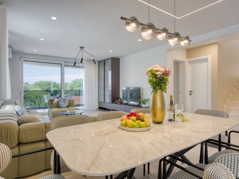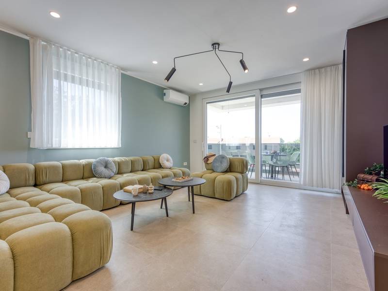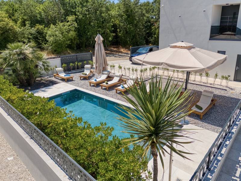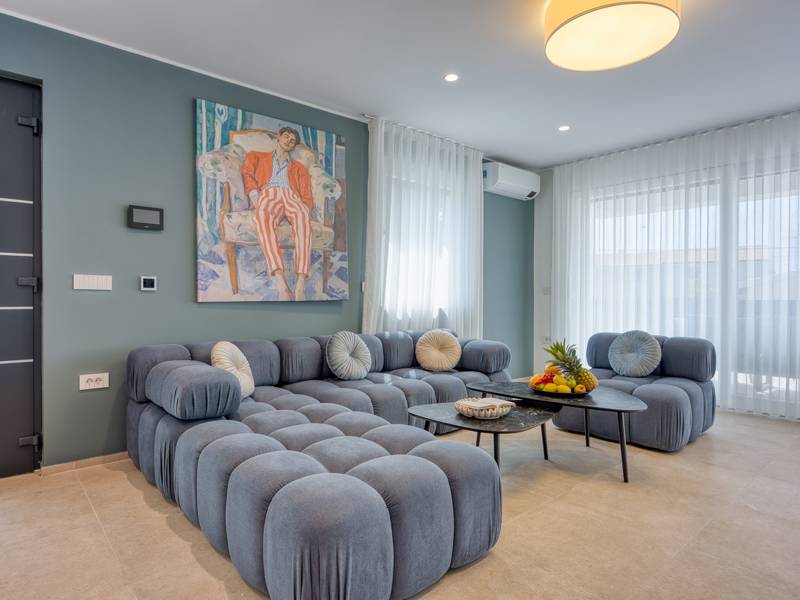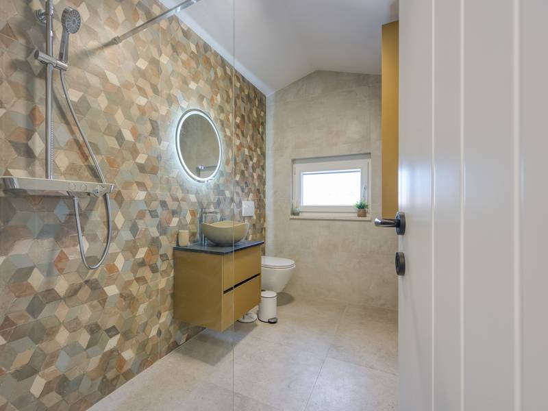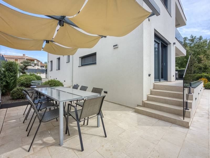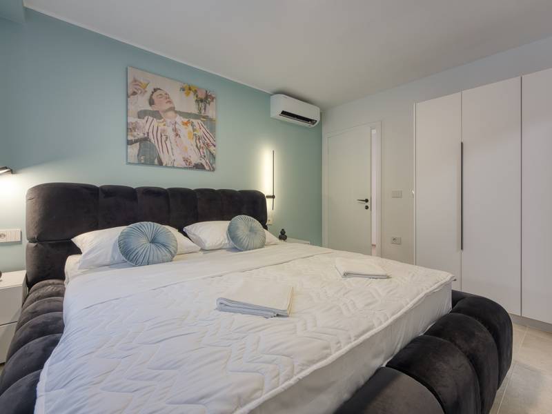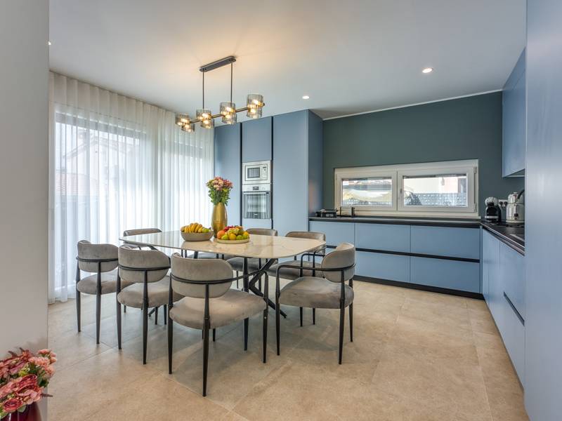 Dieses luxuriöse und geräumige Ferienhaus befindet sich in einer ruhigen Gegend nur 2 km vom Strand und dem Zentrum von Poreč entfernt und ist ideal für größere Familien oder Gruppen von Freunden, die Komfort, Platz und Privatsphäre suchen. Das Haus besteht aus zwei separaten Wohneinheiten, die sich über mehrere Etagen erstrecken und mit insgesamt sechs Schlafzimmern und sechs Badezimmern für einen komfortablen und ungestörten Aufenthalt sorgen. Die erste Einheit besteht aus einem Wohnzimmer, einer voll ausgestatteten Küche und zwei Schlafzimmern, eines mit eigenem Bad und das andere mit einem an das Zimmer angrenzenden Badezimmer. Die zweite Einheit erstreckt sich über zwei Etagen - im ersten Stock gibt es ein Wohnzimmer, eine Küche und zwei Schlafzimmer, jeweils mit eigenem Bad. In der zweiten Etage befinden sich ein weiteres Wohnzimmer und zwei Schlafzimmer, eines mit eigenem Bad und das andere mit einem an das Zimmer angrenzenden Bad. Das Haus ist mit allem ausgestattet, was Sie für einen komfortablen Aufenthalt benötigen - jedes Zimmer ist klimatisiert und verfügt über SAT-TV. Außerdem sorgt die Zentralheizung in den Wintermonaten für ein angenehmes Klima. Kostenloses Wi-Fi, ein privater Parkplatz, zwei voll ausgestattete Küchen und mehrere Wohnbereiche sorgen für zusätzlichen Komfort. Genießen Sie den schönen grünen Garten, entspannen Sie sich auf der großzügigen Terrasse im Erdgeschoss mit einem Grill oder entspannen Sie sich auf der Dachterrasse mit Whirlpool und atemberaubender Aussicht. Ein echtes Highlight ist der 32 m2 große Privatpool mit bequemen Sonnenliegen - der perfekte Ort, um sich zu sonnen, zu erfrischen und warme Sommertage zu genießen. Dieses Anwesen bietet die perfekte Kombination aus Ruhe, Privatsphäre und Nähe zum Meer und allen wichtigen Annehmlichkeiten - ein idealer Ort für einen unbeschwerten Urlaub, ob im Sommer oder im Winter. Bitte beachten Sie: Jugendgruppen sind in dieser Unterkunft nicht erlaubt.