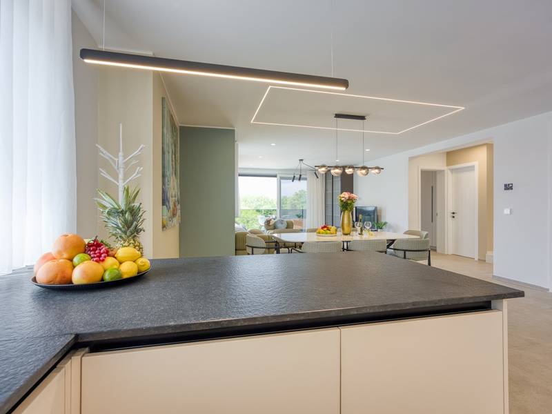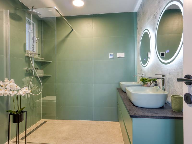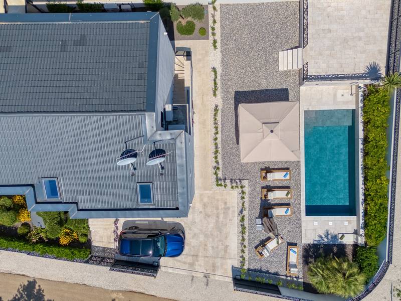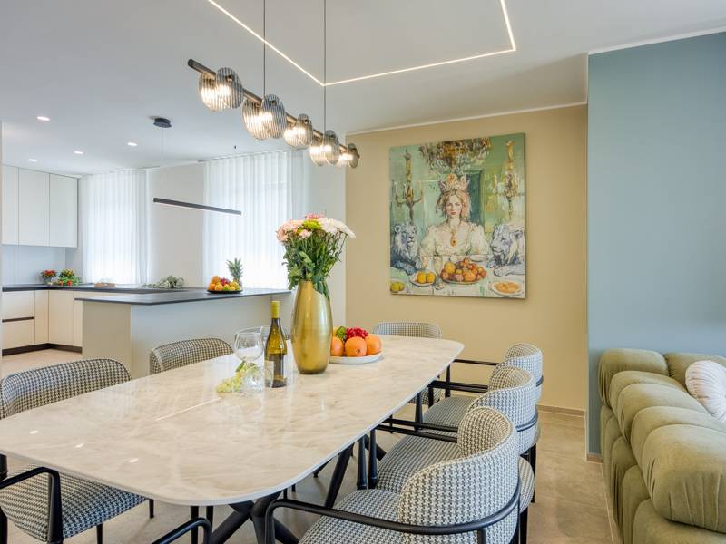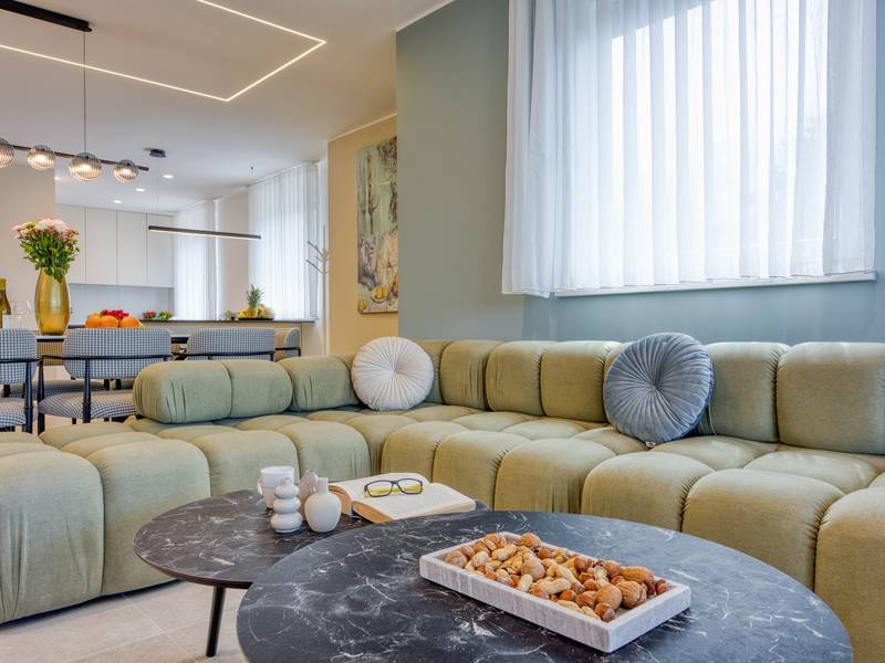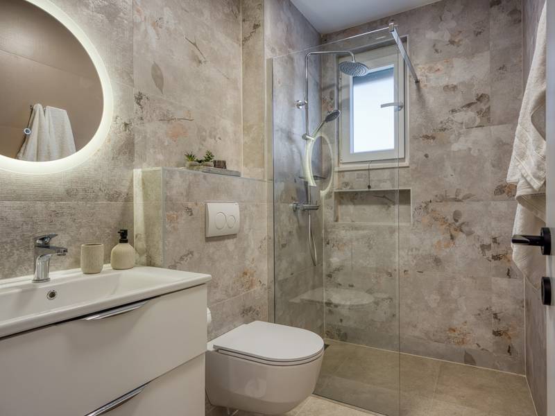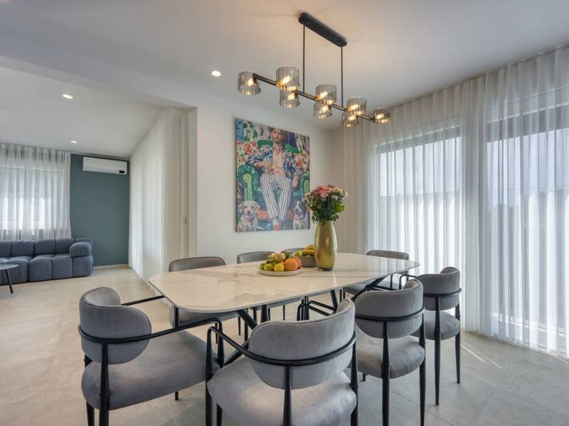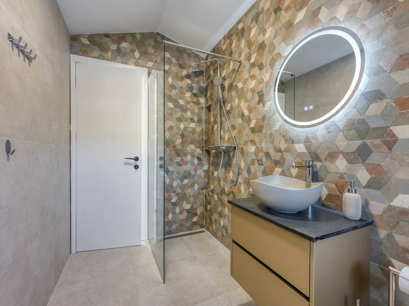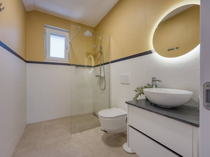 Dieses luxuriöse und geräumige Ferienhaus befindet sich in einer ruhigen Gegend nur 2 km vom Strand und dem Zentrum von Poreč entfernt und ist ideal für größere Familien oder Gruppen von Freunden, die Komfort, Platz und Privatsphäre suchen. Das Haus besteht aus zwei separaten Wohneinheiten, die sich über mehrere Etagen erstrecken und mit insgesamt sechs Schlafzimmern und sechs Badezimmern für einen komfortablen und ungestörten Aufenthalt sorgen. Die erste Einheit besteht aus einem Wohnzimmer, einer voll ausgestatteten Küche und zwei Schlafzimmern, eines mit eigenem Bad und das andere mit einem an das Zimmer angrenzenden Badezimmer. Die zweite Einheit erstreckt sich über zwei Etagen - im ersten Stock gibt es ein Wohnzimmer, eine Küche und zwei Schlafzimmer, jeweils mit eigenem Bad. In der zweiten Etage befinden sich ein weiteres Wohnzimmer und zwei Schlafzimmer, eines mit eigenem Bad und das andere mit einem an das Zimmer angrenzenden Bad. Das Haus ist mit allem ausgestattet, was Sie für einen komfortablen Aufenthalt benötigen - jedes Zimmer ist klimatisiert und verfügt über SAT-TV. Außerdem sorgt die Zentralheizung in den Wintermonaten für ein angenehmes Klima. Kostenloses Wi-Fi, ein privater Parkplatz, zwei voll ausgestattete Küchen und mehrere Wohnbereiche sorgen für zusätzlichen Komfort. Genießen Sie den schönen grünen Garten, entspannen Sie sich auf der großzügigen Terrasse im Erdgeschoss mit einem Grill oder entspannen Sie sich auf der Dachterrasse mit Whirlpool und atemberaubender Aussicht. Ein echtes Highlight ist der 32 m2 große Privatpool mit bequemen Sonnenliegen - der perfekte Ort, um sich zu sonnen, zu erfrischen und warme Sommertage zu genießen. Dieses Anwesen bietet die perfekte Kombination aus Ruhe, Privatsphäre und Nähe zum Meer und allen wichtigen Annehmlichkeiten - ein idealer Ort für einen unbeschwerten Urlaub, ob im Sommer oder im Winter. Bitte beachten Sie: Jugendgruppen sind in dieser Unterkunft nicht erlaubt.
