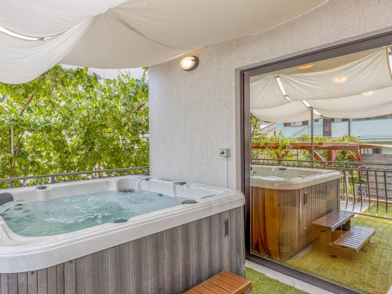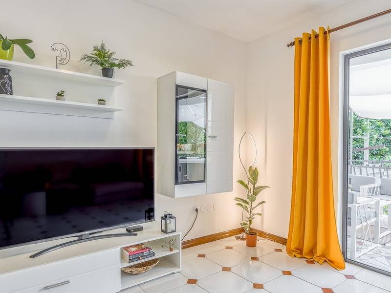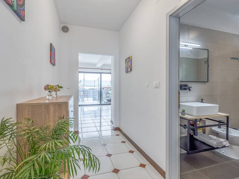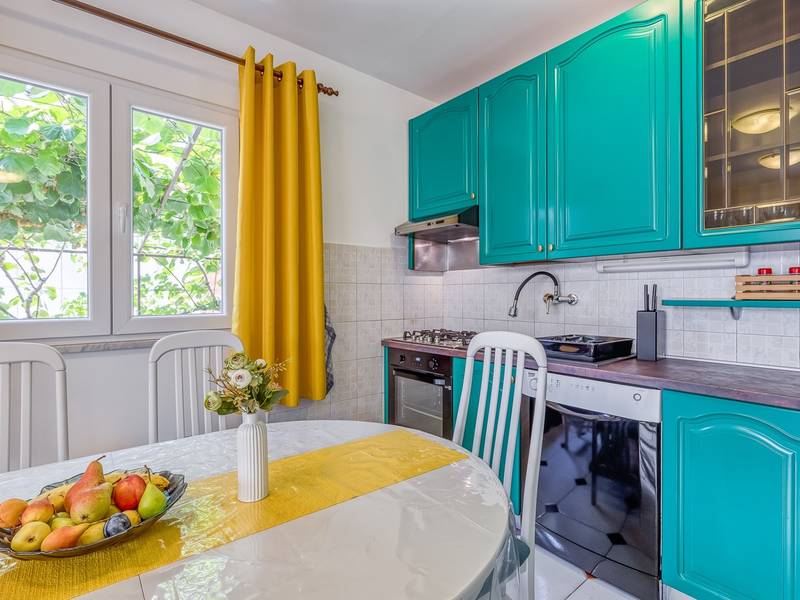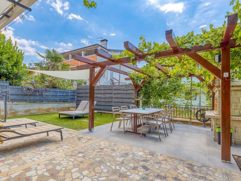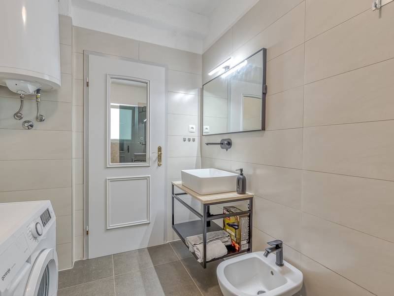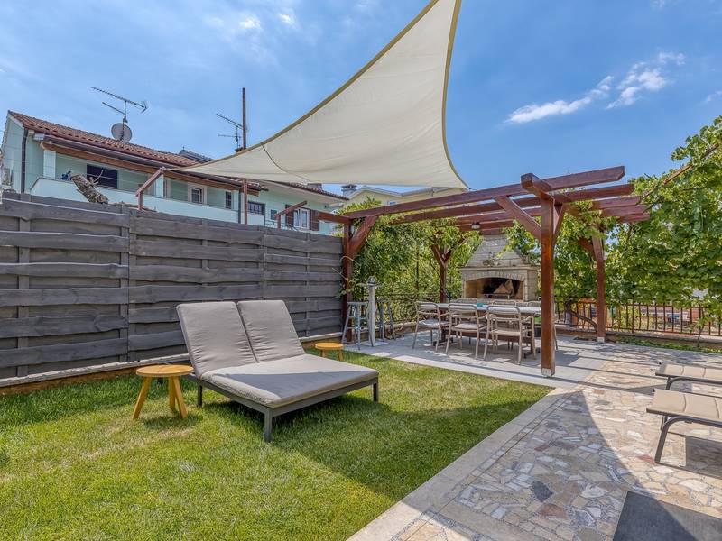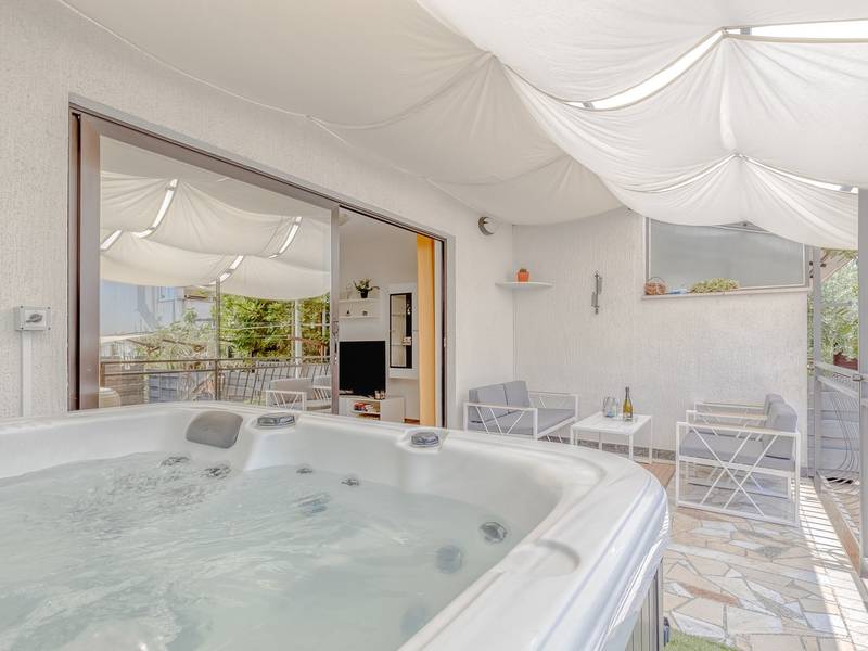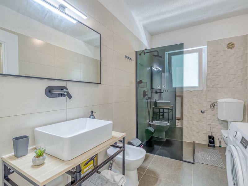 Diese schön eingerichtete klimatisierte Wohnung von 80m2 mit einem reichen Inhalt befindet sich in einer großartigen Lage in der Nähe des Stadtzentrums. Es ist nur 700m vom Meer entfernt. Die Wohnung besteht aus zwei Schlafzimmern, eines mit einem Doppelbett und eines mit zwei Einzelbetten, ein Badezimmer mit Dusche, eine ausgestattete Küche und ein geräumiges Wohnzimmer. Es gibt eine Sauna im zentralen Teil der Wohnung und einen Whirlpool auf der überdachten Terrasse, die Sie nach dem Schwimmen im Meer und dem Sonnenbaden an den schönen Stränden in der Nähe genießen können. An warmen Sommerabenden können Sie sich auf der Terrasse aufhalten, während Sie auf dem Grill etwas zubereiten. Die Wohnung verfügt über einen geräumigen Hof, in dem Sie sich auf Liegestühlen sonnen oder einfach in geselliger Runde entspannen können. In dieser Lage gibt es ausgezeichnete Restaurants, Weinhandlungen und Einkaufszentren in der Nähe. Sie können zu Fuß ins Stadtzentrum gehen und die vielen Einrichtungen, die diese schöne Stadt bietet, genießen.