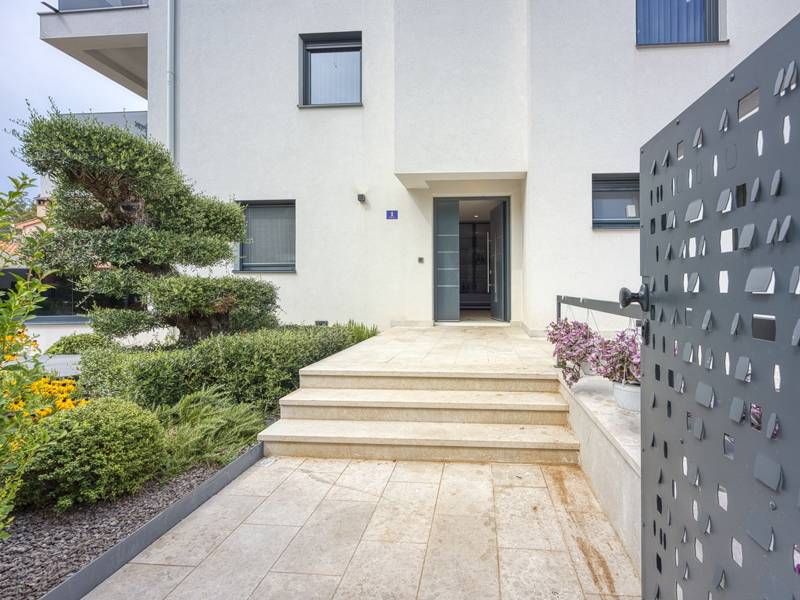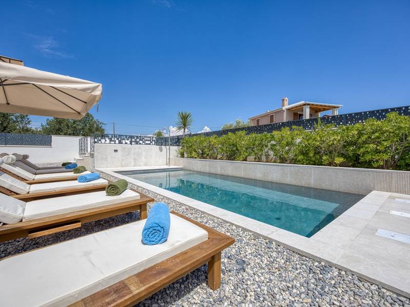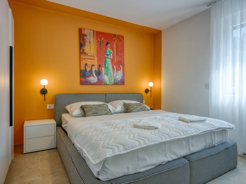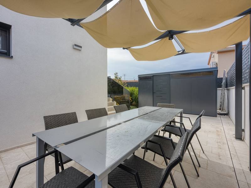 Dieses luxuriöse und geräumige Ferienhaus befindet sich in einer ruhigen Gegend nur 2 km vom Strand und dem Zentrum von Poreč entfernt und ist ideal für größere Familien oder Gruppen von Freunden, die Komfort, Platz und Privatsphäre suchen. Das Haus besteht aus zwei separaten Wohneinheiten mit gemeinsamem Pool. Diese Einheit besteht aus einem Wohnzimmer, einer voll ausgestatteten Küche und zwei Schlafzimmern, eines mit eigenem Bad und das andere mit einem an das Zimmer angrenzenden Bad. Das Haus ist mit allem ausgestattet, was Sie für einen komfortablen Aufenthalt benötigen - jedes Zimmer ist klimatisiert und verfügt über SAT-TV. Außerdem sorgt die Zentralheizung dafür, dass das Haus in den Wintermonaten gemütlich ist. Kostenloses Wi-Fi, 2 Privatparkplätze, Küche und mehrere Wohnbereiche sorgen für zusätzlichen Komfort. Genießen Sie den schönen grünen Garten oder entspannen Sie sich auf der großzügigen ebenerdigen Terrasse mit Grill. Ein echtes Highlight ist der 32 m2 große Privatpool mit bequemen Sonnenliegen - der perfekte Ort, um sich zu sonnen, zu erfrischen und warme Sommertage zu genießen. Dieses Anwesen bietet die perfekte Kombination aus Ruhe, Privatsphäre und Nähe zum Meer und allen wichtigen Annehmlichkeiten - ein idealer Ort für einen unbeschwerten Urlaub, ob im Sommer oder im Winter. Bitte beachten Sie: Jugendgruppen sind in dieser Unterkunft nicht erlaubt.