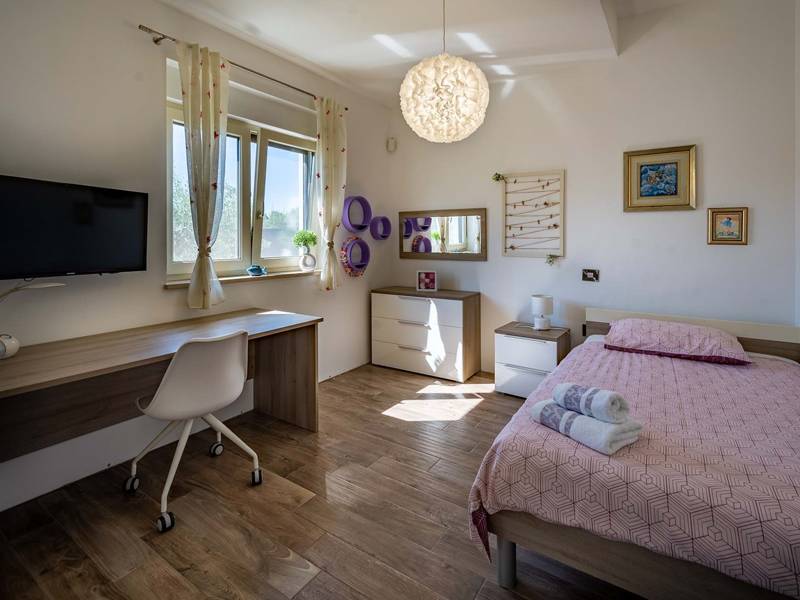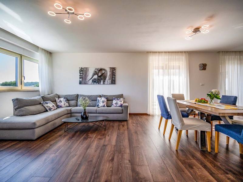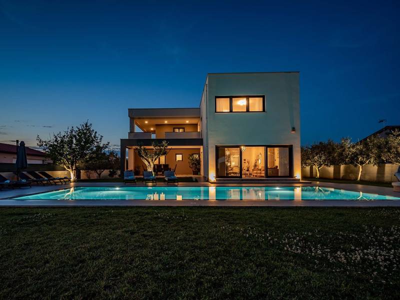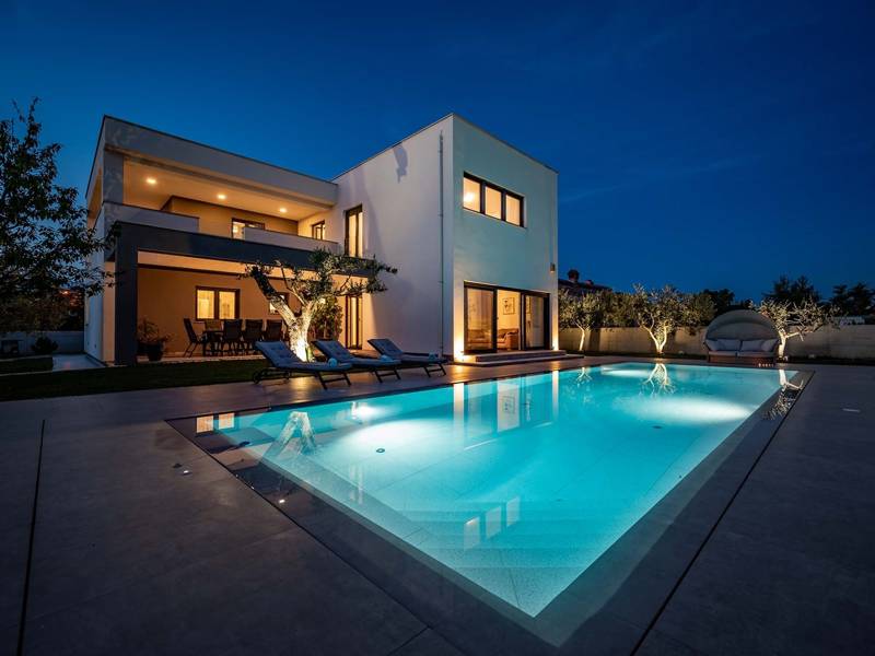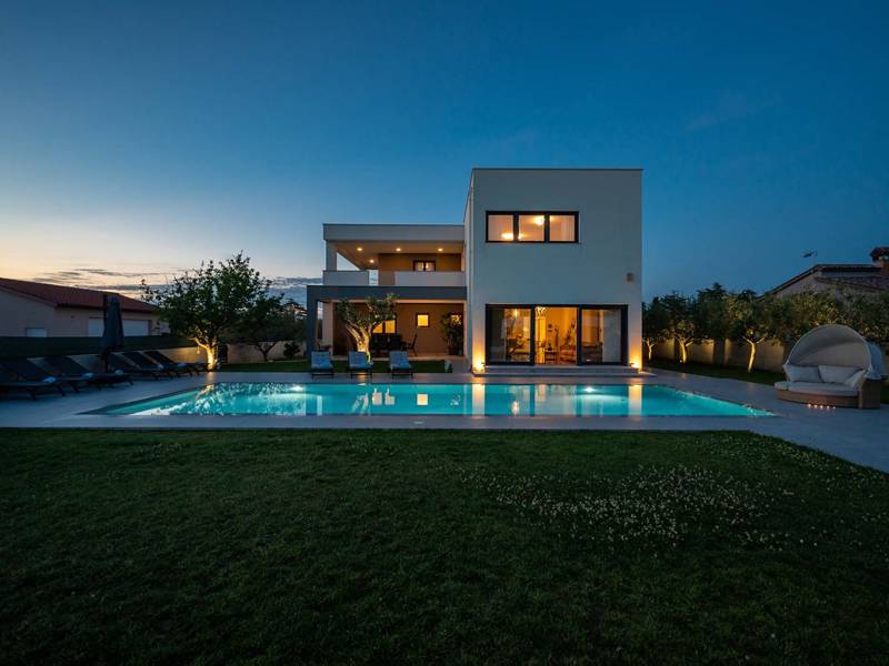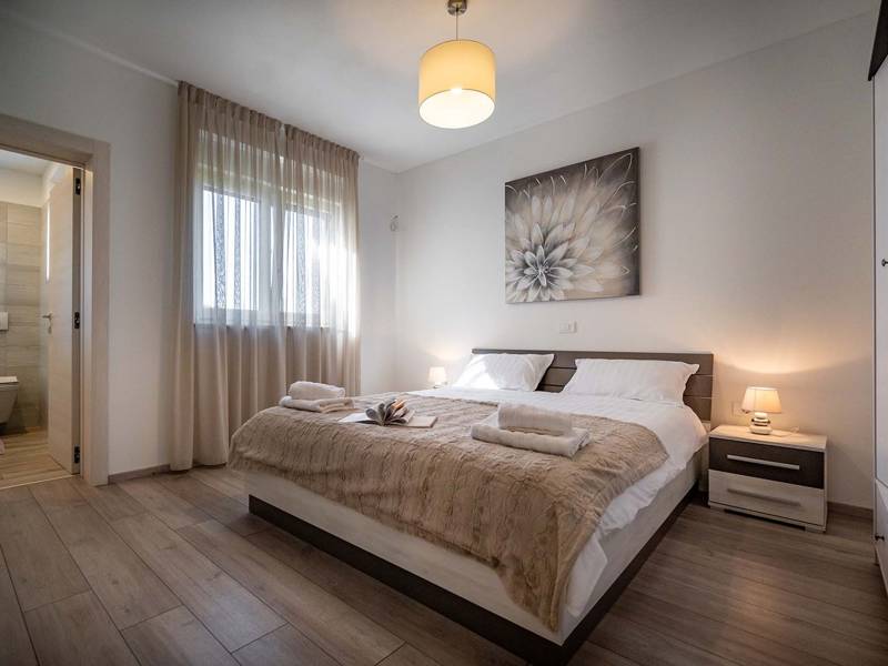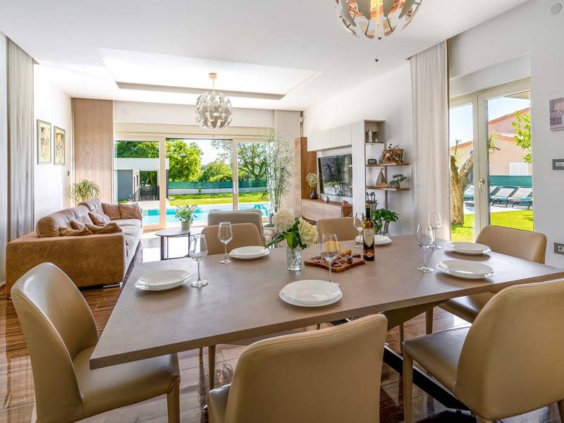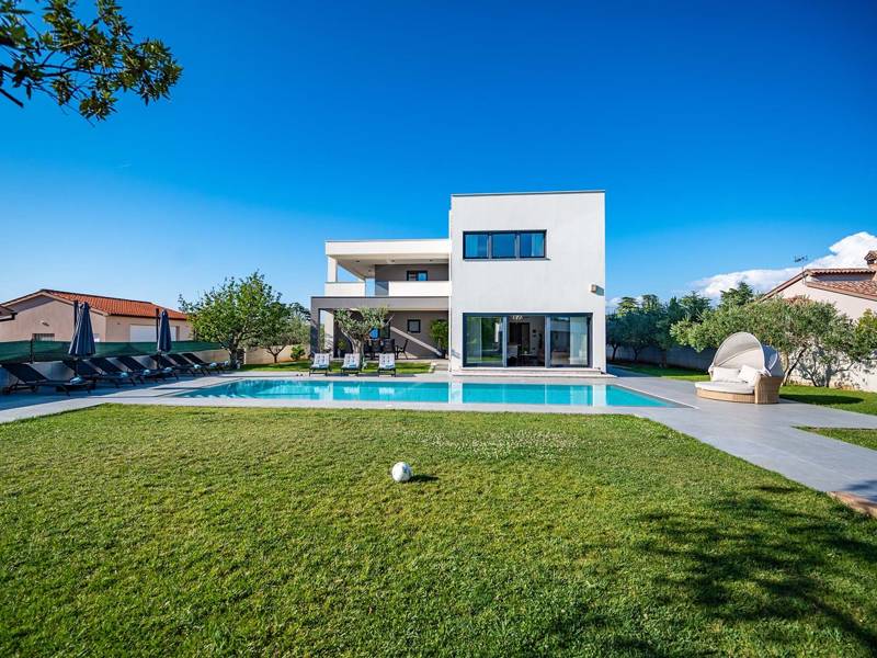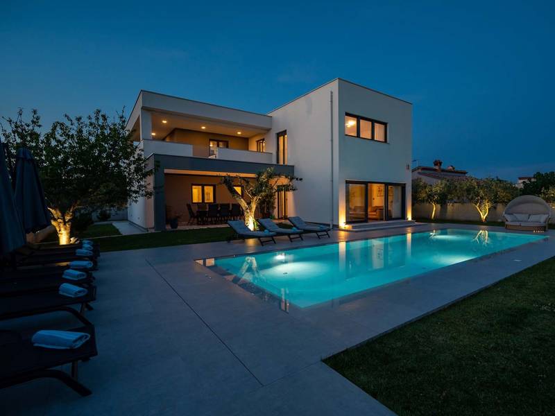 Villa Luen ist ein modernes Ferienhaus am Eingang von Pula, der größten Stadt auf der Halbinsel Istrien mit zahlreichen historischen Sehenswürdigkeiten. Das Haus besteht aus zwei Wohnungen, jede auf ihrer eigenen Etage, die durch eine interne Treppe verbunden sind. Dies ist besonders attraktiv für zwei Familien, die einen gemeinsamen Urlaub verbringen und dennoch ihre Privatsphäre bewahren möchten. Das Haus verfügt über insgesamt 6 Schlafzimmer und kann dank zusätzlicher Betten bis zu 11 Personen beherbergen: drei Schlafzimmer mit Doppelbetten, ein Schlafzimmer mit zwei Einzelbetten, die zu einem Doppelbett verbunden werden können, und zwei Schlafzimmer mit je einem Einzelbett. Während die obere Etage etwas legerer eingerichtet ist, strahlt die untere Etage mit Elementen wie warmen Sandfarben und raffinierten Möbeln Eleganz aus. Beide Etagen zeichnen sich durch perfekte Proportionen, Geräumigkeit und viel Licht aus. Diese freistehende Villa mit Swimmingpool verfügt auch über komfortable, schattige Terrassen, die Ruhe und Entspannung bieten. Sie ist weit genug von der Hektik der Stadt entfernt und dennoch nur wenige Autominuten vom Stadtzentrum und dem nächsten Strand entfernt. Einige der Objekte erlauben keine Jugendgruppen. Wenn Sie als Gruppe junger Menschen eine Unterkunft buchen, setzen Sie sich bitte vor der Reservierung mit unserer Agentur in Verbindung, um zu prüfen, ob die gewünschte Unterkunft Ihren Aufenthalt erlaubt.