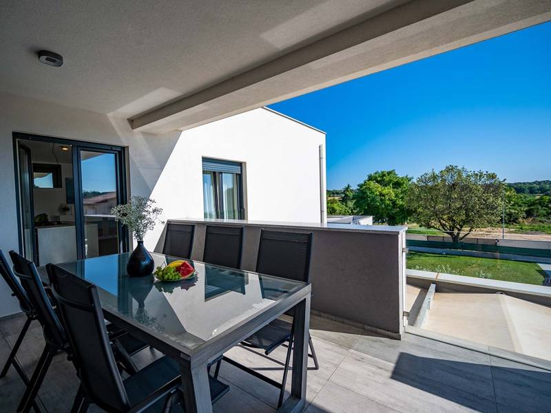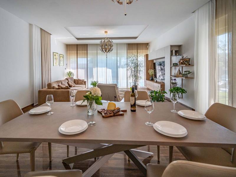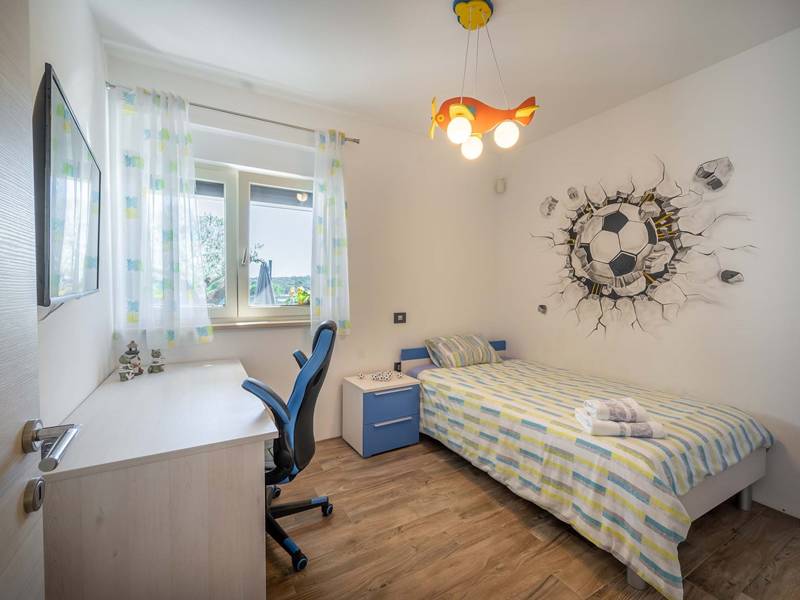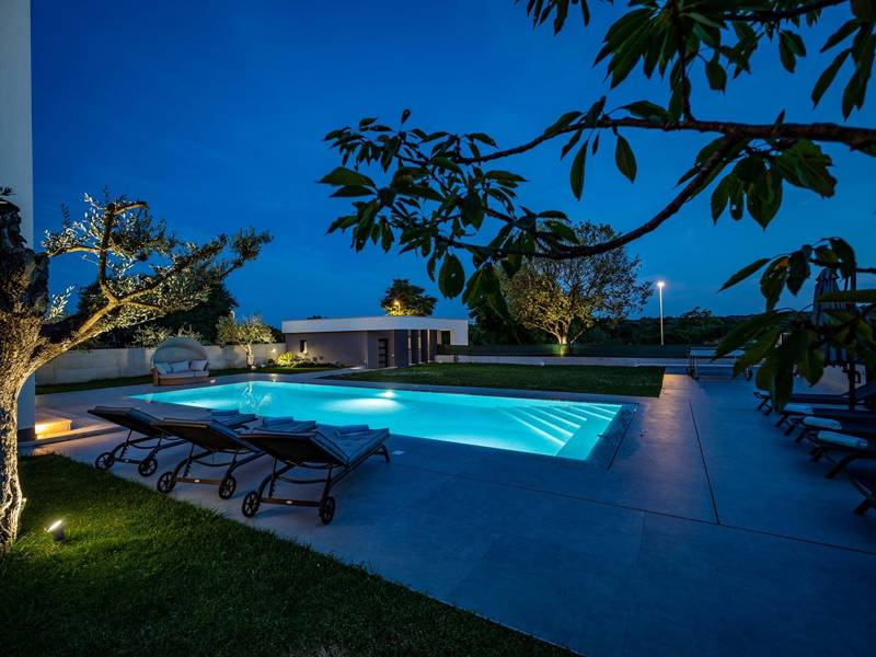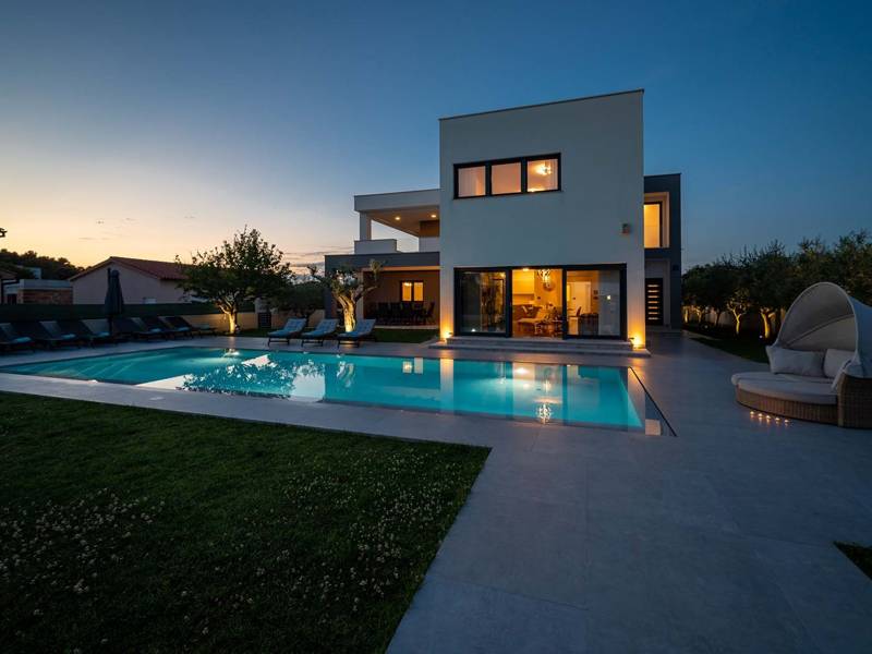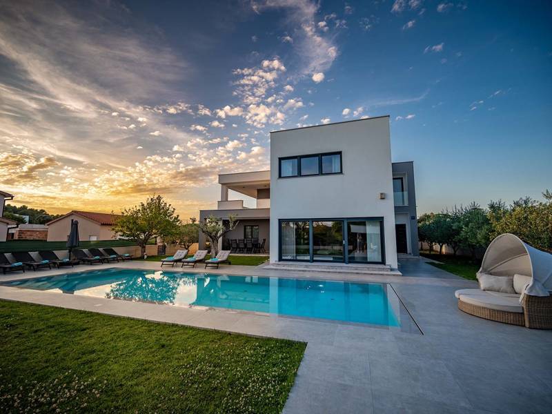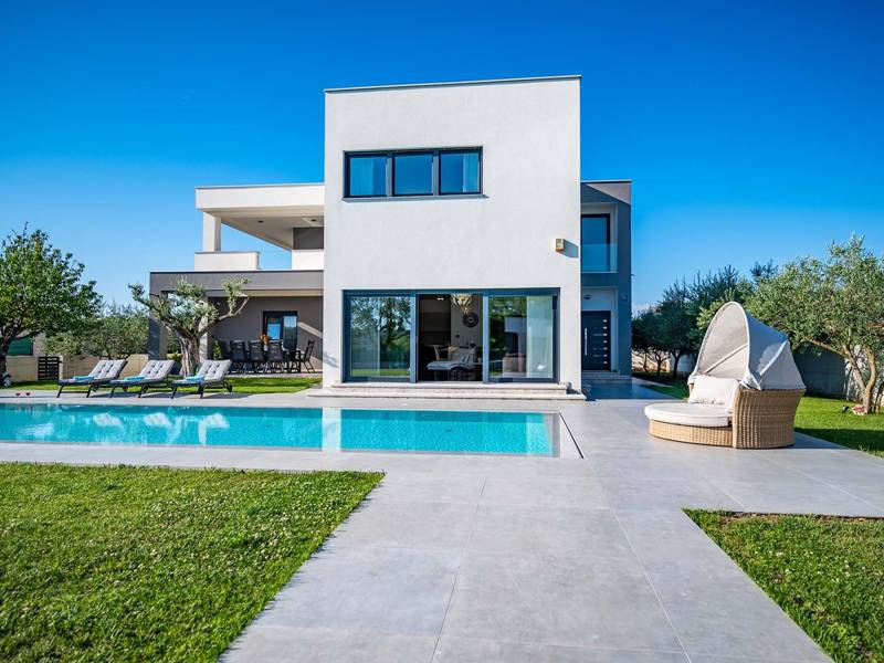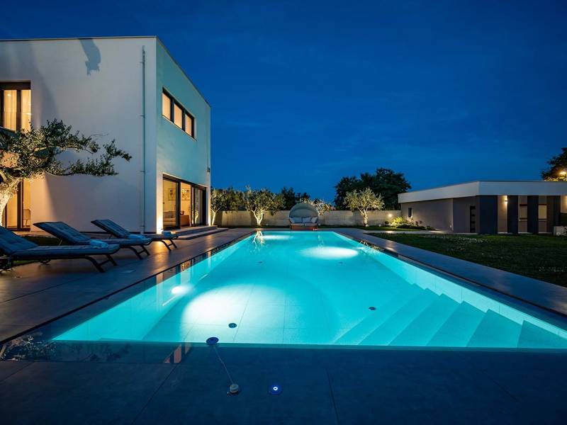 Villa Luen ist ein modernes Ferienhaus am Eingang von Pula, der größten Stadt auf der Halbinsel Istrien mit zahlreichen historischen Sehenswürdigkeiten. Das Haus besteht aus zwei Wohnungen, jede auf ihrer eigenen Etage, die durch eine interne Treppe verbunden sind. Dies ist besonders attraktiv für zwei Familien, die einen gemeinsamen Urlaub verbringen und dennoch ihre Privatsphäre bewahren möchten. Das Haus verfügt über insgesamt 6 Schlafzimmer und kann dank zusätzlicher Betten bis zu 11 Personen beherbergen: drei Schlafzimmer mit Doppelbetten, ein Schlafzimmer mit zwei Einzelbetten, die zu einem Doppelbett verbunden werden können, und zwei Schlafzimmer mit je einem Einzelbett. Während die obere Etage etwas legerer eingerichtet ist, strahlt die untere Etage mit Elementen wie warmen Sandfarben und raffinierten Möbeln Eleganz aus. Beide Etagen zeichnen sich durch perfekte Proportionen, Geräumigkeit und viel Licht aus. Diese freistehende Villa mit Swimmingpool verfügt auch über komfortable, schattige Terrassen, die Ruhe und Entspannung bieten. Sie ist weit genug von der Hektik der Stadt entfernt und dennoch nur wenige Autominuten vom Stadtzentrum und dem nächsten Strand entfernt. Einige der Objekte erlauben keine Jugendgruppen. Wenn Sie als Gruppe junger Menschen eine Unterkunft buchen, setzen Sie sich bitte vor der Reservierung mit unserer Agentur in Verbindung, um zu prüfen, ob die gewünschte Unterkunft Ihren Aufenthalt erlaubt.