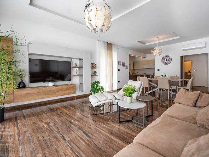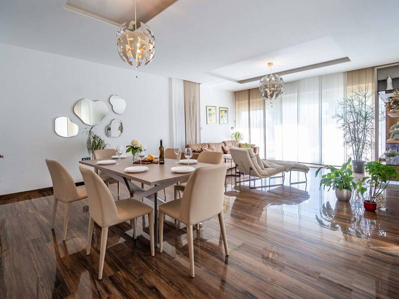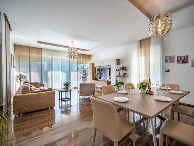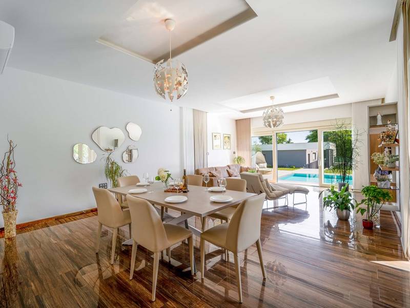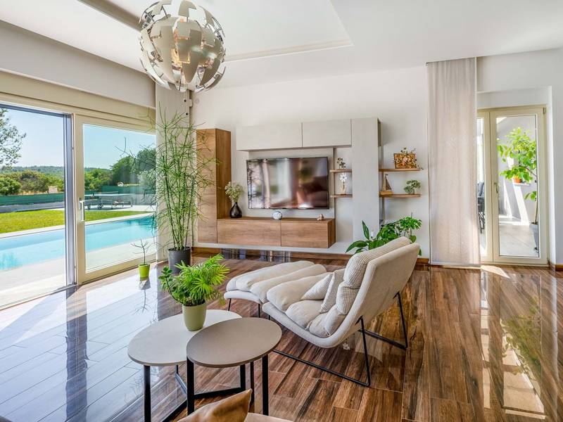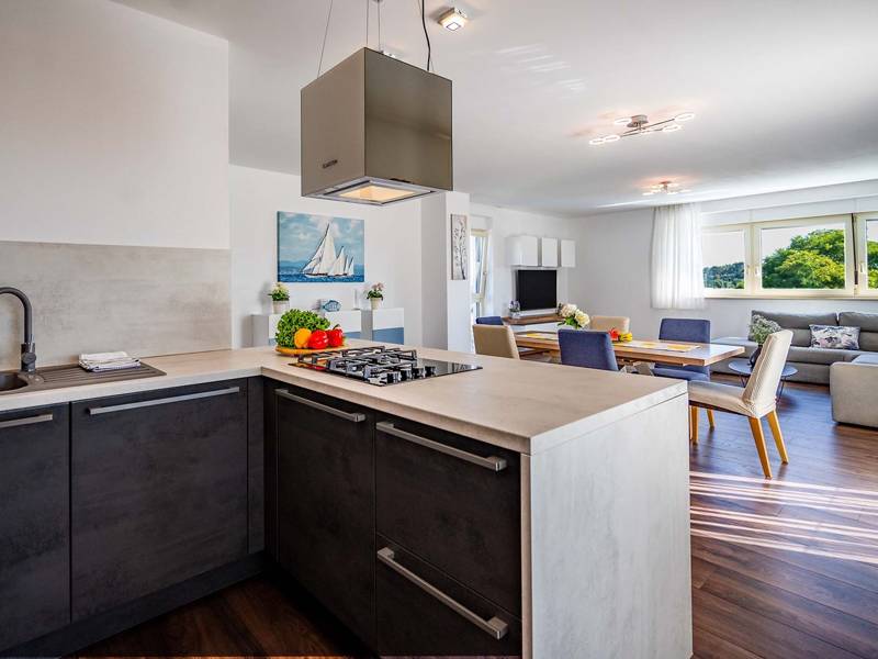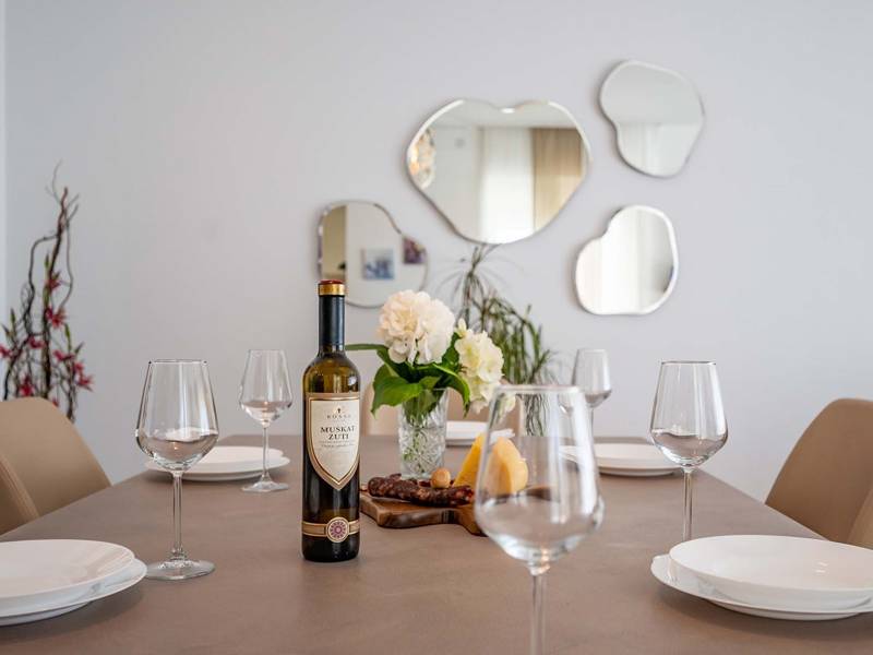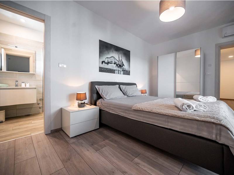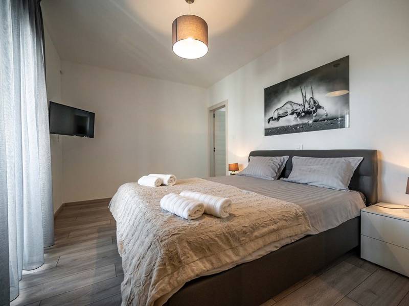 Villa Luen ist ein modernes Ferienhaus am Eingang von Pula, der größten Stadt auf der Halbinsel Istrien mit zahlreichen historischen Sehenswürdigkeiten. Das Haus besteht aus zwei Wohnungen, jede auf ihrer eigenen Etage, die durch eine interne Treppe verbunden sind. Dies ist besonders attraktiv für zwei Familien, die einen gemeinsamen Urlaub verbringen und dennoch ihre Privatsphäre bewahren möchten. Das Haus verfügt über insgesamt 6 Schlafzimmer und kann dank zusätzlicher Betten bis zu 11 Personen beherbergen: drei Schlafzimmer mit Doppelbetten, ein Schlafzimmer mit zwei Einzelbetten, die zu einem Doppelbett verbunden werden können, und zwei Schlafzimmer mit je einem Einzelbett. Während die obere Etage etwas legerer eingerichtet ist, strahlt die untere Etage mit Elementen wie warmen Sandfarben und raffinierten Möbeln Eleganz aus. Beide Etagen zeichnen sich durch perfekte Proportionen, Geräumigkeit und viel Licht aus. Diese freistehende Villa mit Swimmingpool verfügt auch über komfortable, schattige Terrassen, die Ruhe und Entspannung bieten. Sie ist weit genug von der Hektik der Stadt entfernt und dennoch nur wenige Autominuten vom Stadtzentrum und dem nächsten Strand entfernt. Einige der Objekte erlauben keine Jugendgruppen. Wenn Sie als Gruppe junger Menschen eine Unterkunft buchen, setzen Sie sich bitte vor der Reservierung mit unserer Agentur in Verbindung, um zu prüfen, ob die gewünschte Unterkunft Ihren Aufenthalt erlaubt.
