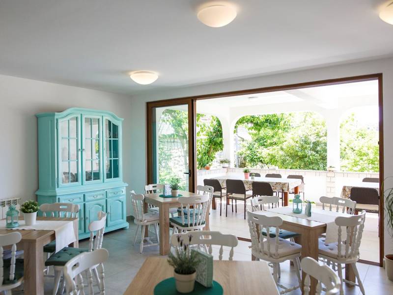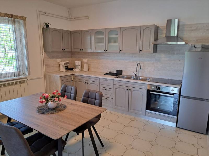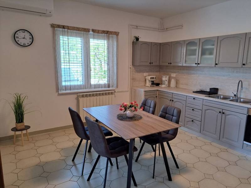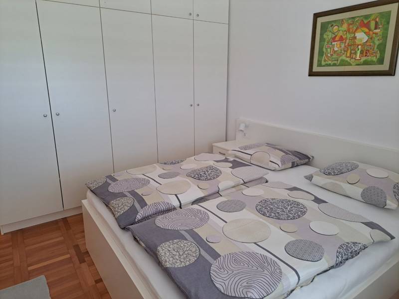 Das komfortable Appartement Vidas A7 befindet sich an der Küste/Strand, nördlich der Stadt Rab auf der gleichnamigen Insel Palit. Das Appartement Vidas A7 befindet sich im zweiten Stock des Appartementkomplexes und bietet Platz für 2 - 4 Personen. Das Appartement besteht aus einem Schlafzimmer mit einem Doppelbett, einem Badezimmer mit Dusche, einem Wohnzimmer mit Schlafsofa. Im Hauptteil befindet sich eine gut ausgestattete Küche mit Küchenutensilien, einem Geschirrspüler und allen notwendigen Kochgeräten. Von der Wohnung aus haben Sie Zugang zu einem privaten Balkon, auf dem Sie eine Sitzecke finden. Dies ist der perfekte Ort, um laue Sommerabende mit Ihrer Familie oder Freunden zu genießen. Ein privater Parkplatz ist auf dem Gelände vorhanden. Ein Babybett ist auf Anfrage erhältlich. Frühstück ist auf Anfrage und gegen eine zusätzliche Gebühr in der Einrichtung erhältlich.