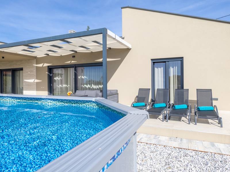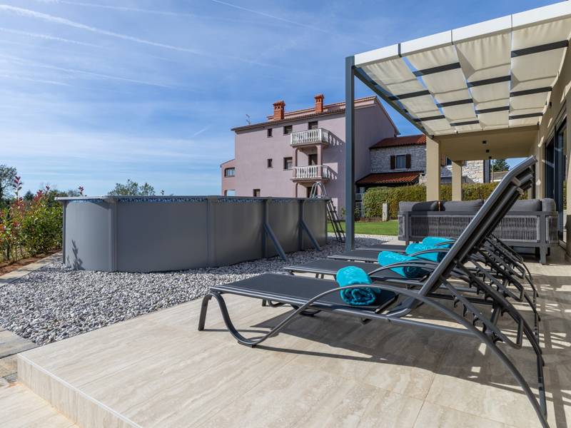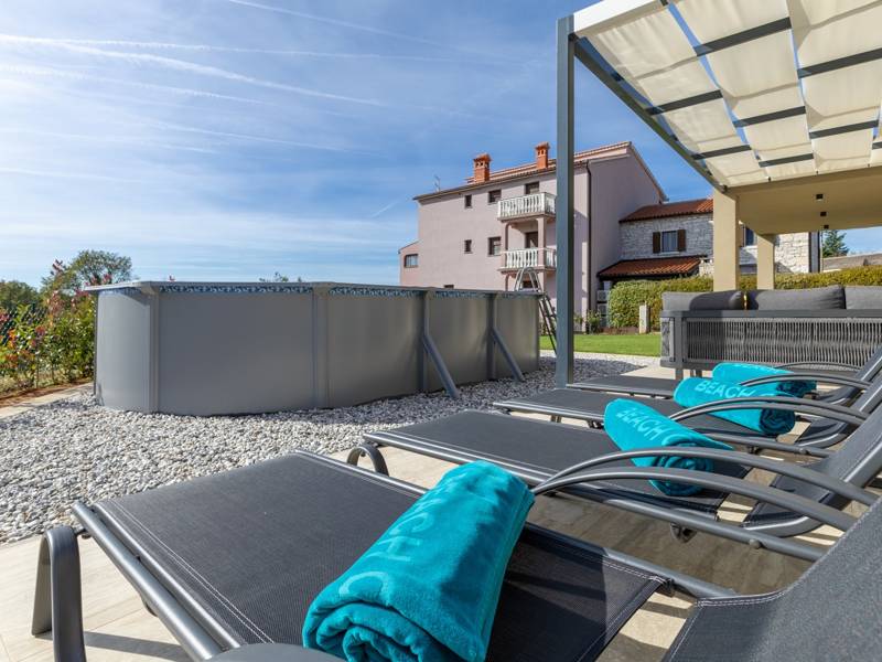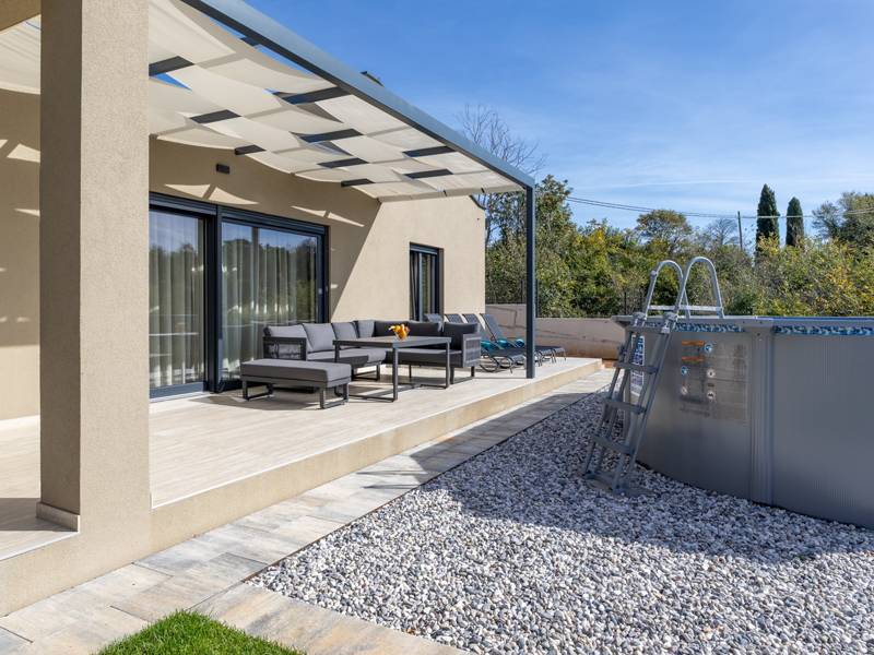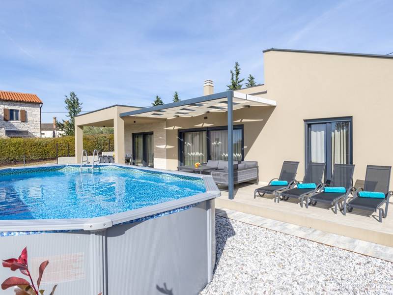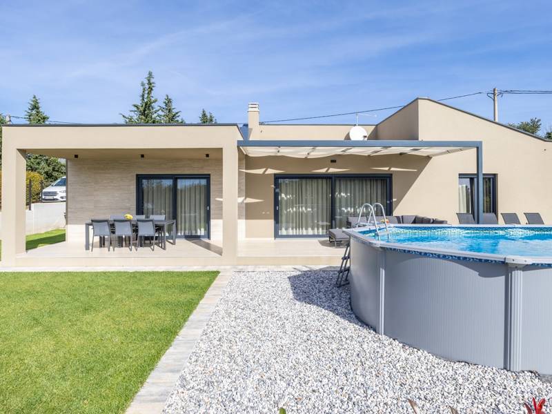 Im ruhigen Dorf Rebići, nur 1,5 km von der malerischen Blaz-Bucht entfernt, ist dieses neu gebaute einstöckige Ferienhaus die perfekte Wahl für einen Familienurlaub in Istrien. Das Haus bietet drei komfortable Schlafzimmer, zwei moderne Badezimmer, ein geräumiges Wohnzimmer mit einer voll ausgestatteten Küche und einen privaten Garten mit einem vorgefertigten Swimmingpool - ideal für sommerliche Erfrischung und Kinderspiel. Den Gästen steht auch ein privater Parkplatz im Garten zur Verfügung. Umgeben von Grün und Stille bietet dieses Haus Ruhe, Komfort und Entspannung, während die Bucht von Blaz klares Meer und unberührte Natur bietet. Dies ist ein ideales Ziel für Gäste, die Ruhe, Privatsphäre und eine natürliche Umgebung abseits des Stadtlebens suchen. Wir empfehlen es für Familien, jüngere Gruppen sind nicht erlaubt. Der Pool ist vom 15. Oktober bis 30. April nicht in Betrieb.